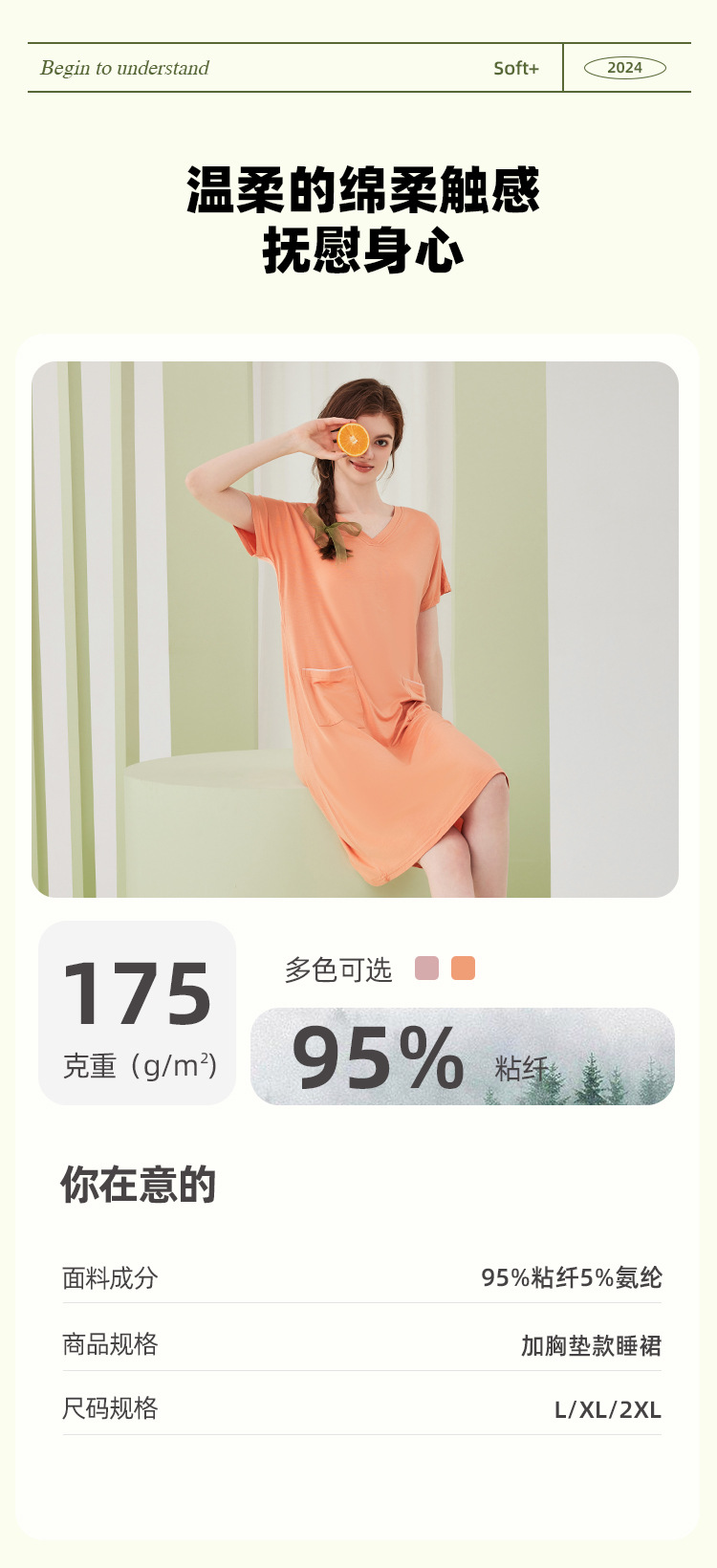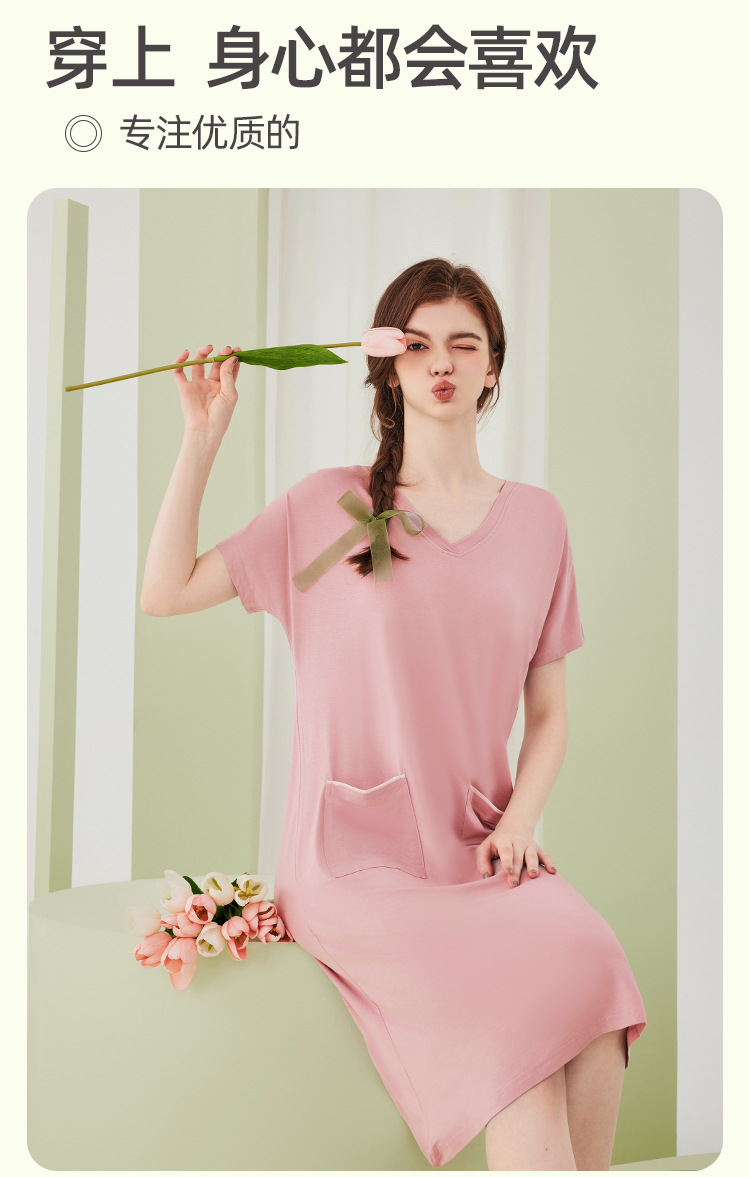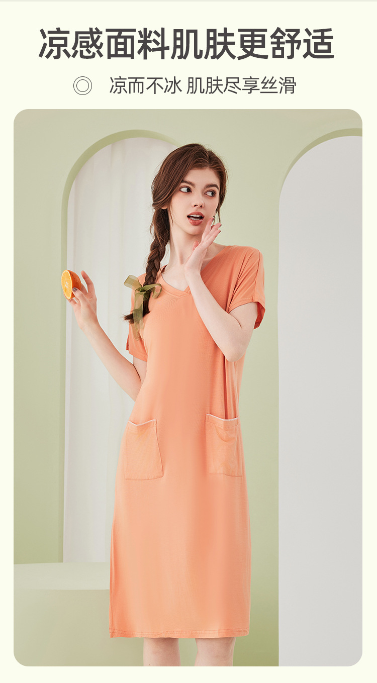 东帝V领薄款女士带胸垫睡裙女夏季高级感凉感睡裙女士睡衣家居服