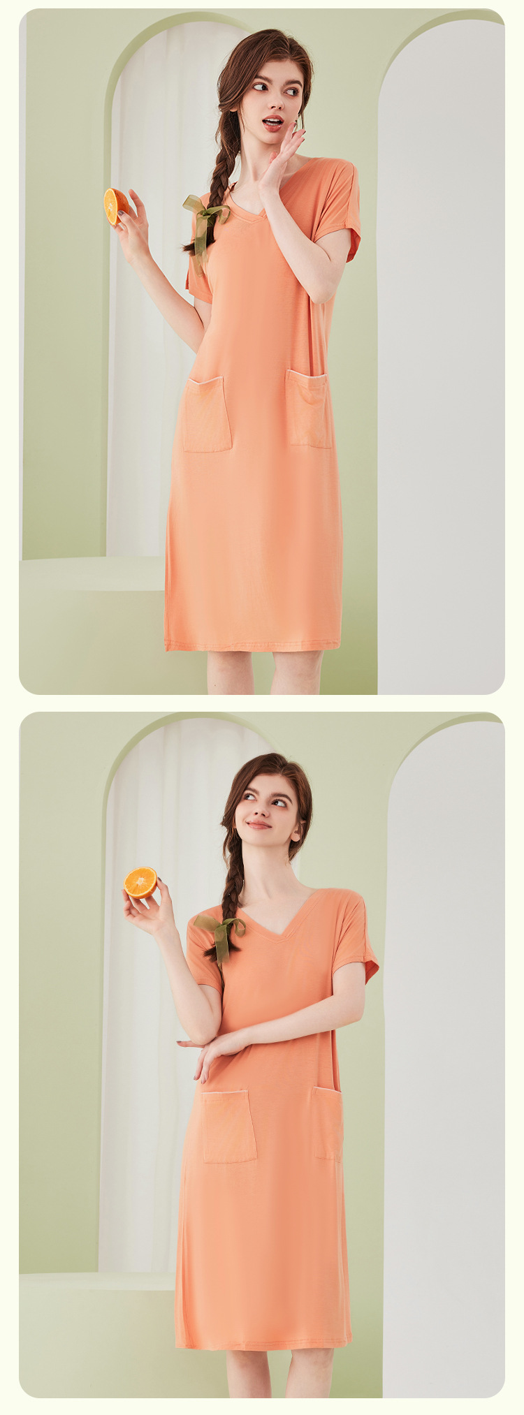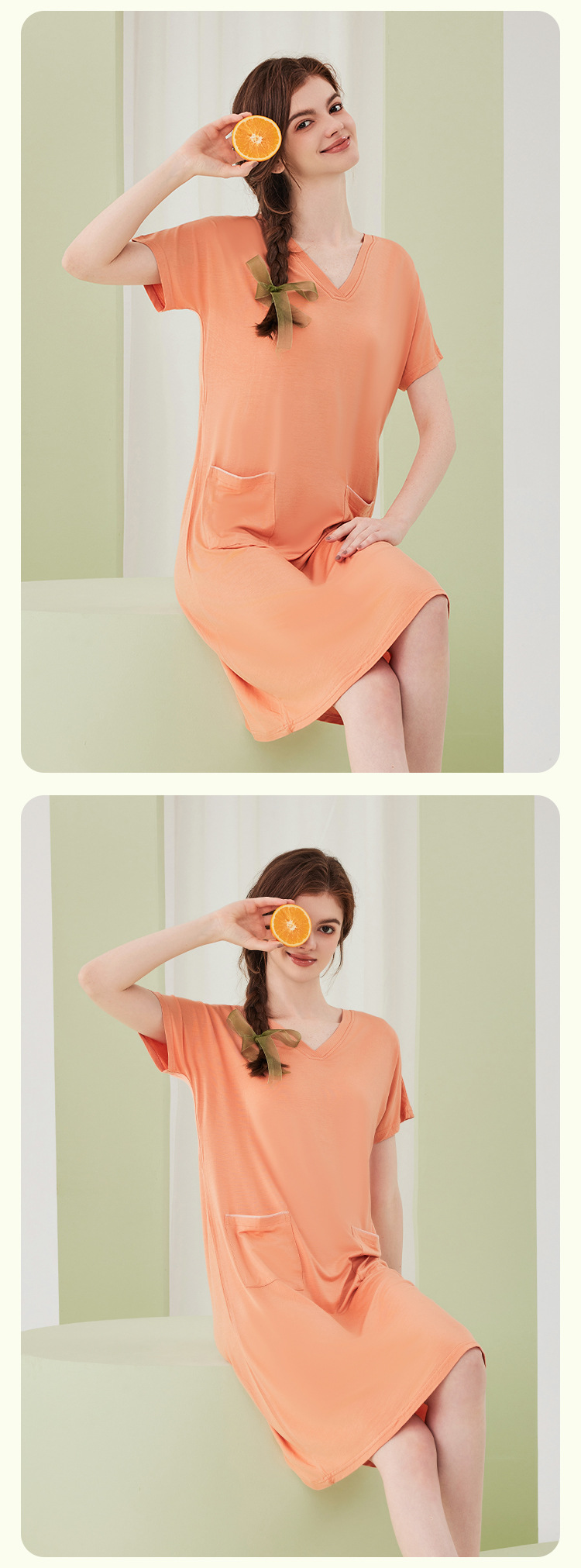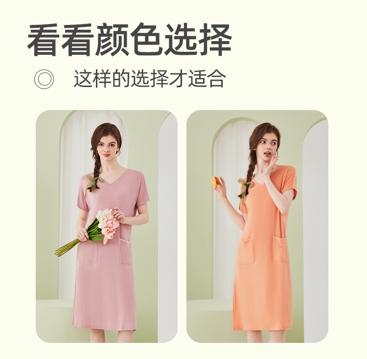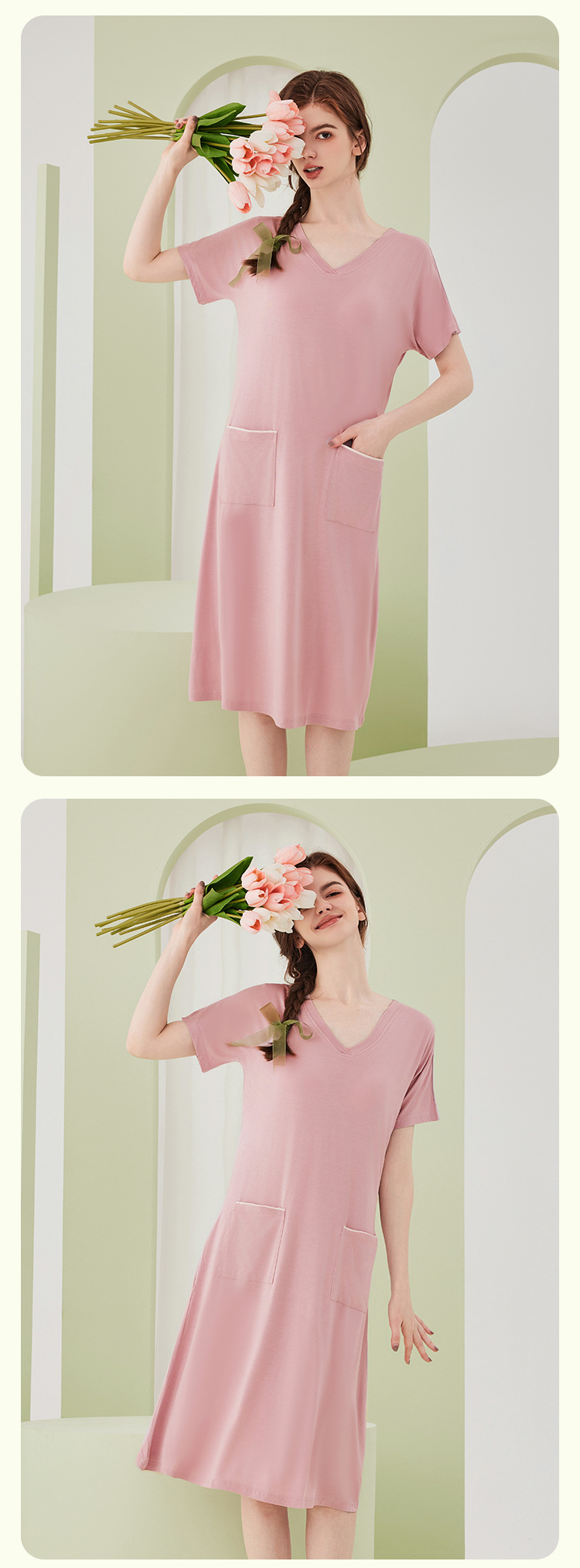 东帝V领薄款女士带胸垫睡裙女夏季高级感凉感睡裙女士睡衣家居服