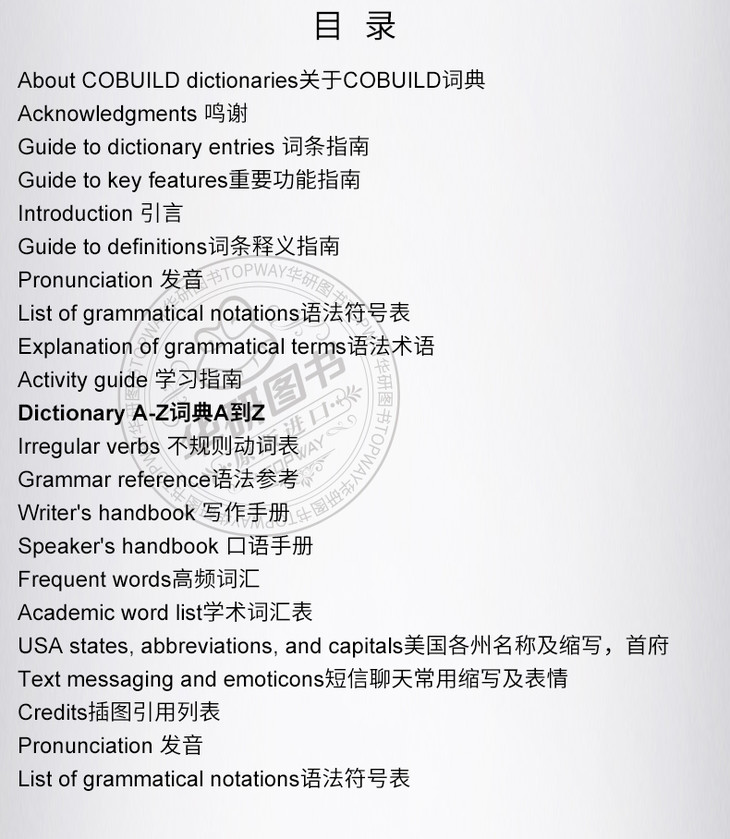 Collins COBUILD Advanced American English Dictionary《柯林斯高阶美语词典》是一本适合各阶段英语学习者使用的美式英英词典,特别收录美式英语发音及用法。因为其独特的例句释义形式,使得学习者对单词的理解更加深刻。每个词条均有详尽的语法用法结构以及完整的单词构词法解析并附大量的同义词反义词词条,务求使读者每查一个单词都能收获完整的知识体系。而除了词典正文,本书还包含丰富实用的附录内容,如语法图解、写作口语手册、高频词汇手册、学术词汇手册、常用词汇表、短信息缩略语及表情符等等。《柯林斯高阶美语词典》一书多用,是有效提高英语水平的一本实用性词典。