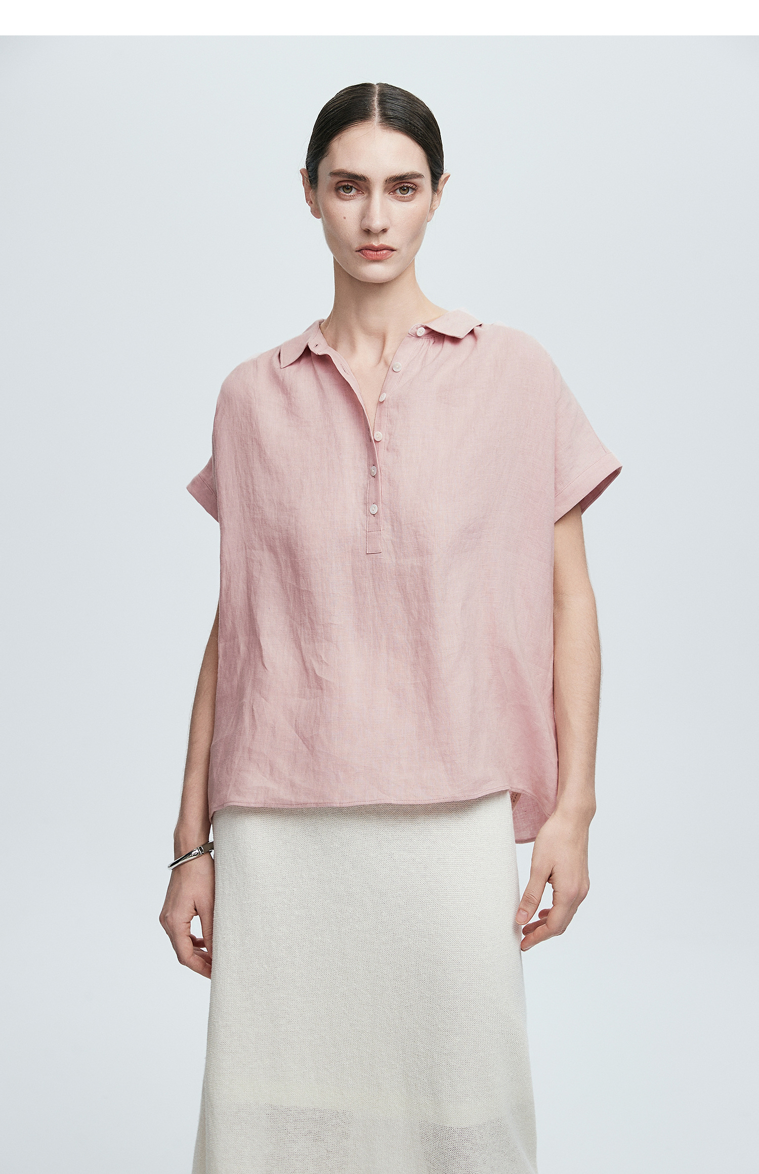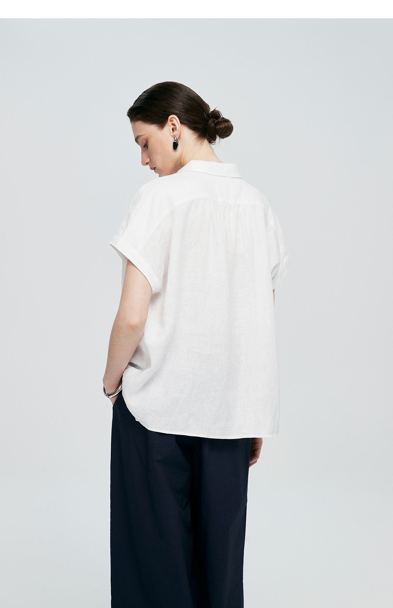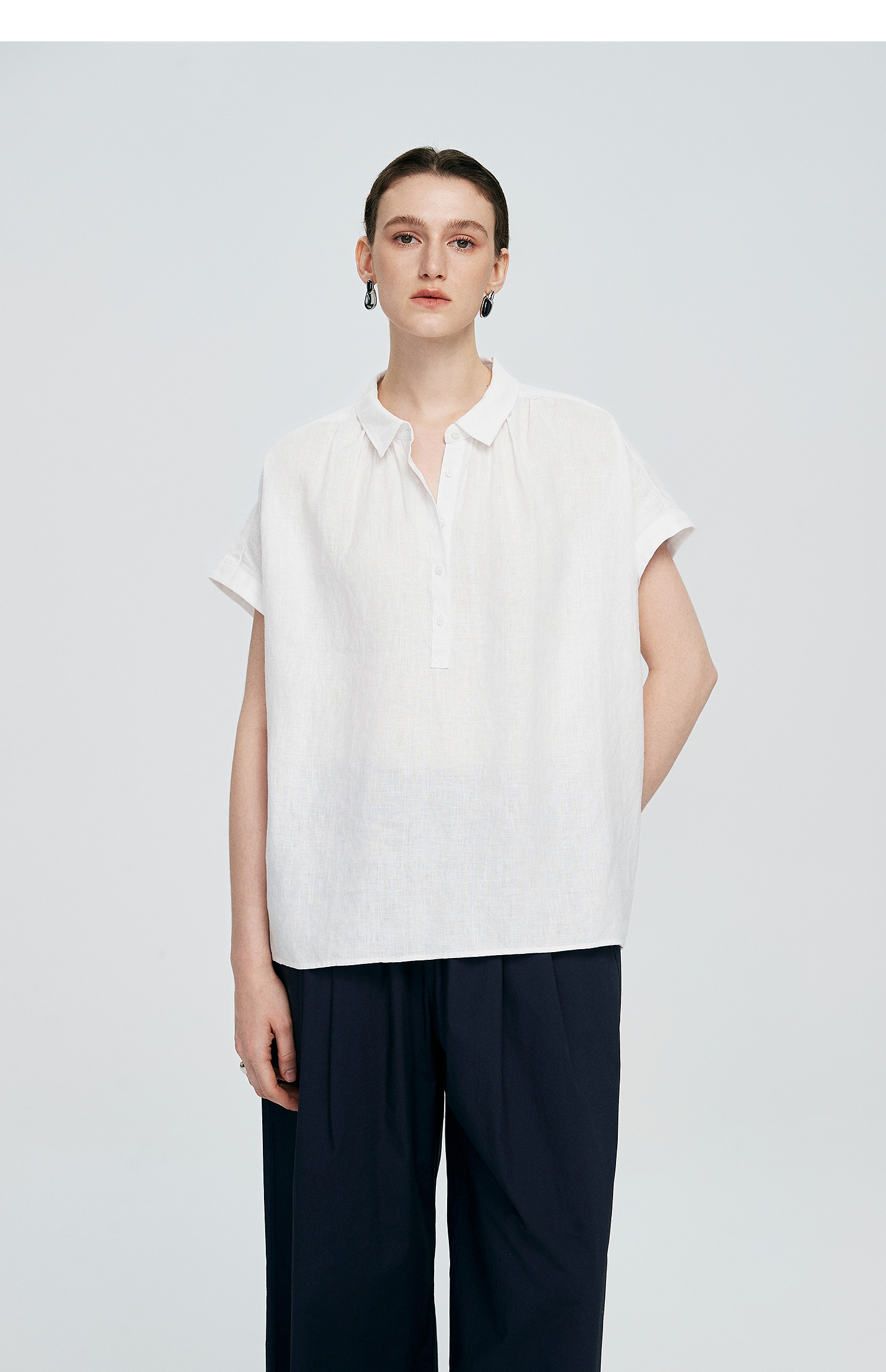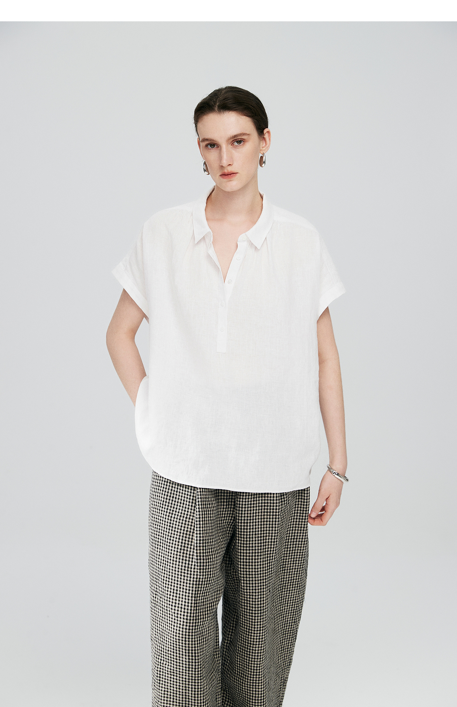 棉仓363604032-初棉亚麻连袖短袖宽松显瘦衬衣