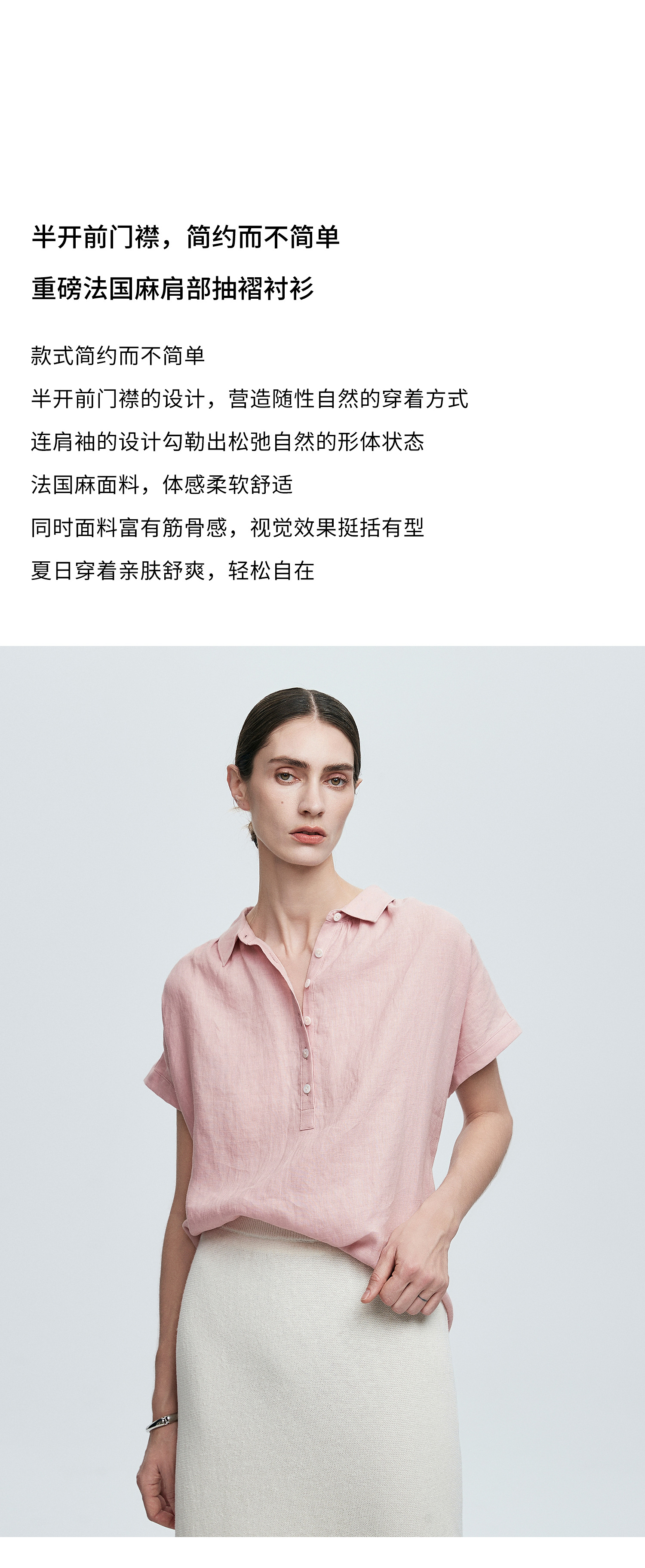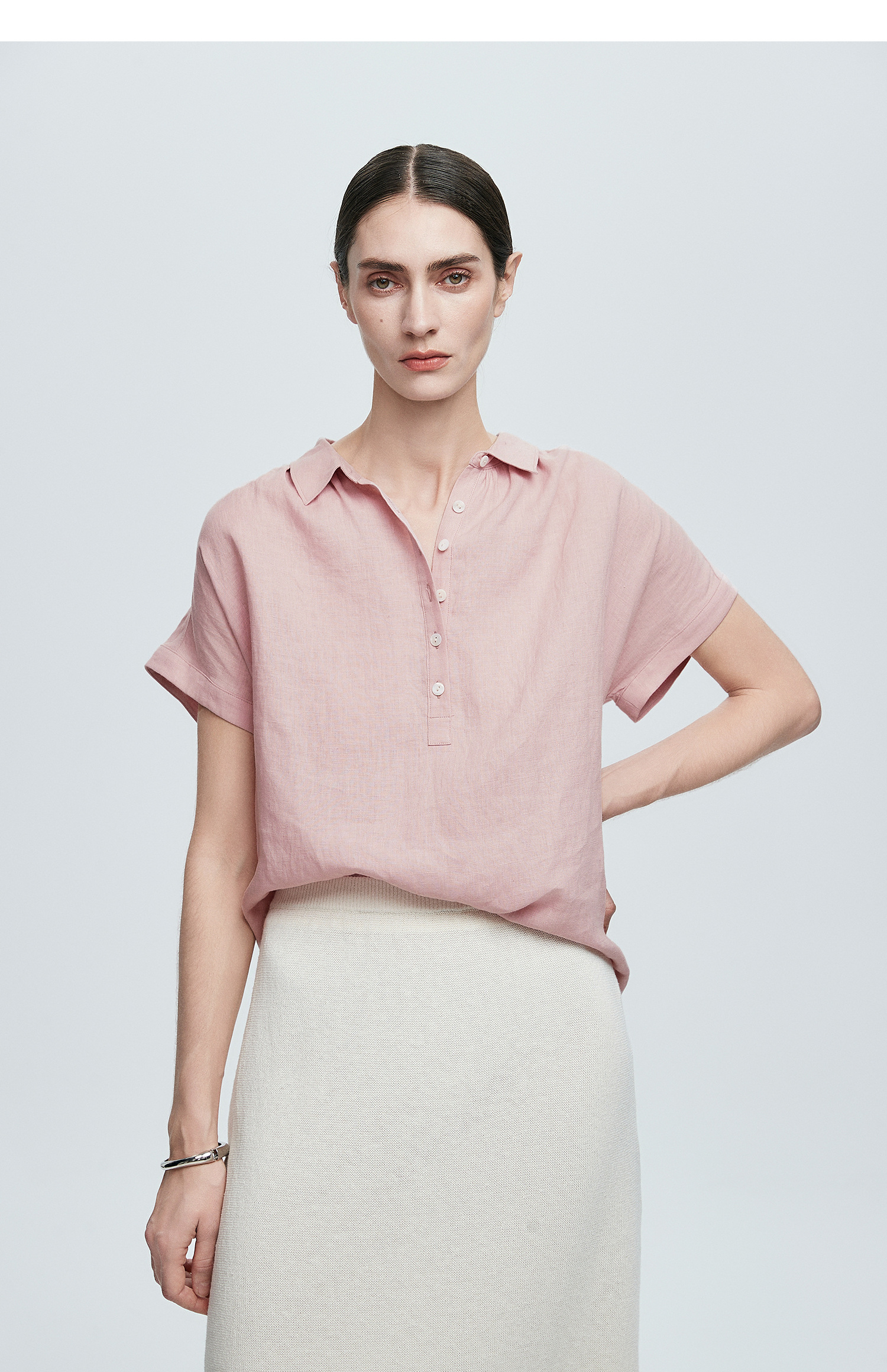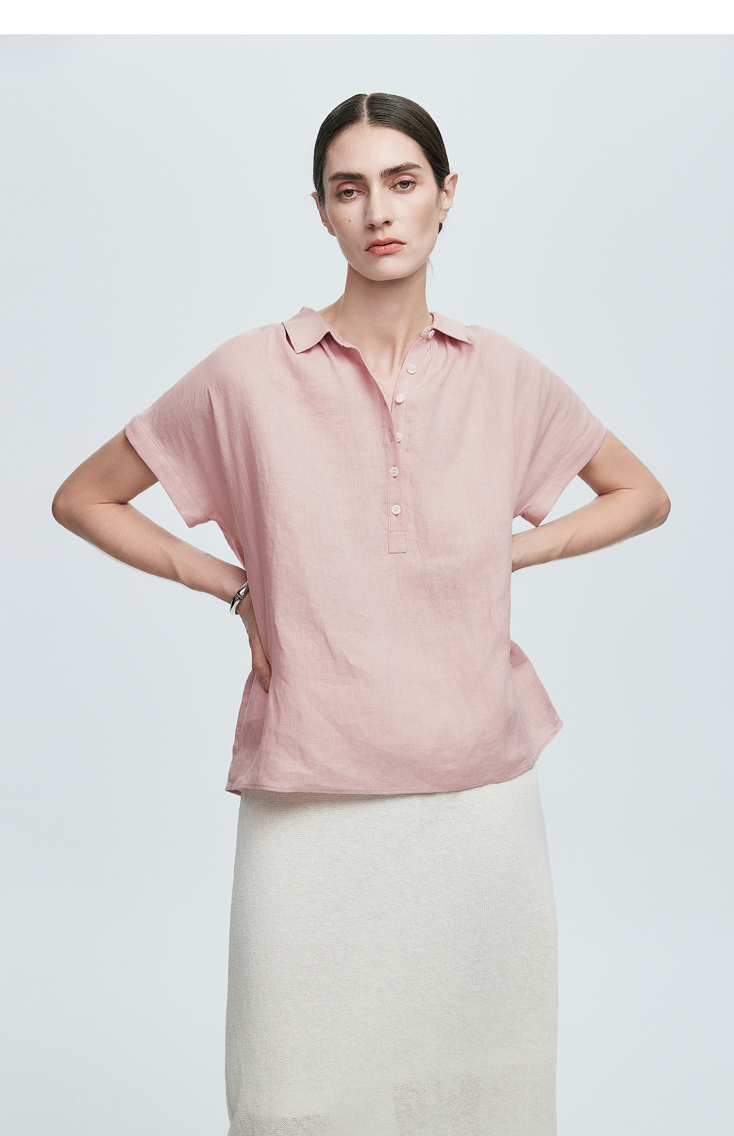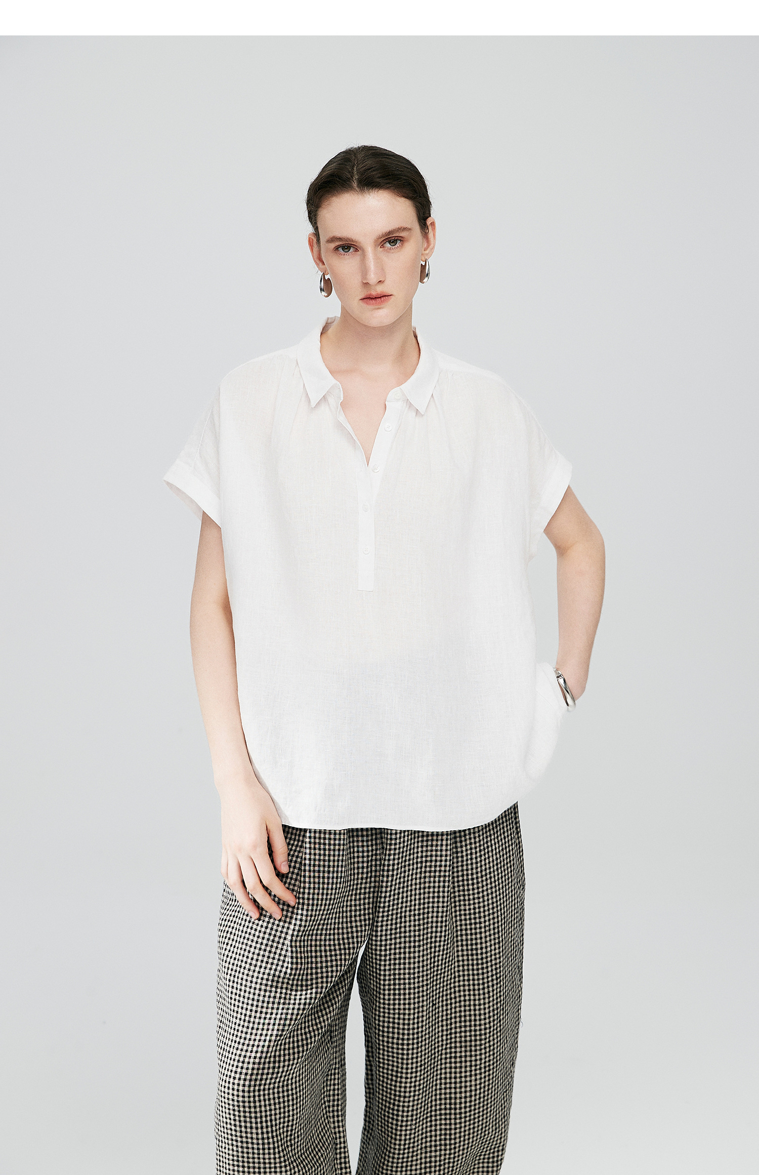 棉仓363604032-初棉亚麻连袖短袖宽松显瘦衬衣