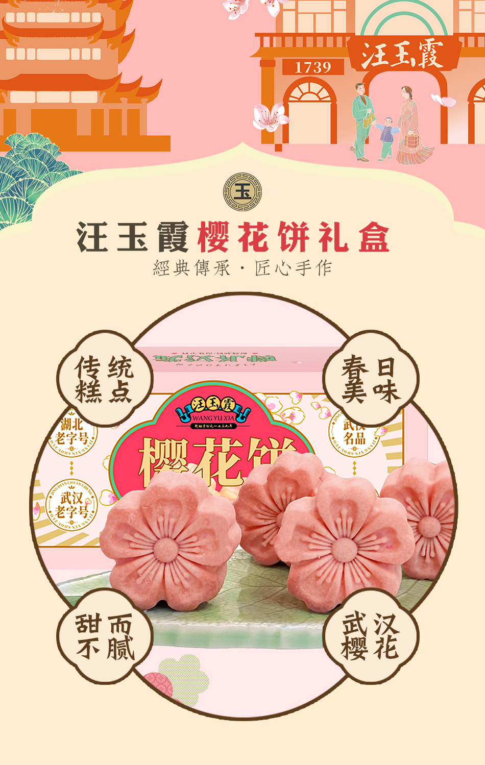 汪玉霞湖北武汉特产伴手礼樱花饼正宗中式糕点心下午茶零食小吃200克