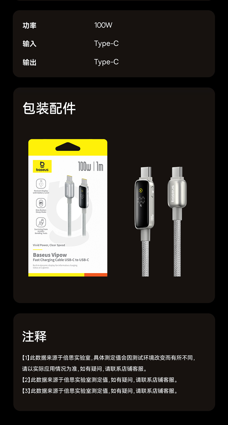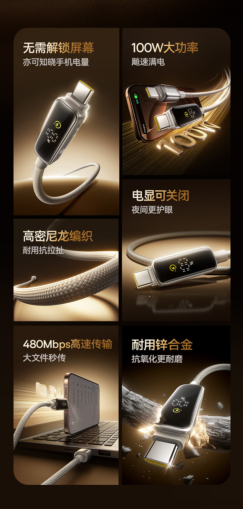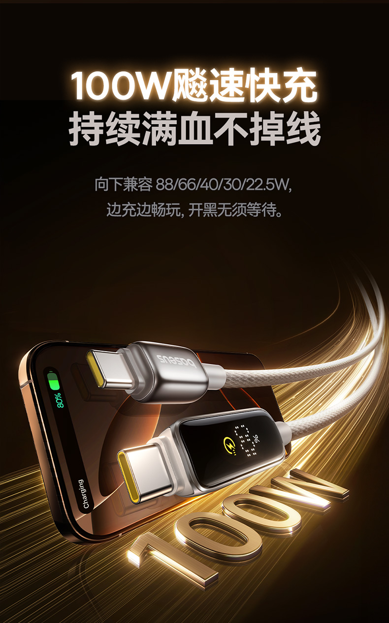 倍思 电量可视化系列 快充数据线 Type-C to Type-C 100W