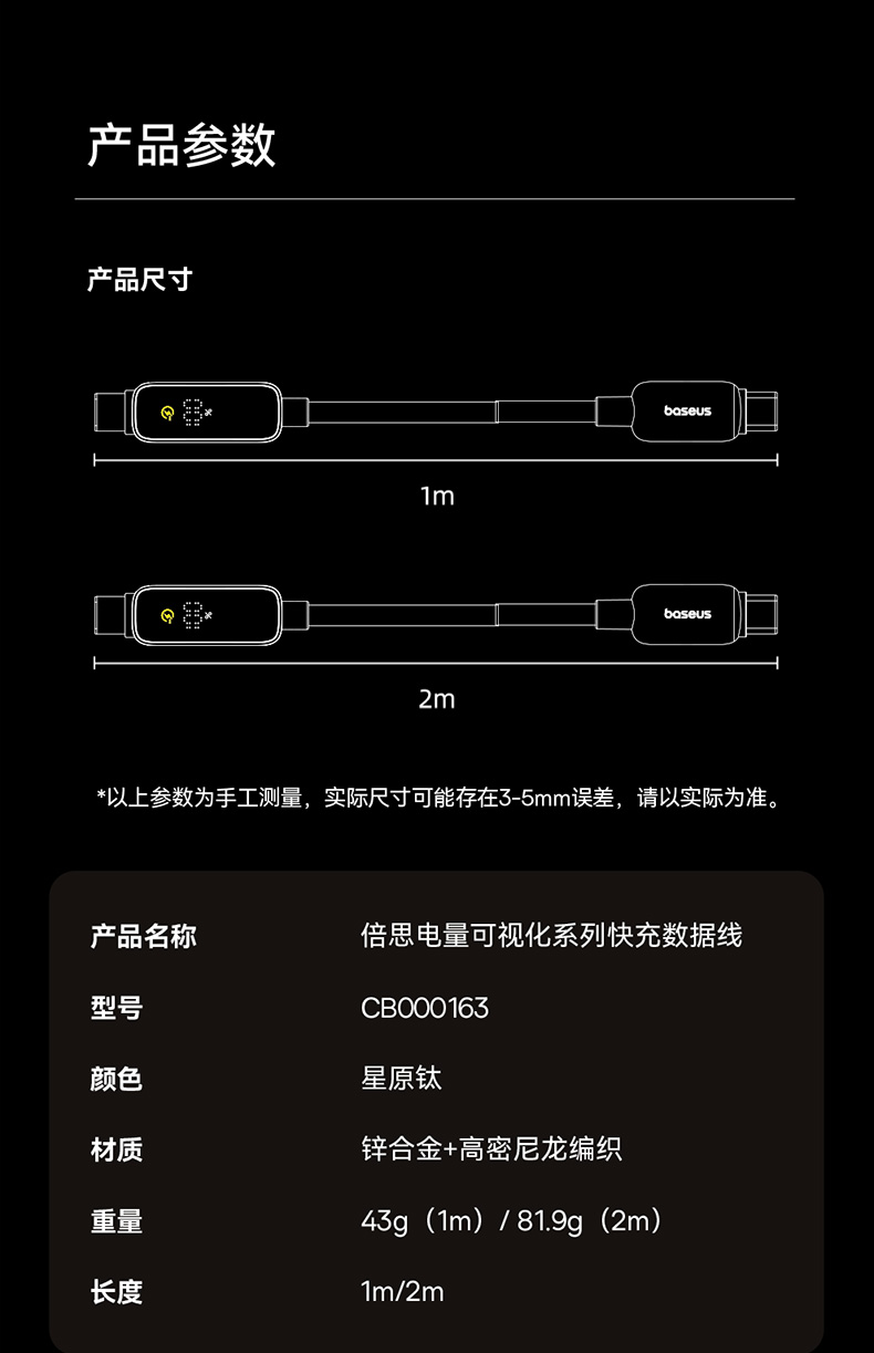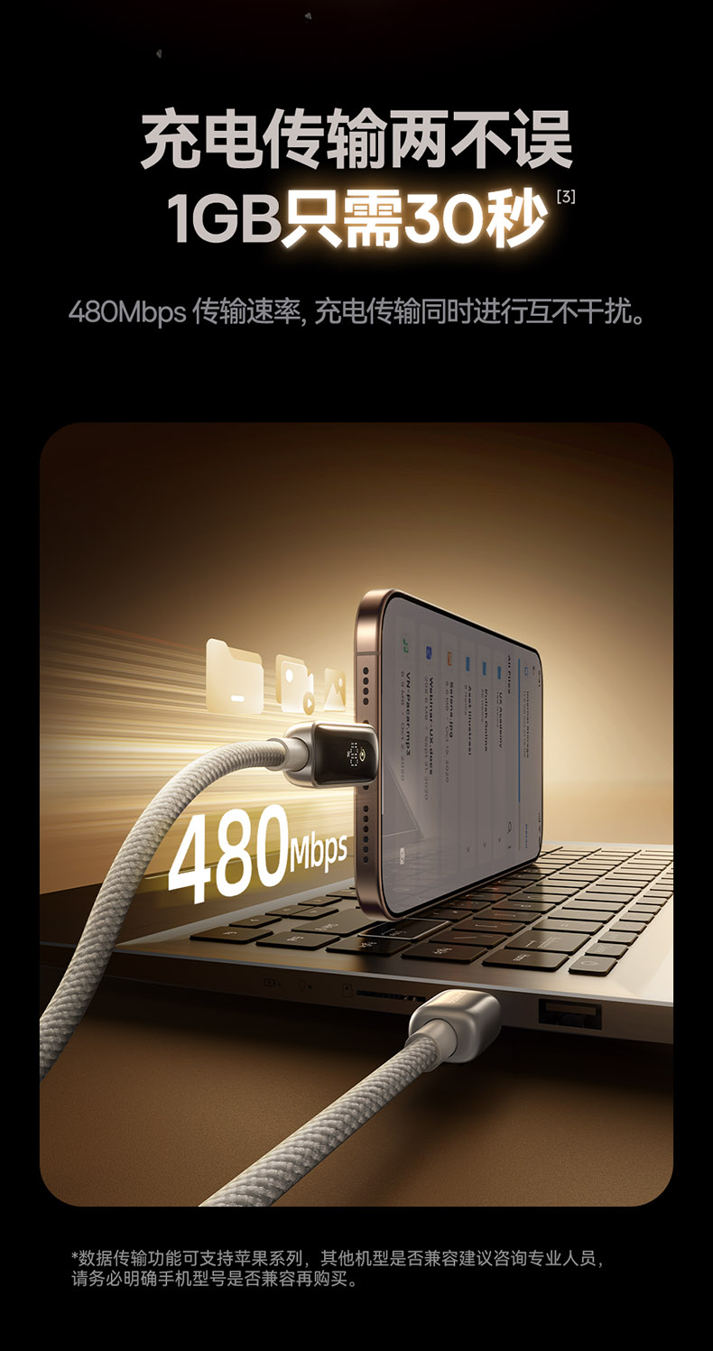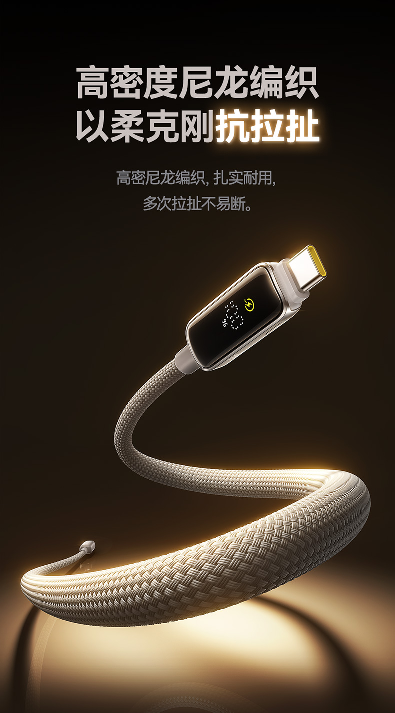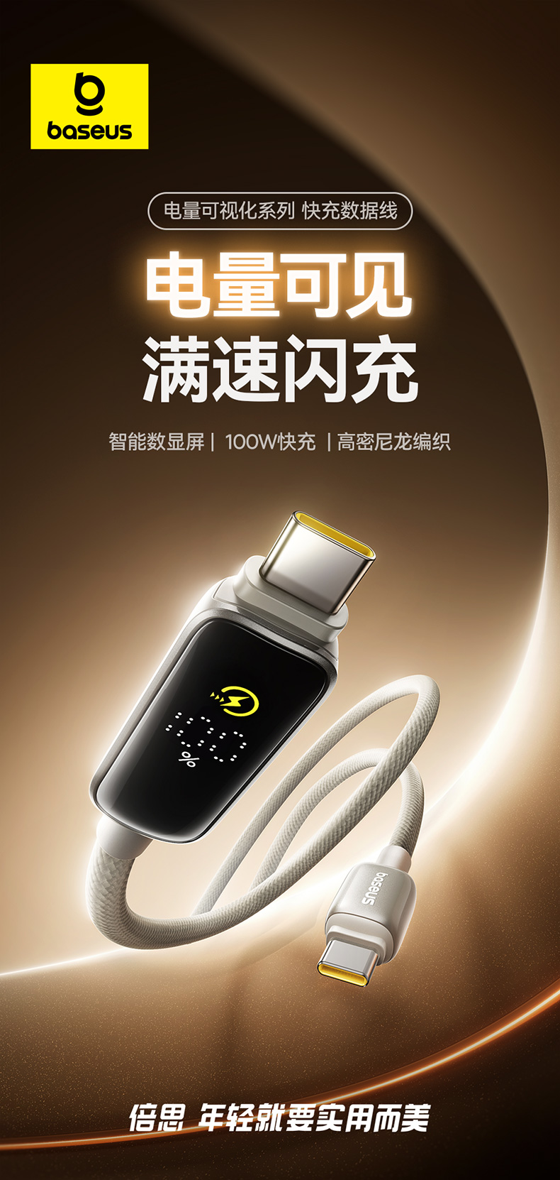 倍思 电量可视化系列 快充数据线 Type-C to Type-C 100W