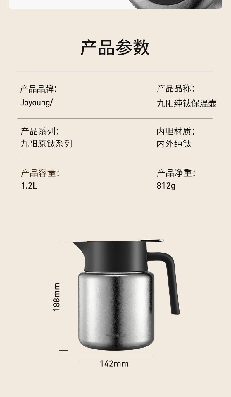 九阳纯钛保温壶1.2L升焖茶壶家用茶水分离内外纯钛高档保温泡茶壶