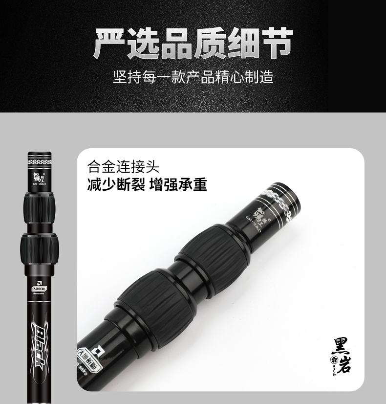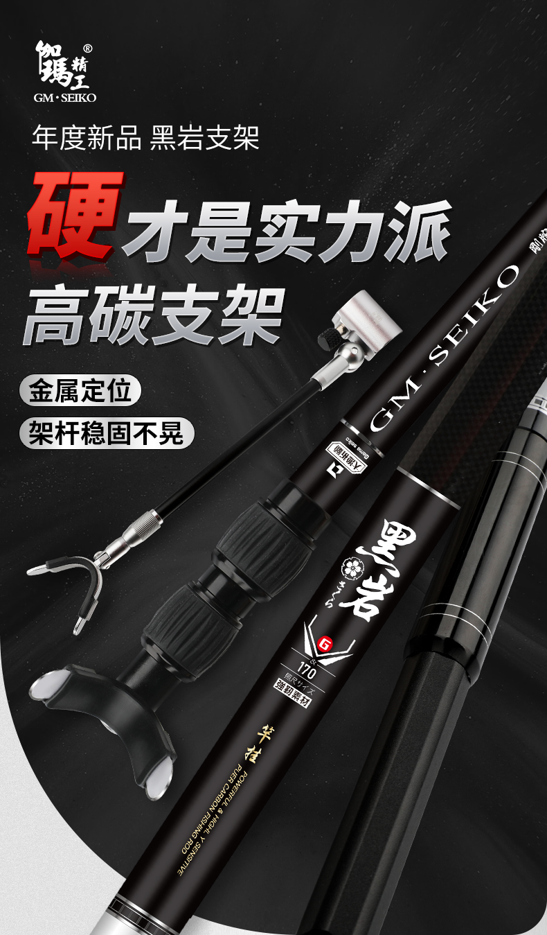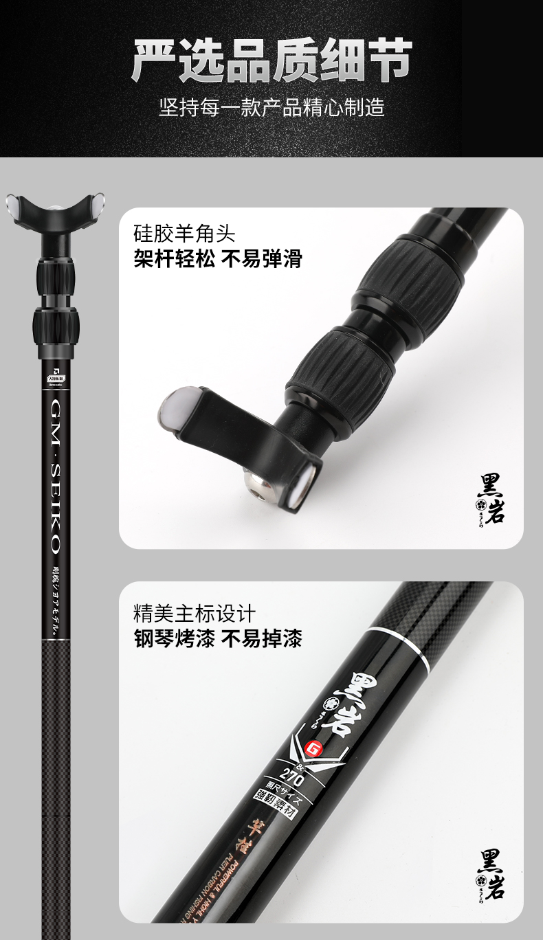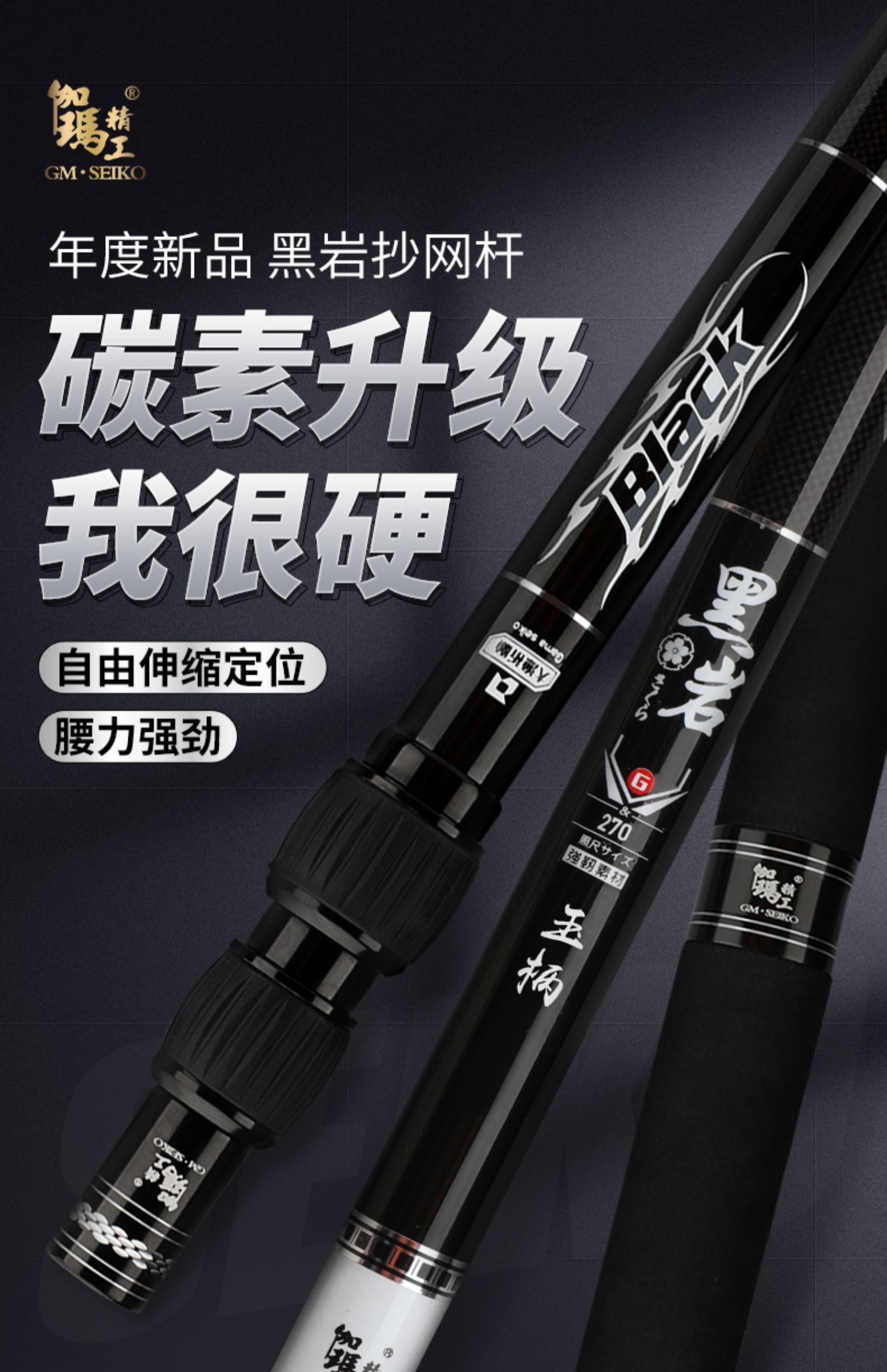 伽玛精工黑岩碳素抄网竿支架竿超轻超硬抄网竿钓鱼折叠竿大物捞鱼伸缩杆