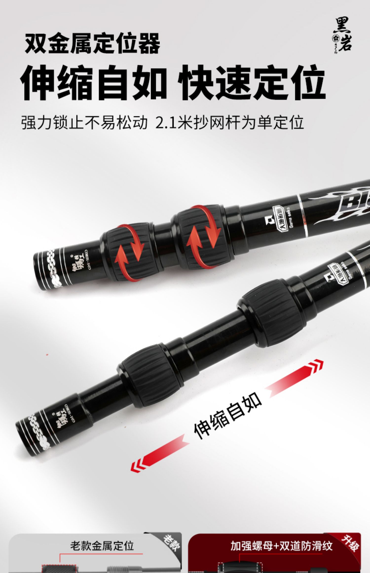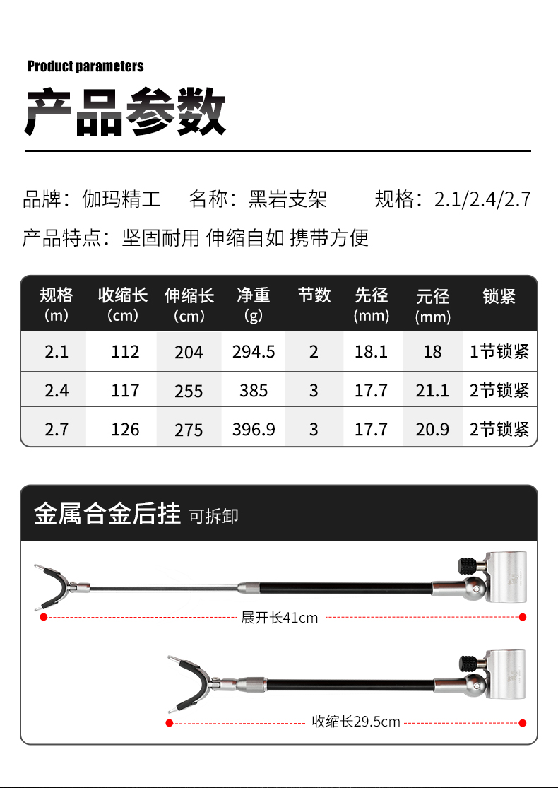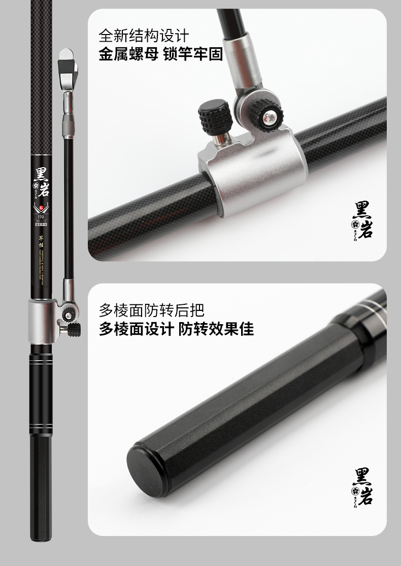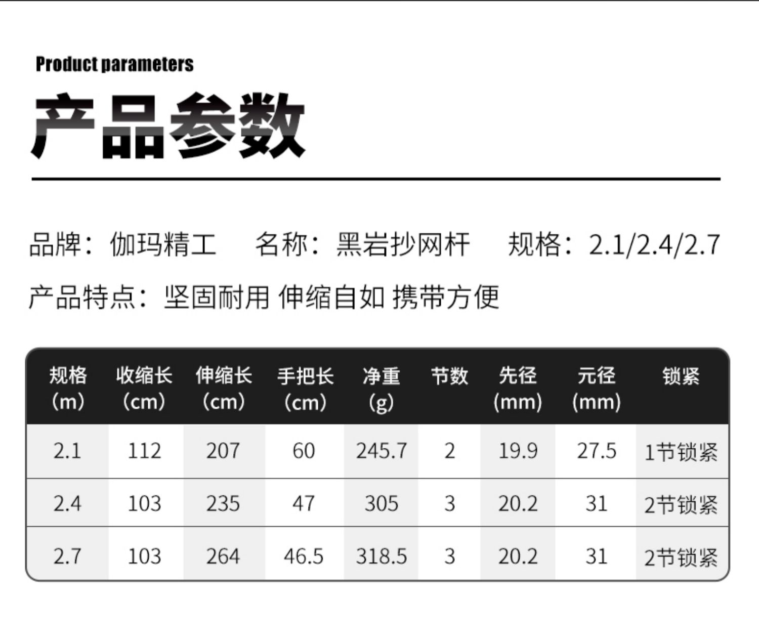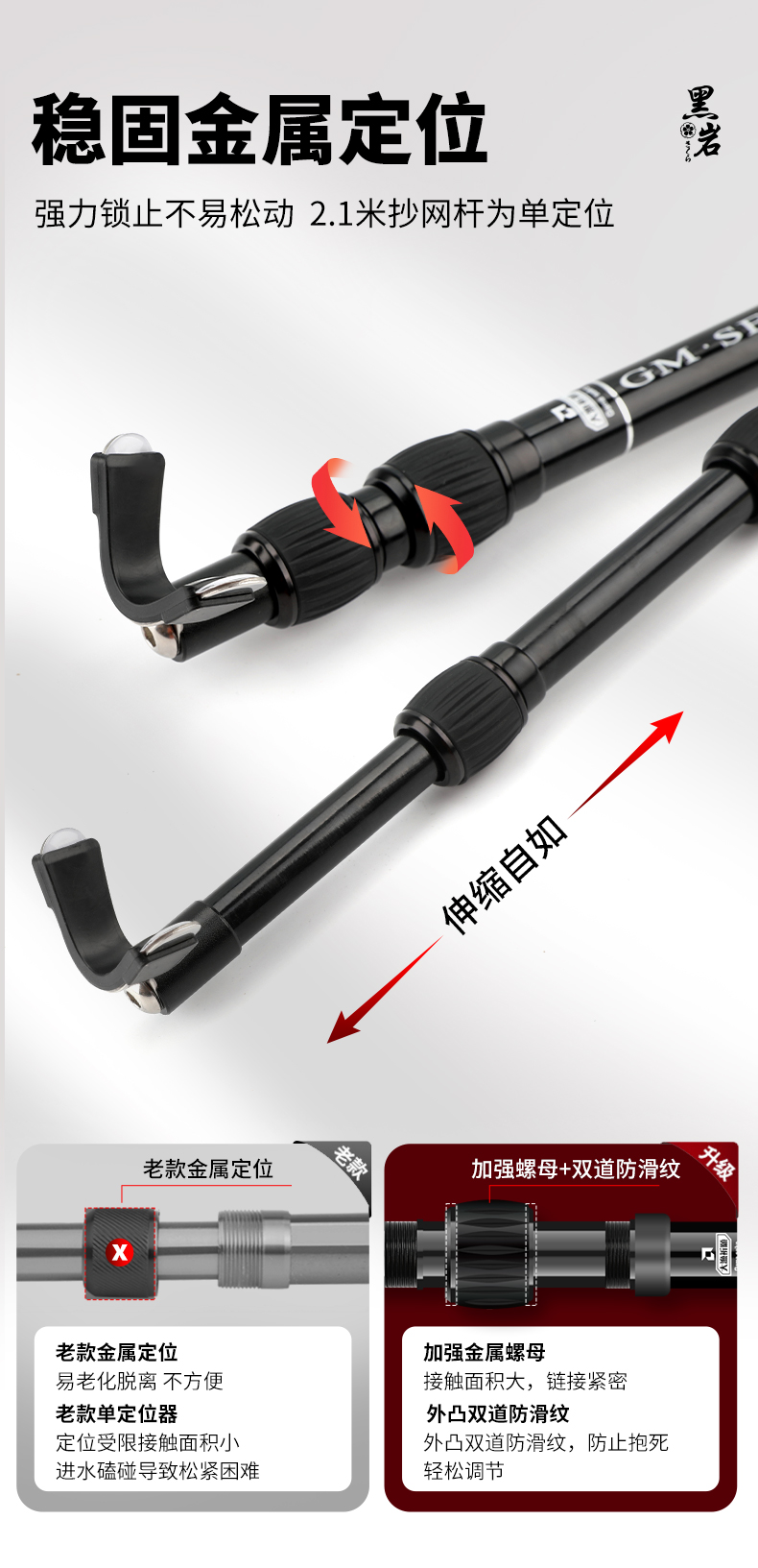 伽玛精工黑岩碳素抄网竿支架竿超轻超硬抄网竿钓鱼折叠竿大物捞鱼伸缩杆