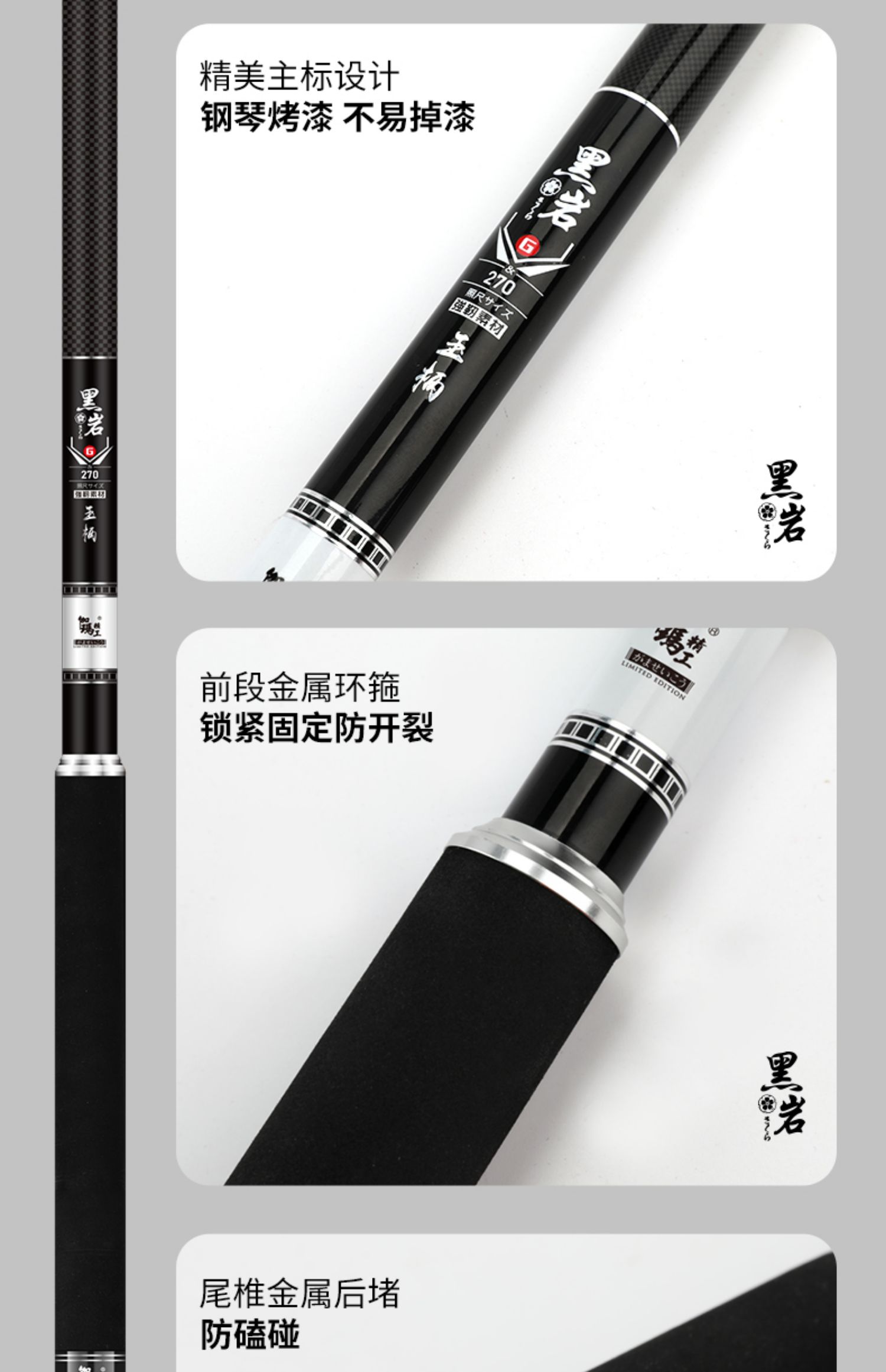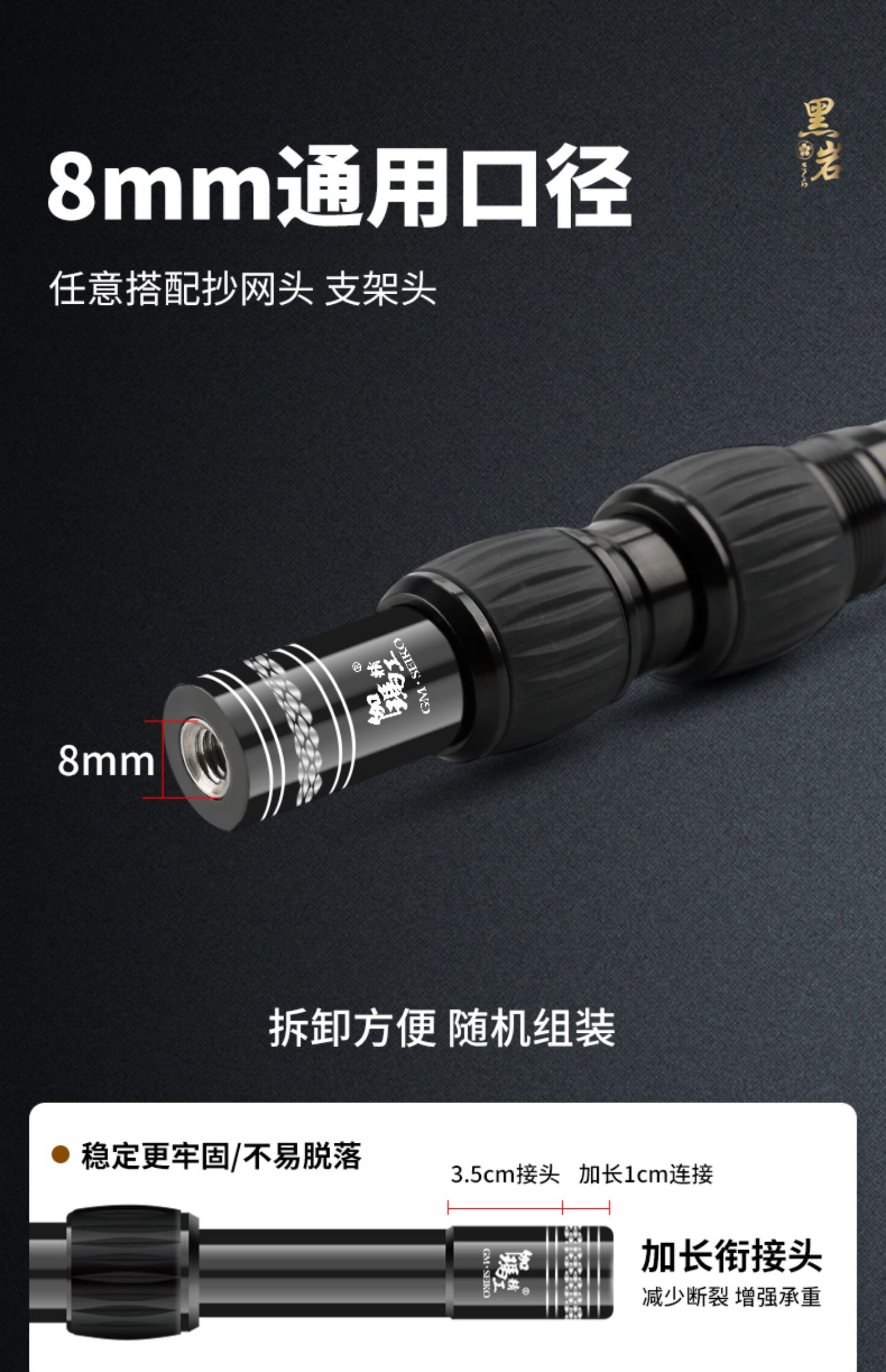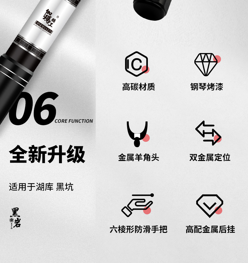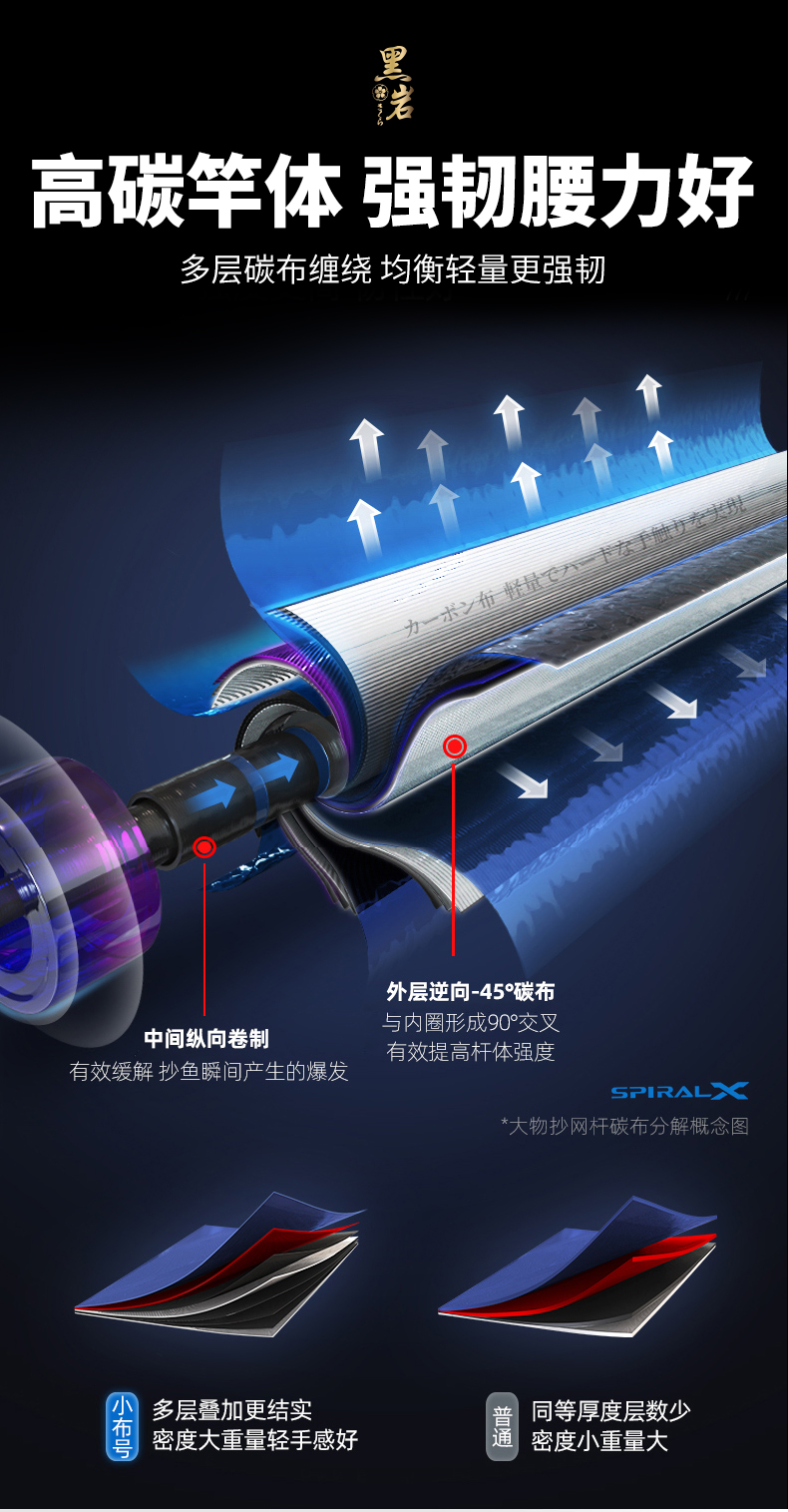 伽玛精工黑岩碳素抄网竿支架竿超轻超硬抄网竿钓鱼折叠竿大物捞鱼伸缩杆