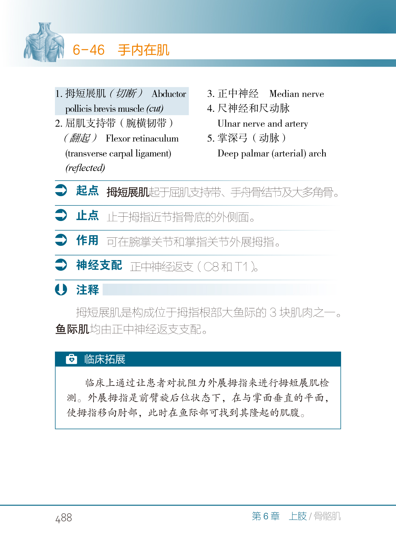 这是一本绘图精美的解剖学图谱。书中的图片来源于奈特博士绘制的著名的人体解剖学图谱。奈特博士是杰出的医学家和艺术家。他绘制的人体解剖学图谱已被翻译成16种语言文字,成为全世界医学生首选的解剖学图谱。在本图谱中,奈特博士团队采用独特的视角,把人体各部位的结构栩栩如生地展现在我们面前,既有油画的层次感,还有鲜明的主题,可谓设计新颖、构思奇妙、寓意深刻,每一张图都是人体结构与艺术的完美结合。这是一本内容丰富的解剖学图谱。书中内容涉及人体的头部、颈部、背部、脊柱、胸部、腹部、盆部、会阴、上肢和下肢等诸多区域,以骨关节、肌肉、神经、心血管及内脏为主线,显示了骨骼肌肉系统、神经系统、心血管系统、消化系统、呼吸系统和生殖系统等人体各功能系统中各个器官的形态、结构、位置和毗邻等,还以局部或临床视角呈现了器官间重要的神经、血管、淋巴管或筋膜结构等。这是一本个性化的解剖学图谱。书中每张图片均配有相应解剖结构的简要文字描述,如肌肉的起点、止点、作用、神经支配、注释等,还包括该解剖结构的临床拓展内容,突出了解剖学图谱的实用性。本书译自NETTER’S ANATOMY FLASH CARDS(5E),并根据中文阅读习惯重新进行了编排,它有效地补充了解剖学教科书在学习资源上的不足,适合临床、口腔、基础、护理、预防等专业的医学生、医务工作者及有兴趣深入理解人体知识的读者使用。