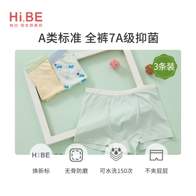 怡比欢乐动物园男童平角内裤3条入HY25AUN201蓝绿色调90#-140#