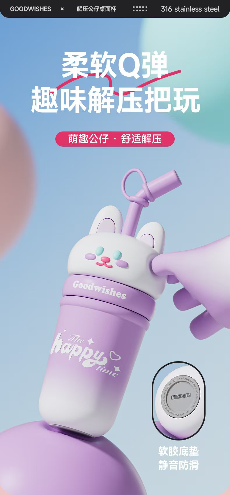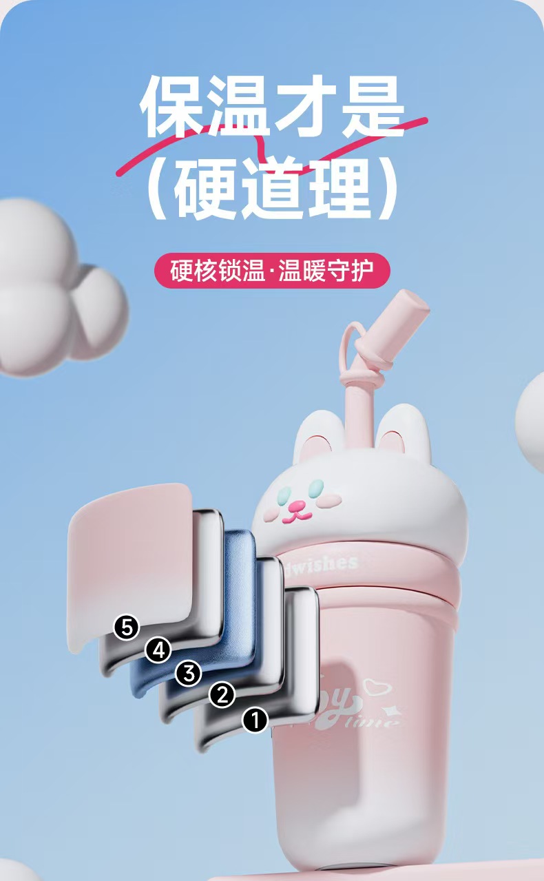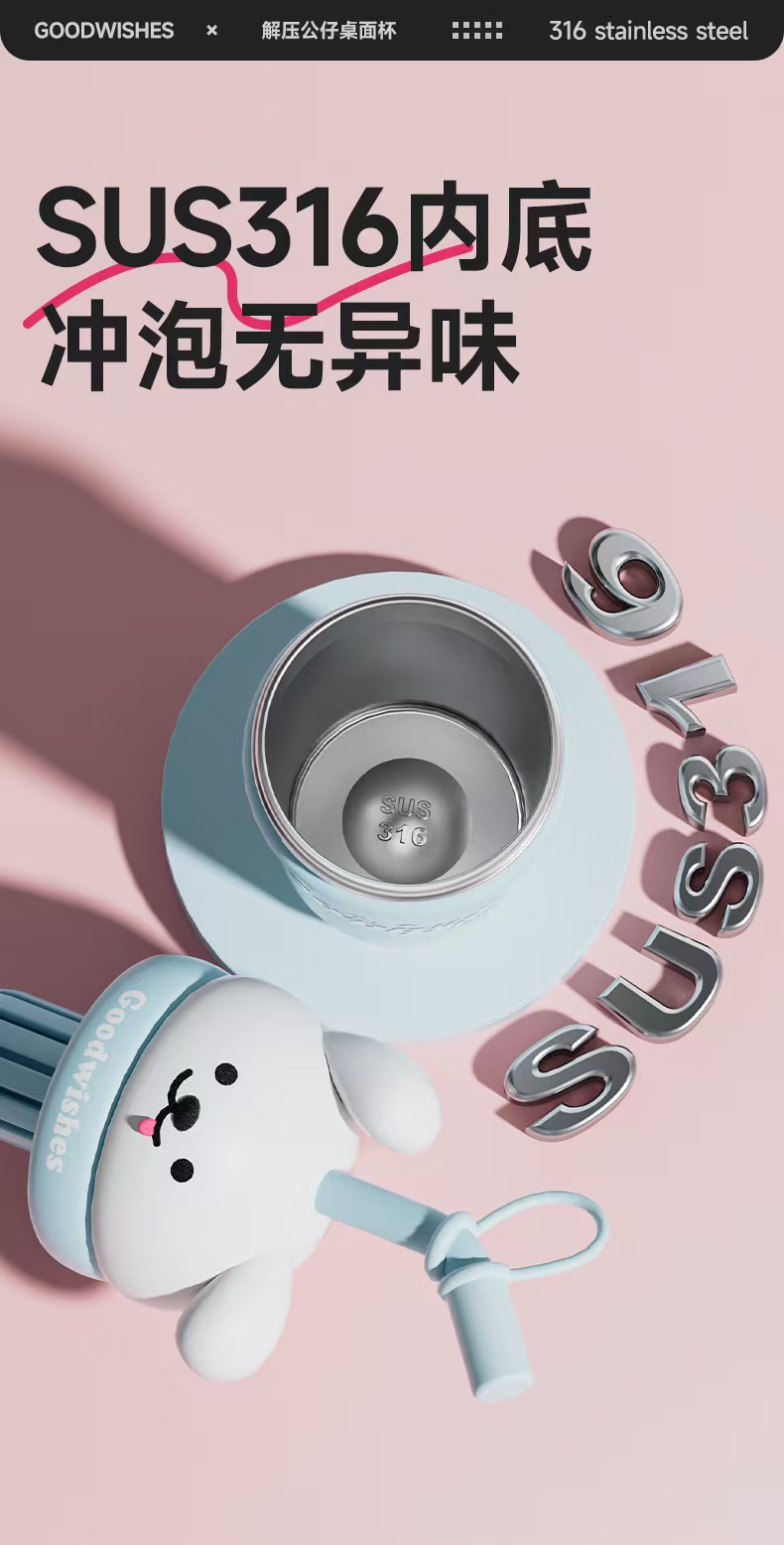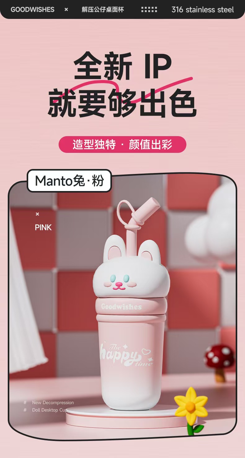 【春上新】【清仓】9楼母婴生活馆 高颜值解压公仔桌面杯大容量保温吸管杯650mL 活动价:69.9元