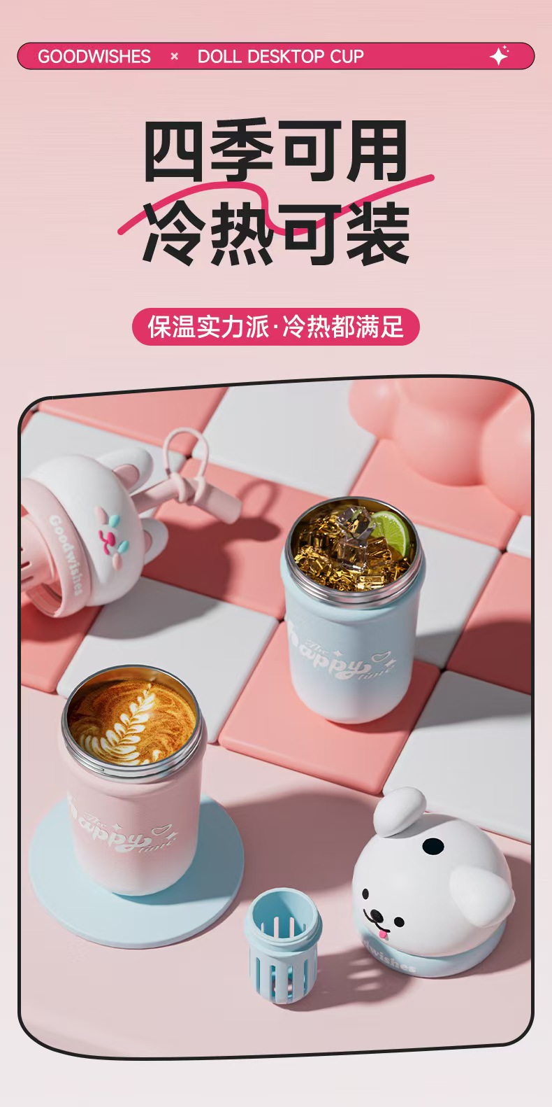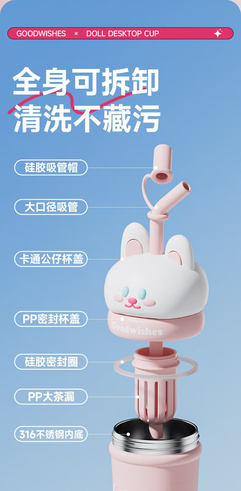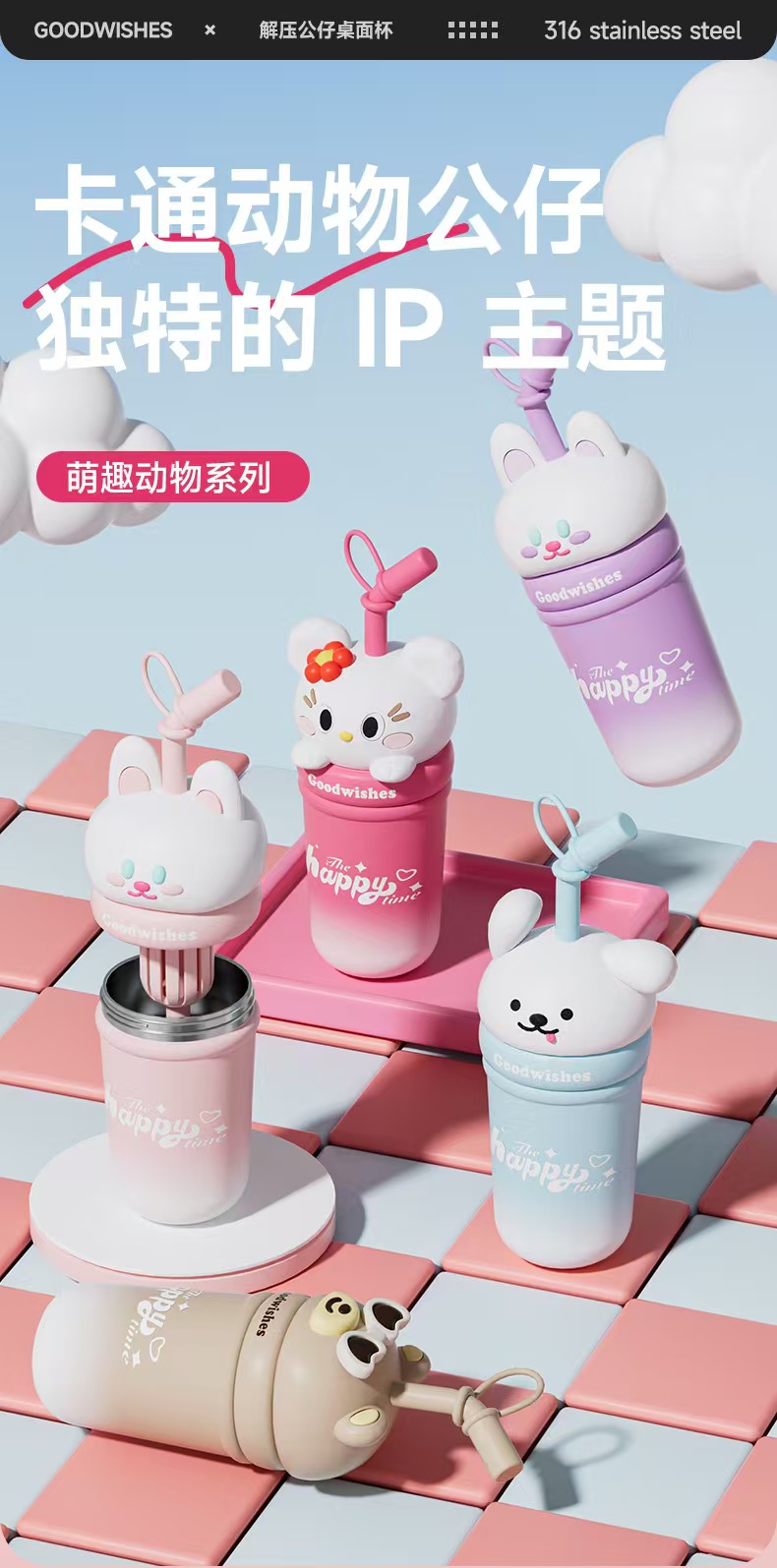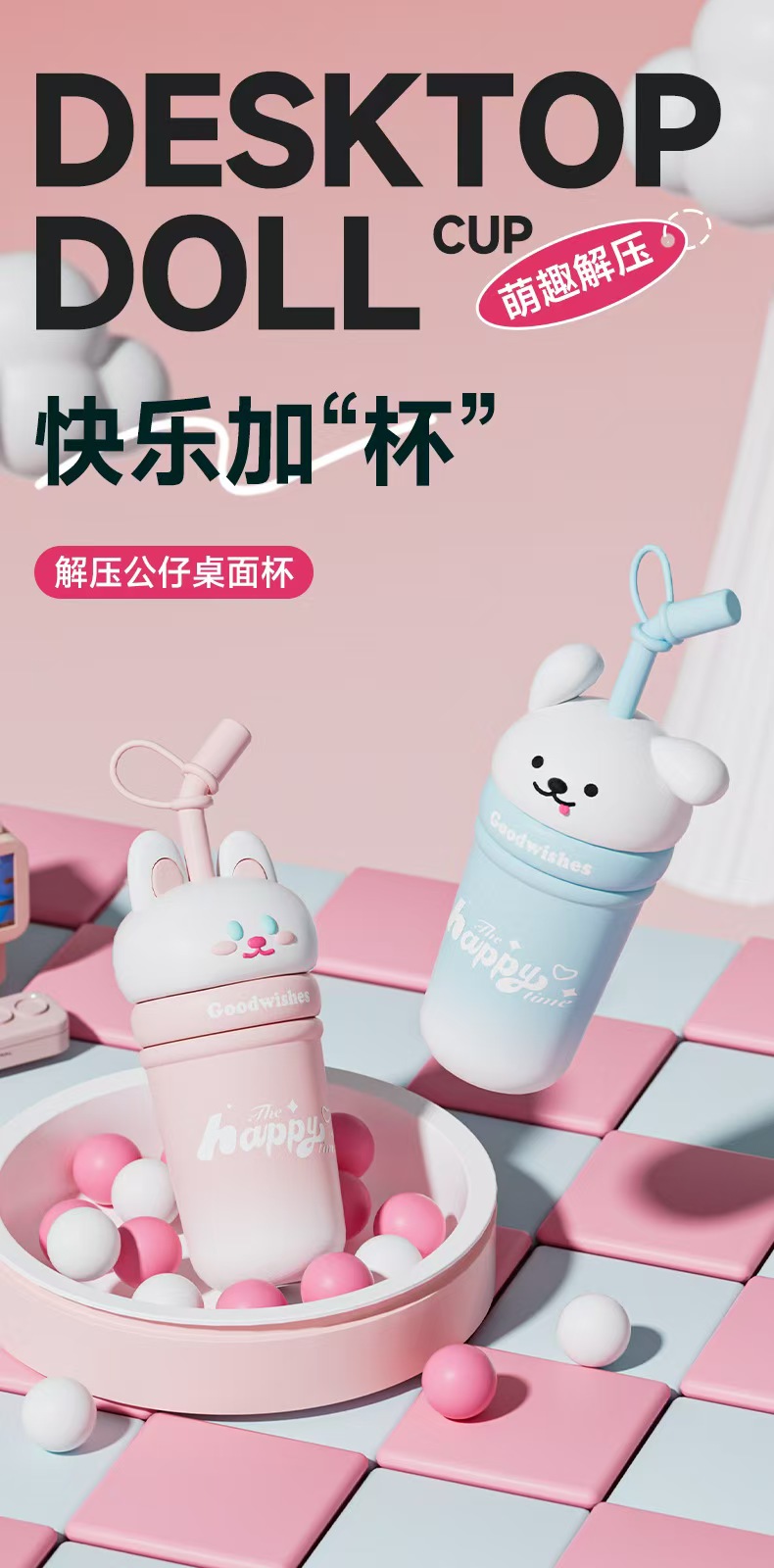 【春上新】【清仓】9楼母婴生活馆 高颜值解压公仔桌面杯大容量保温吸管杯650mL 活动价:69.9元