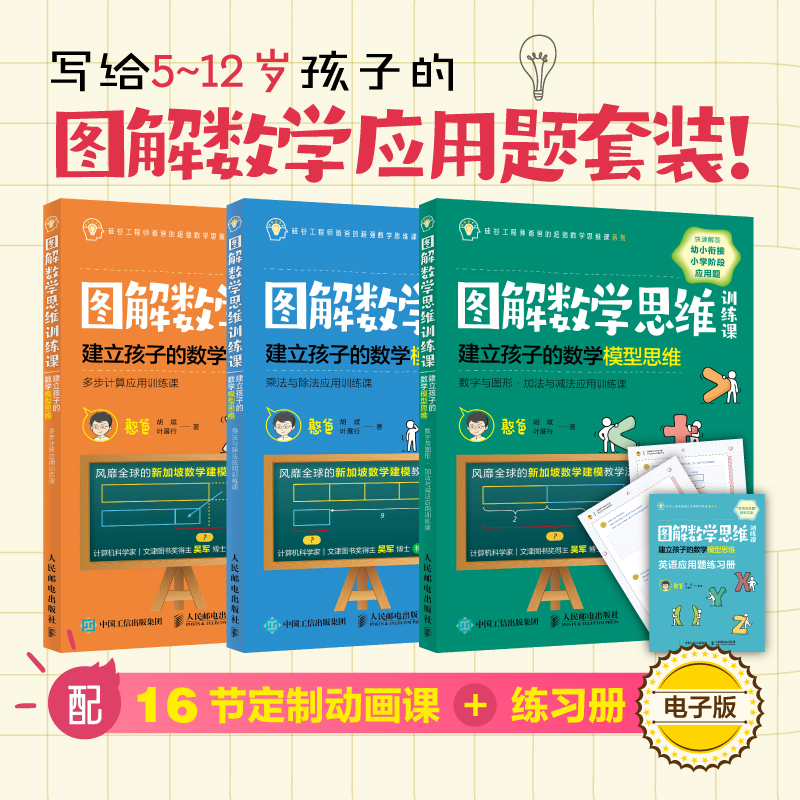 9787115540133 图解数学思维训练课 建立孩子的数学模型思维(数字与图形 ·加法与减法应用训练课) 63.00 9787115540140 图解数学思维训练课 建立孩子的数学模型思维(乘法与除法应用训练课) 53.00 9787115540157 图解数学思维训练课:建立孩子的数学模型思维(多步计算应用训练课) 53.00 《图解数学思维训练课 建立孩子的数学模型思维(数字与图形 ·加法与减法应用训练课)》 图形化思维能力是数学思维中极其重要的部分。本书针对学龄前到小学阶段的孩子在学习数学过程中感到苦恼的问题解决能力,详细阐述了图形化建模的原理、步骤和思维方法,由浅入深地引导孩子通过画图的方式思考并解决数学问题,形成良好的沟通和思维习惯,进而解决生活中的实际问题,为孩子初中、高中阶段的学习奠定基础。 本书*阐述了数字与图形的关系,带孩子迈入图形化思维的大门。之后详细讲解了“部分-整体”画图法和“比较”画图法两大方法,来解决加法、减法相关的数学应用题。*,以趣味性STEAM项目的形式培养孩子的实际问题解决能力。 书中的章节分为两大类,一是知识点讲解及训练,通过循序渐进的思考过程解析来培养孩子的图形化思维,并辅以大量的思维训练巩固学习效果。二是STEAM项目,引入先进的项目制学习体验,通过生动有趣的科学、工程或技术项目,训练孩子利用图形化思维来解决实际应用问题的能力。 《图解数学思维训练课 建立孩子的数学模型思维(乘法与除法应用训练课)》 图形化思维能力是数学思维中极其重要的部分。本书针对学龄前到小学阶段的孩子在学习数学过程中感到苦恼的问题解决能力,详细阐述了图形化建模的原理、步骤和思维方法,由浅入深地引导孩子通过画图的方式思考并解决数学问题,形成良好的沟通和思维习惯,进而解决生活中的实际问题,为孩子进入初中、高中阶段的学习奠定基础。 本书*详细讲解了“部分-整体”画图法和“比较”画图法两大方法,来解决乘法、除法相关的数学应用题。之后,以趣味性STEAM项目的形式培养孩子的实际问题解决能力。 书中的章节分为两大类,一是知识点讲解及训练,通过循序渐进的思考过程解析来培养孩子的图形化思维,并辅以大量的思维训练巩固学习效果。二是STEAM项目,引入先进的项目制学习体验,通过生动有趣的科学、工程或技术项目,训练孩子利用图形化思维来解决实际应用问题的能力。 《图解数学思维训练课:建立孩子的数学模型思维(多步计算应用训练课)》 图形化思维能力是数学思维中极其重要的部分。本书针对学龄前到小学阶段的孩子在学习数学过程中感到苦恼的问题解决能力,详细阐述了图形化建模的原理、步骤和思维方法,由浅入深地引导孩子通过画图的方式思考并解决数学问题,形成良好的沟通和思维习惯,进而解决生活中的实际问题,为孩子进入初中、高中阶段的学习奠定基础。 本书*详细讲解了如何通过画图法来解决多步计算相关的应用题,深入分析了19种典型问题的图解思维。之后,以趣味性STEAM项目的形式培养孩子的实际问题解决能力。 书中的章节分为两大类,一是知识点讲解及训练,通过循序渐进的思考过程解析来培养孩子的图形化思维,并辅以大量的思维训练巩固学习效果。二是STEAM项目,引入先进的项目制学习体验,通过生动有趣的科学、工程或技术项目,训练孩子利用图形化思维来解决实际应用问题的能力。