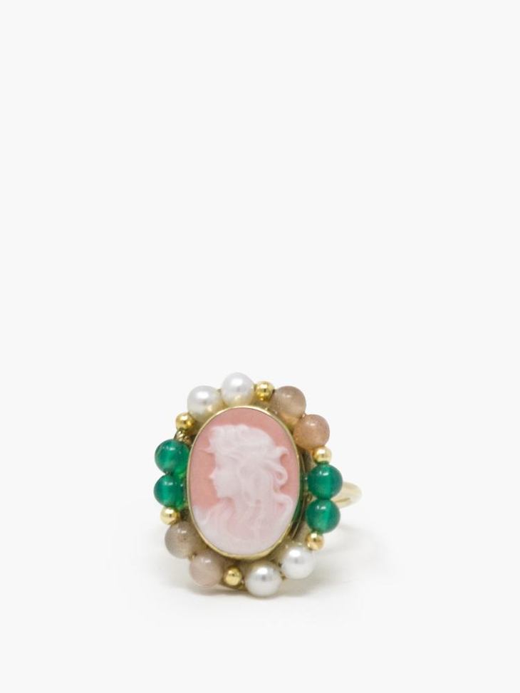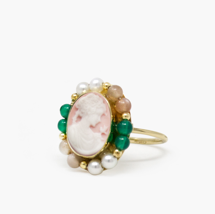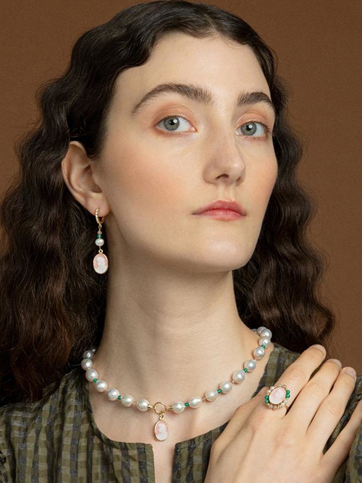 北京仓|Vintouch-Lovelies-粉瓷美人像 浮雕 环绕珍珠 戒指[意大利设计师]