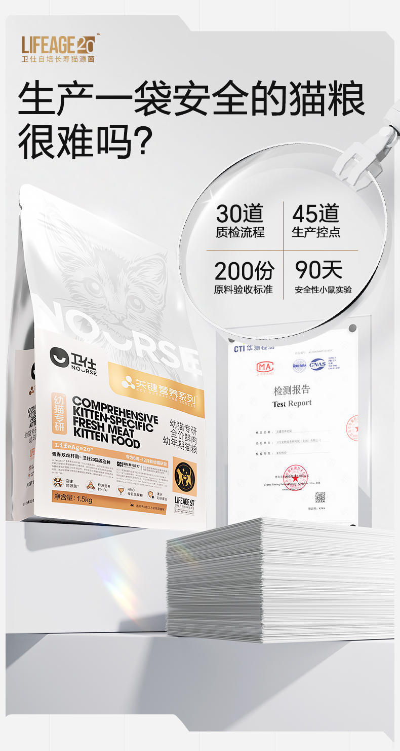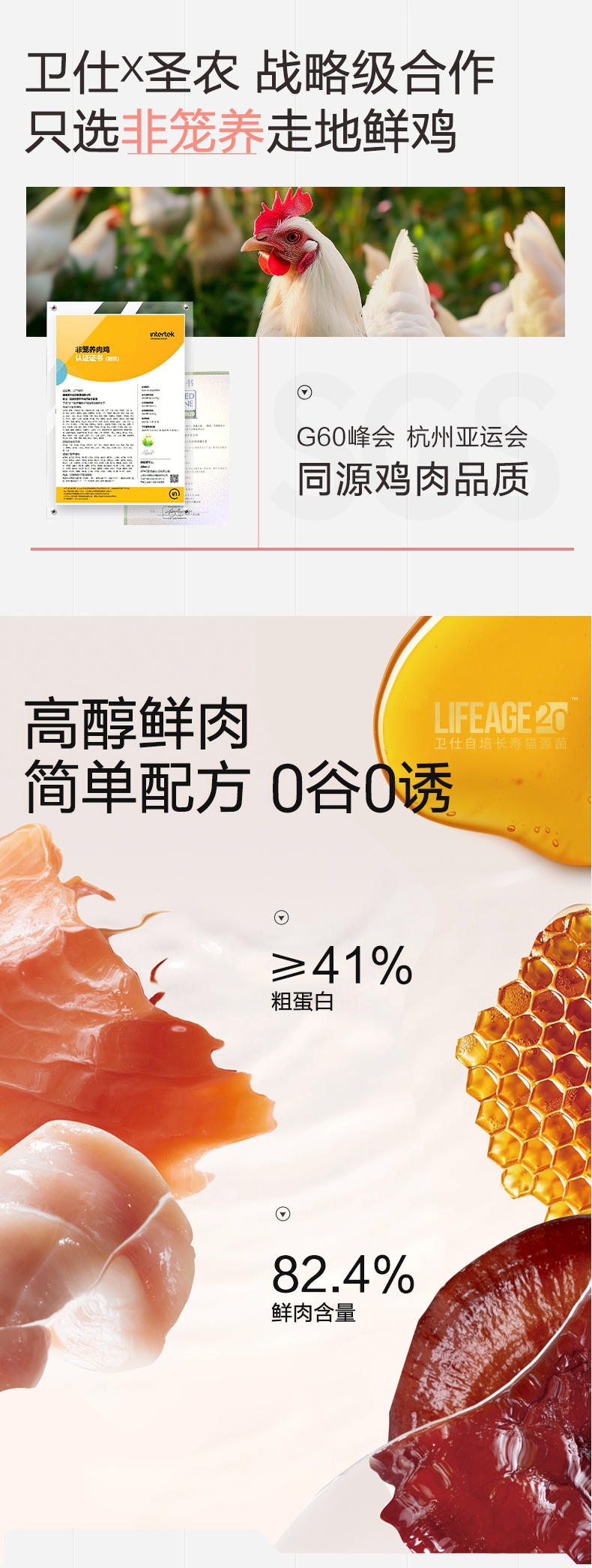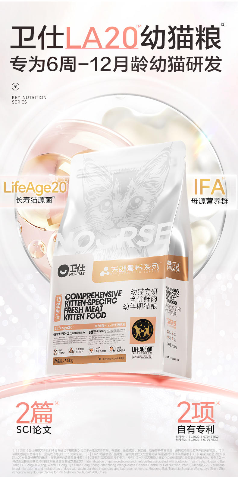 卫仕猫粮鲜肉关键营养LA20长寿猫源菌幼猫专用