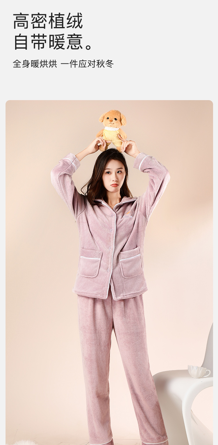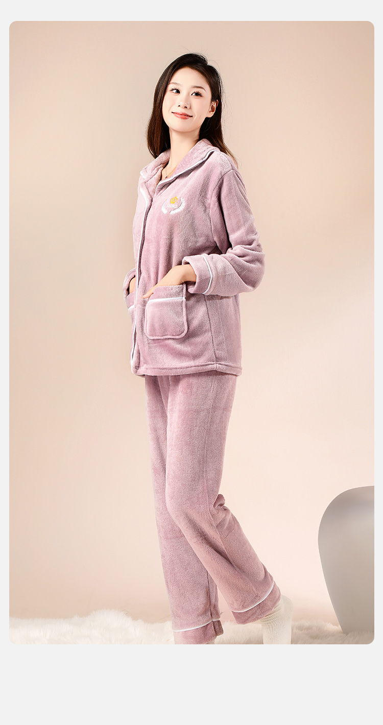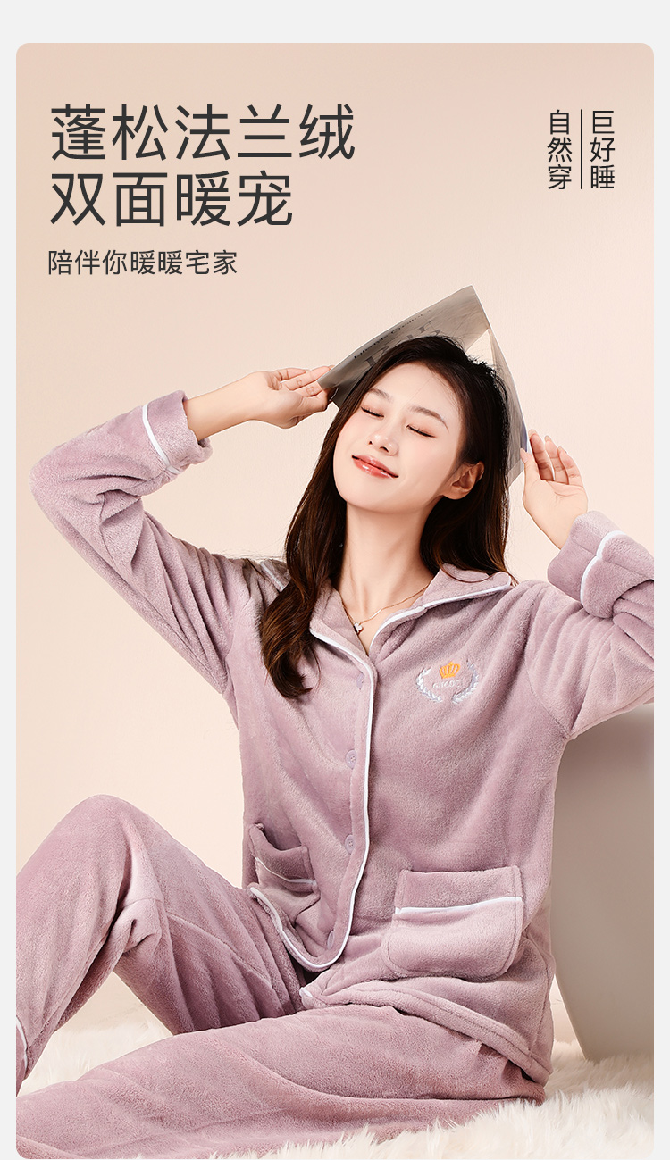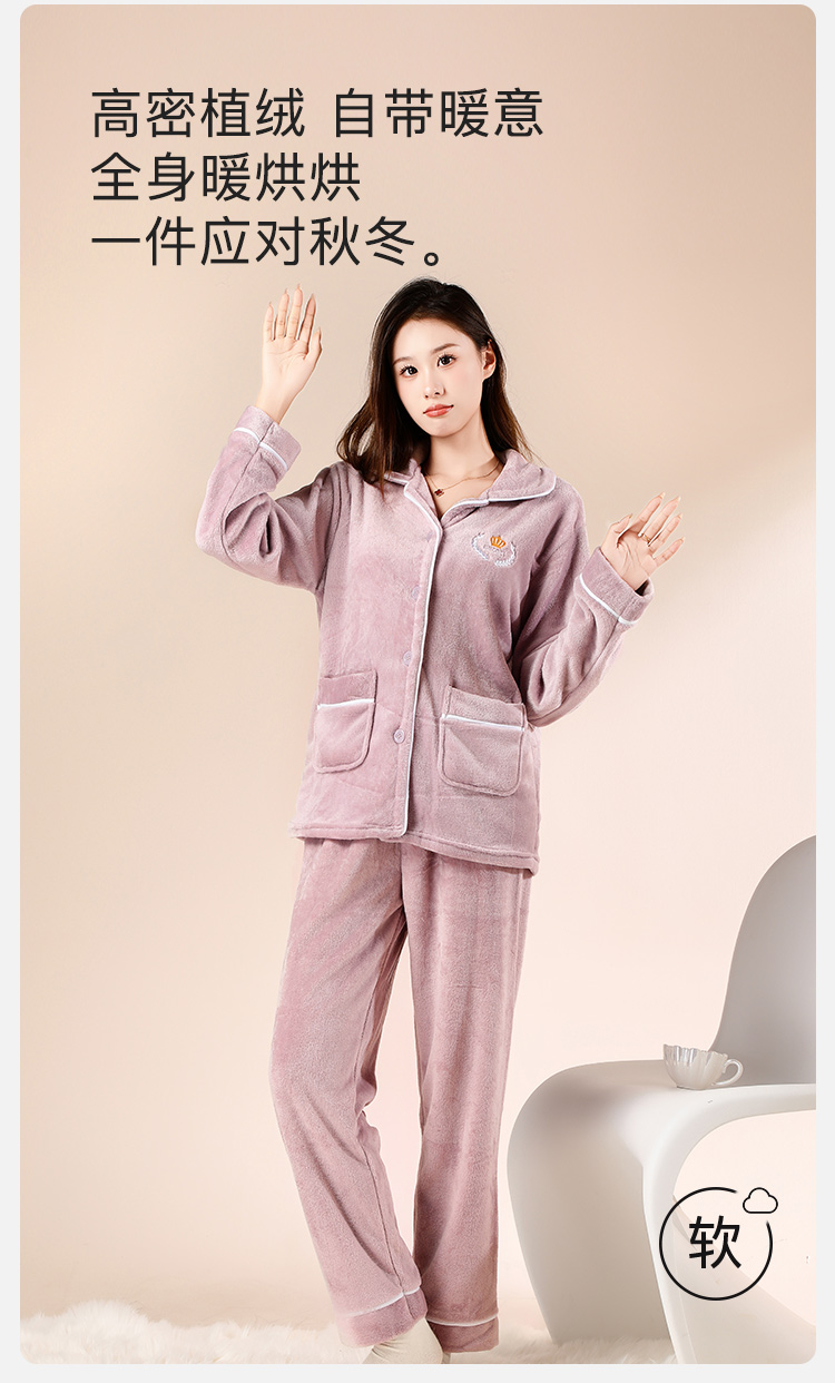 【云感亲肤柔软】睡衣女冬季款长袖开衫加绒加厚家居服女可外穿皇冠刺绣家居服