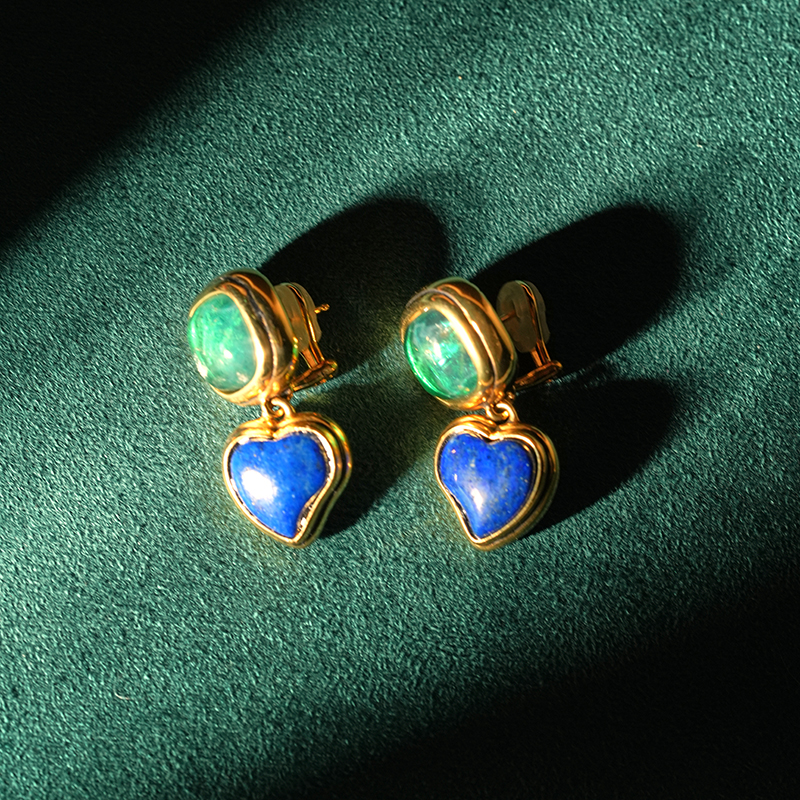 北京仓|Goossens Paris-BO PIN-宝蓝色 绿色 爱心 耳环[法国设计师]