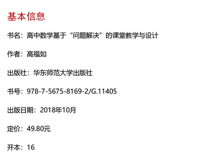 高中数学基于“问题解决”的课堂教学与设计 高福如 教学设计探索