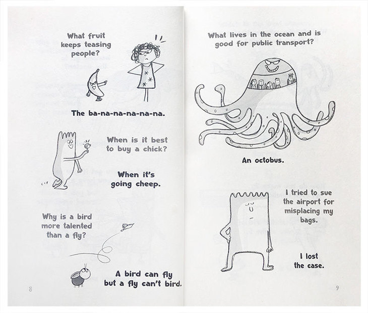 “桌子对椅子说了什么?”晚饭我请客。”孩子们喜欢开玩笑,也喜欢傻乎乎的画。这本书的独特之处在于,每个笑话都由纽约时报的畅销书二人组Swerling & Lazar配图。每一幅画本身都是一幅甜蜜的漫画瑰宝,有助于孩子阅读……全家人都笑了。