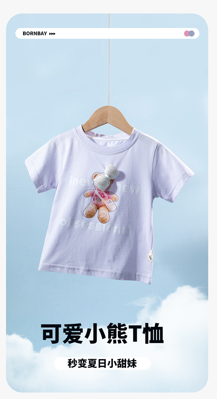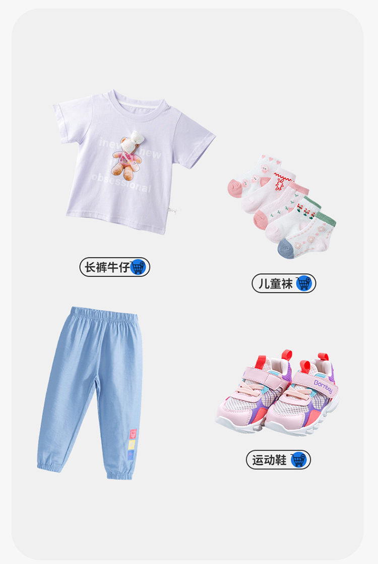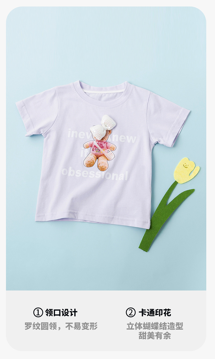 贝贝怡女童短袖t恤夏季儿童夏装上衣新款大童纯棉半袖童装潮