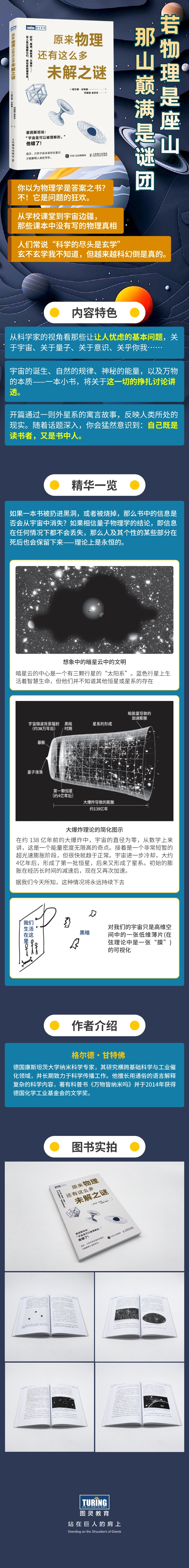 本书作者格尔德·甘特佛以通俗易懂的语言解释了当前物理学还不能完全解释的开放性问题,并从物理学基本规律、宇宙基本构成、人类的知识边界等角度进行了探讨,涉及暗物质、暗能量、希格斯粒子、霍金辐射等*吸引力的话题。本书内容新颖,其中不少观点颇具*性,适合所有对物理学感兴趣的人士阅读。