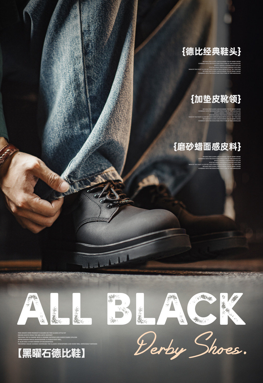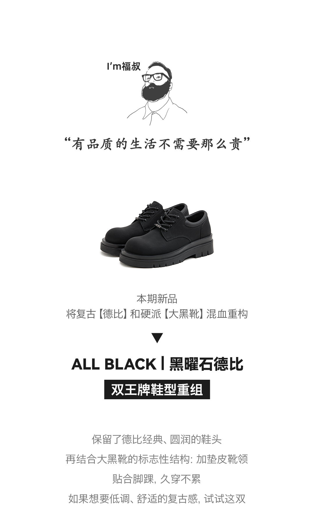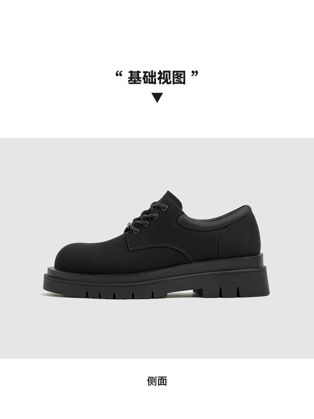 马登工装德比鞋男款厚底增高圆头大头鞋黑色通勤休闲皮鞋cleanfit