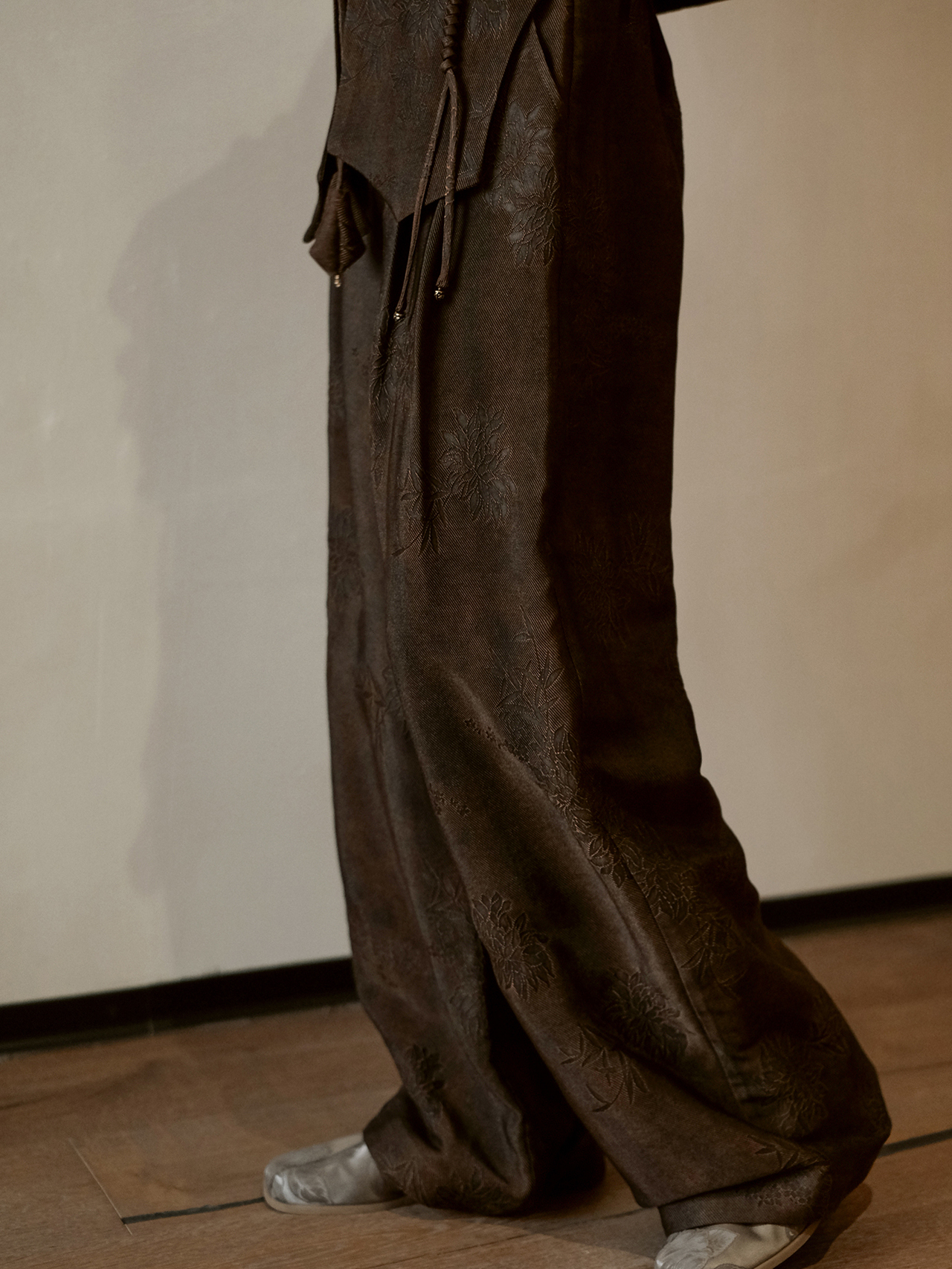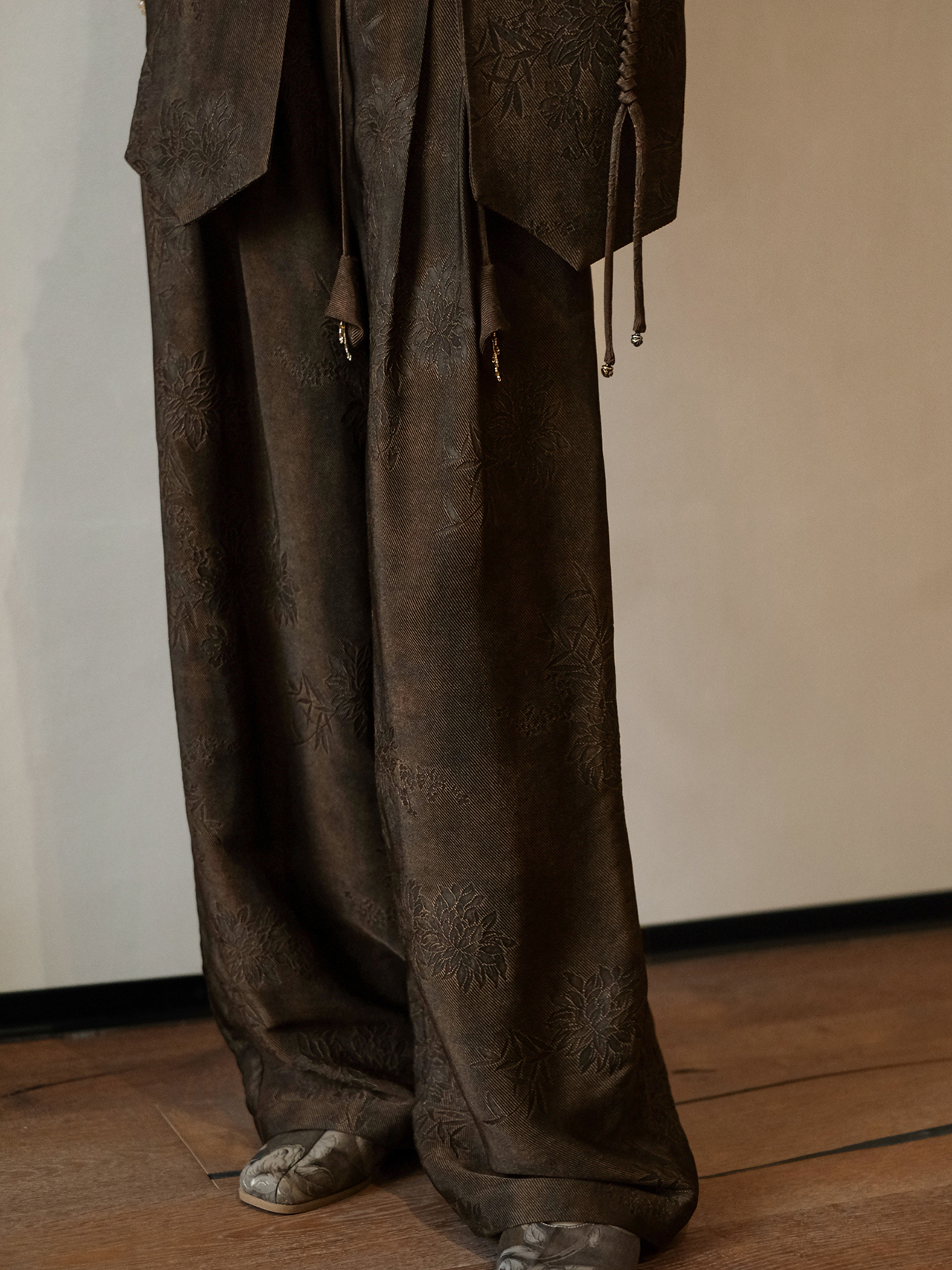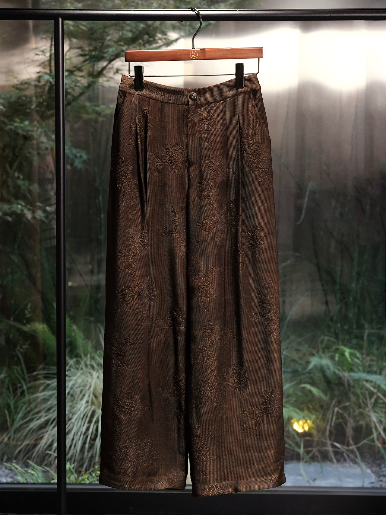 盛唐牡丹 |真丝提花阔腿裤珍珠白平腰版 (蝶恋花纹样)