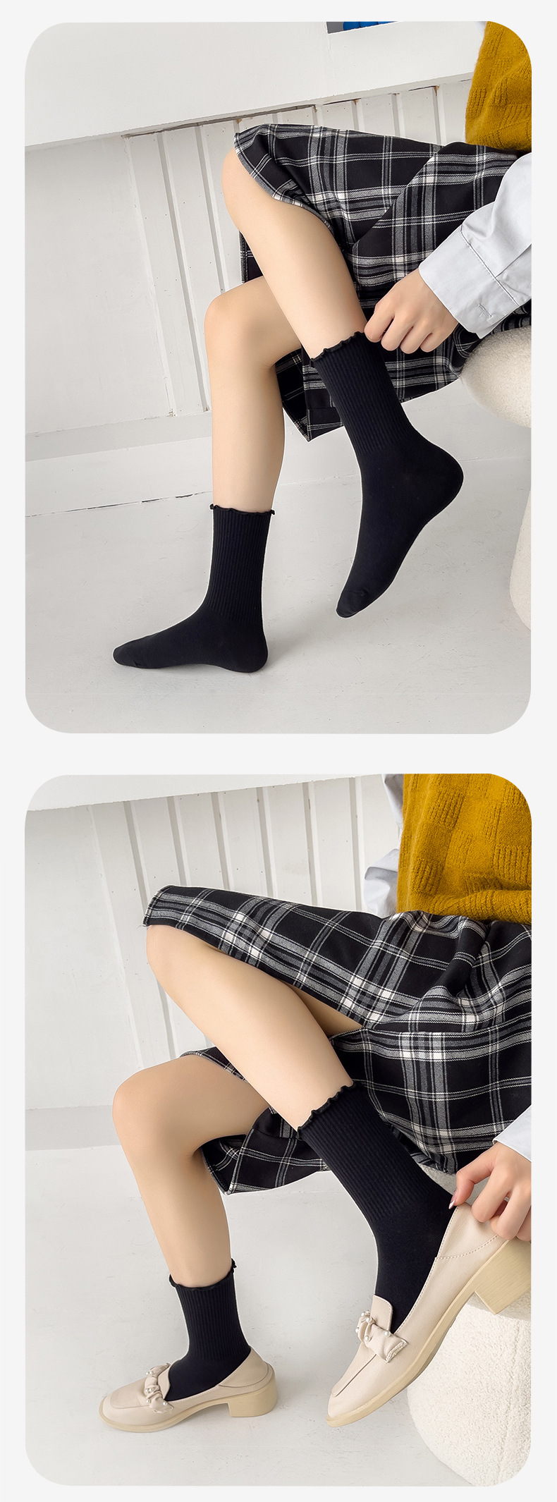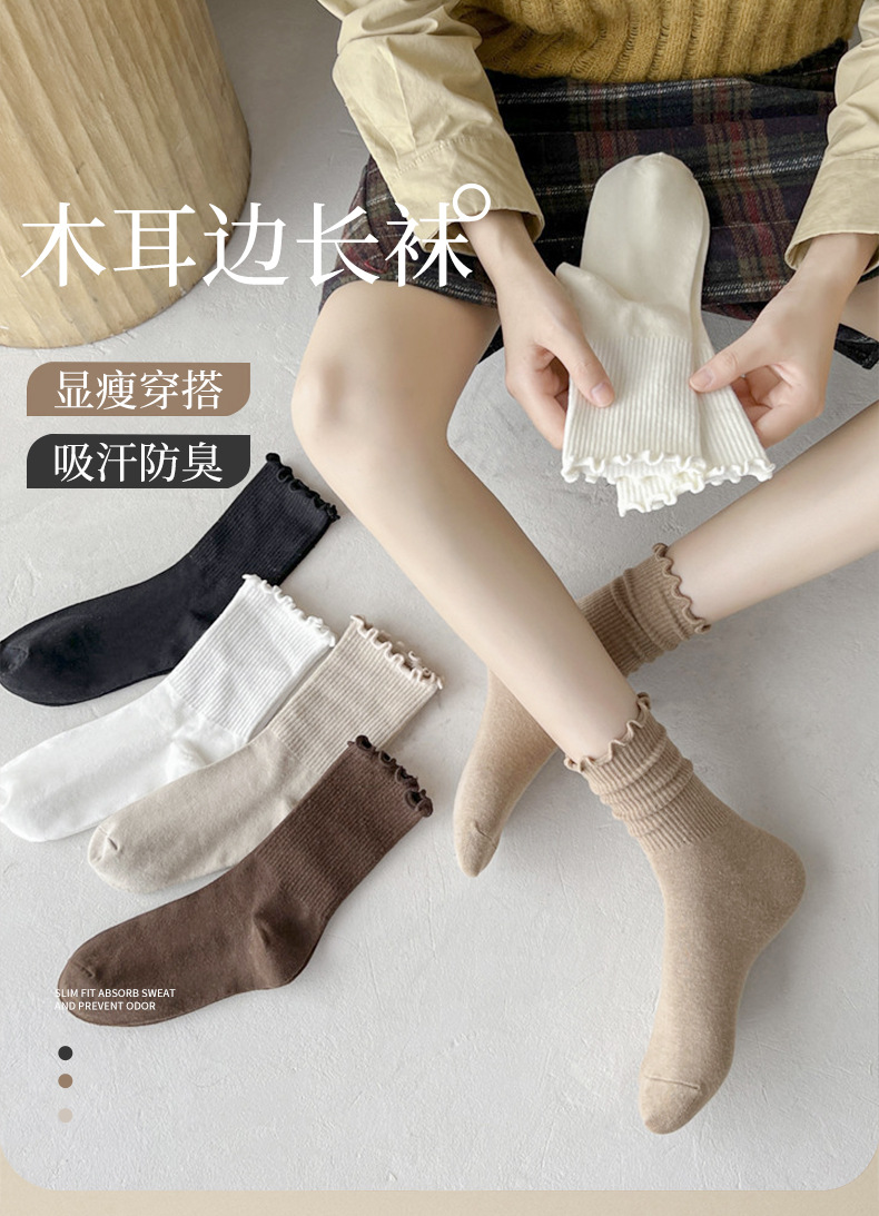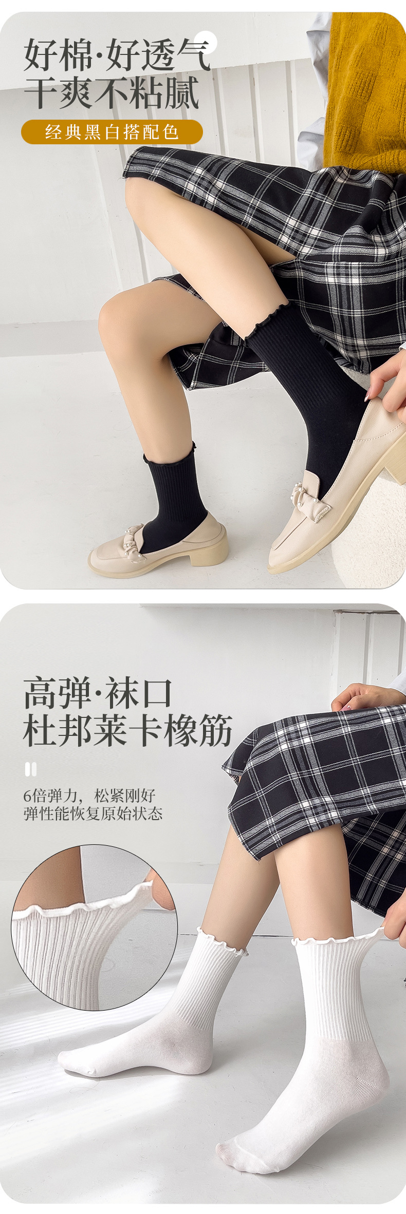 【6双超划算!显瘦百搭木耳边长袜】秋冬木耳边袜子女白色纯色中筒袜潮花边百搭棉袜堆堆袜诸暨日系风特价清仓