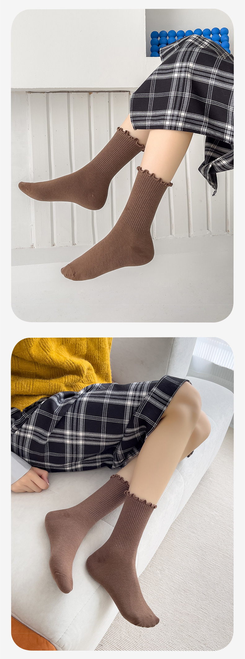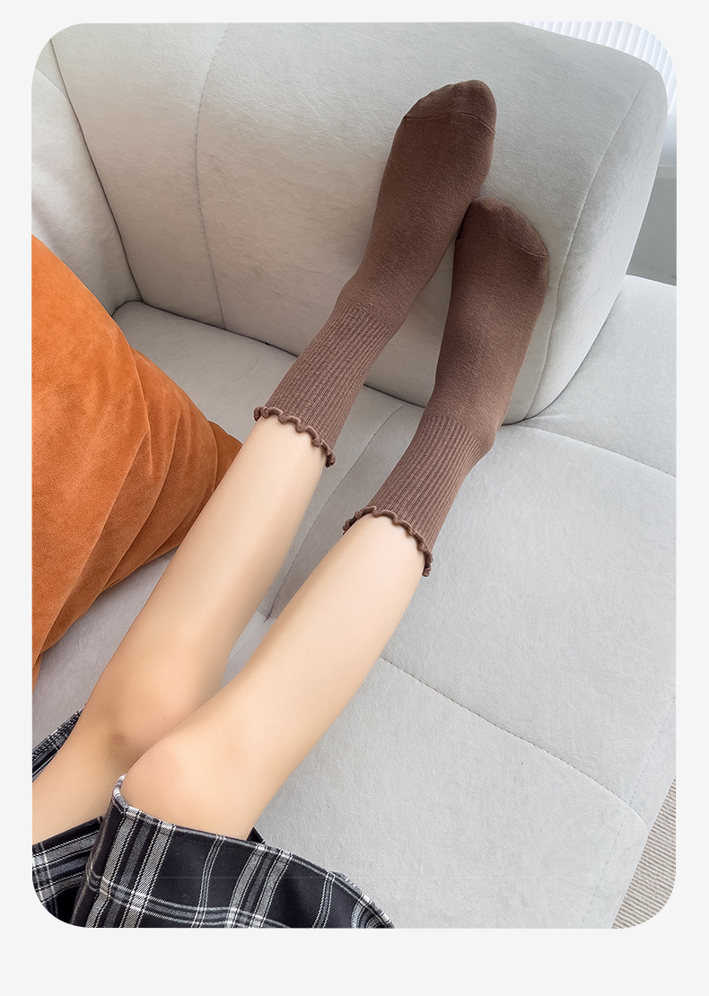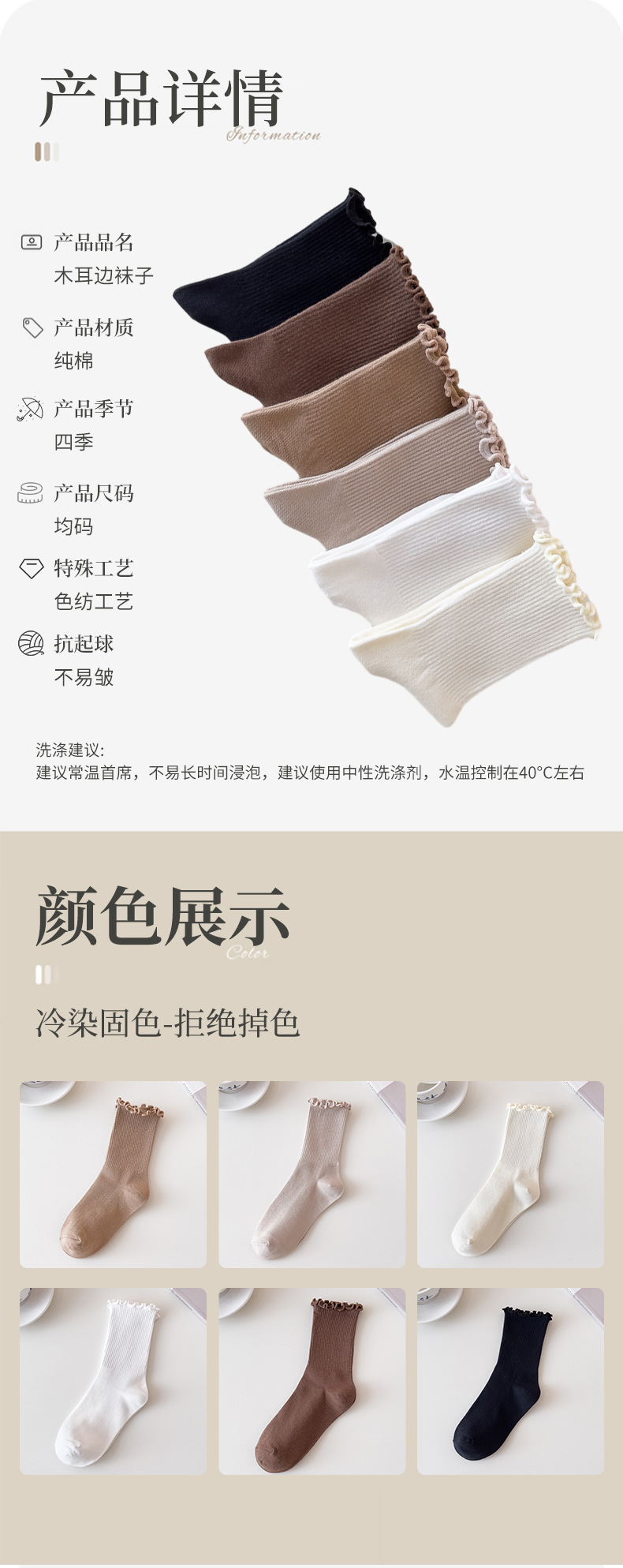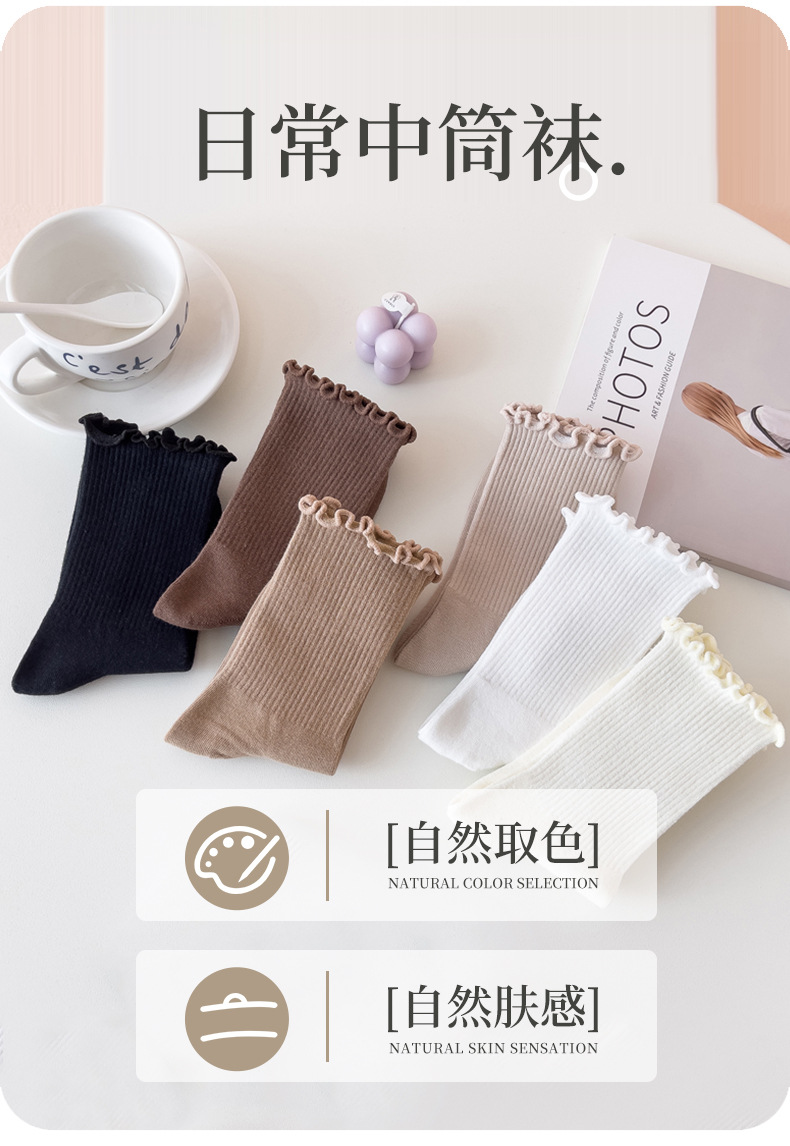 【6双超划算!显瘦百搭木耳边长袜】秋冬木耳边袜子女白色纯色中筒袜潮花边百搭棉袜堆堆袜诸暨日系风特价清仓