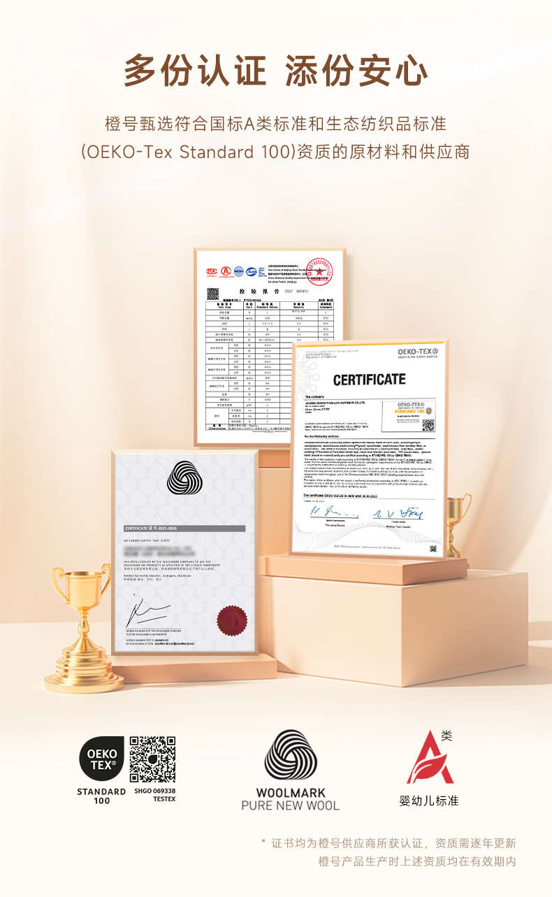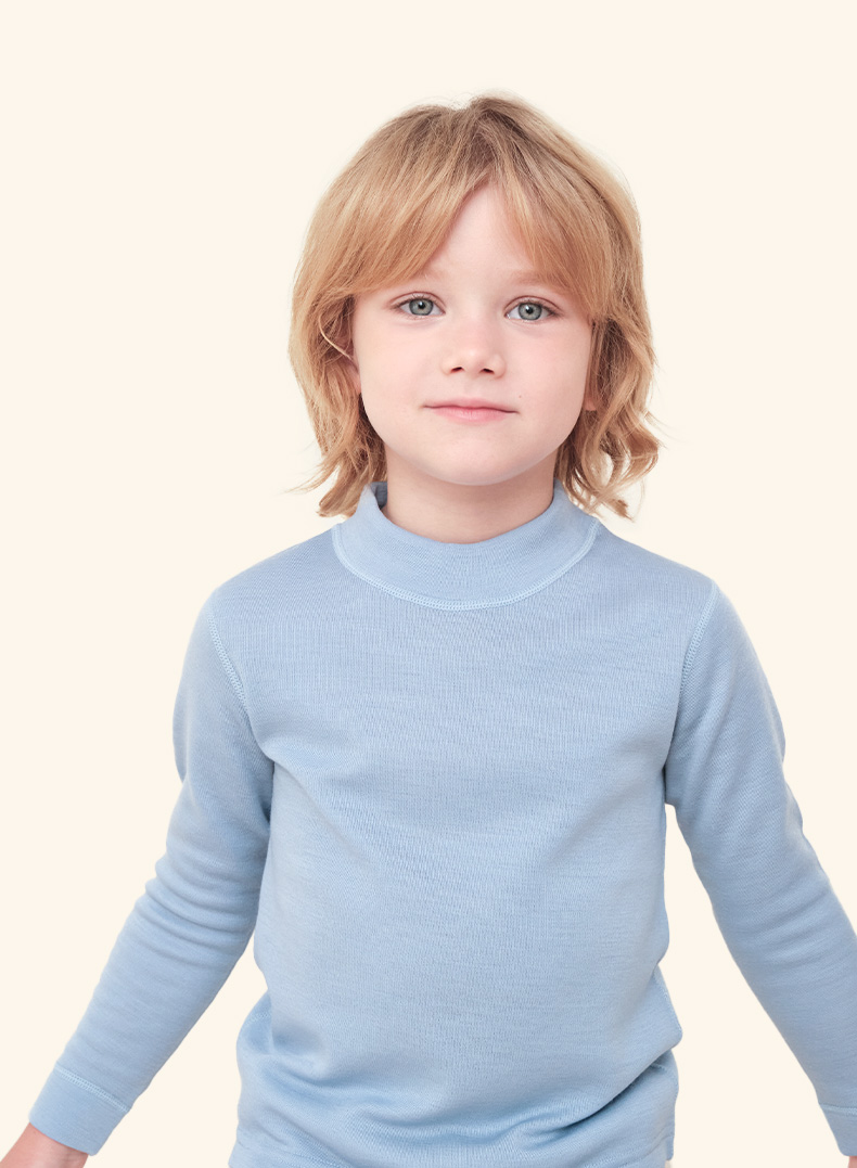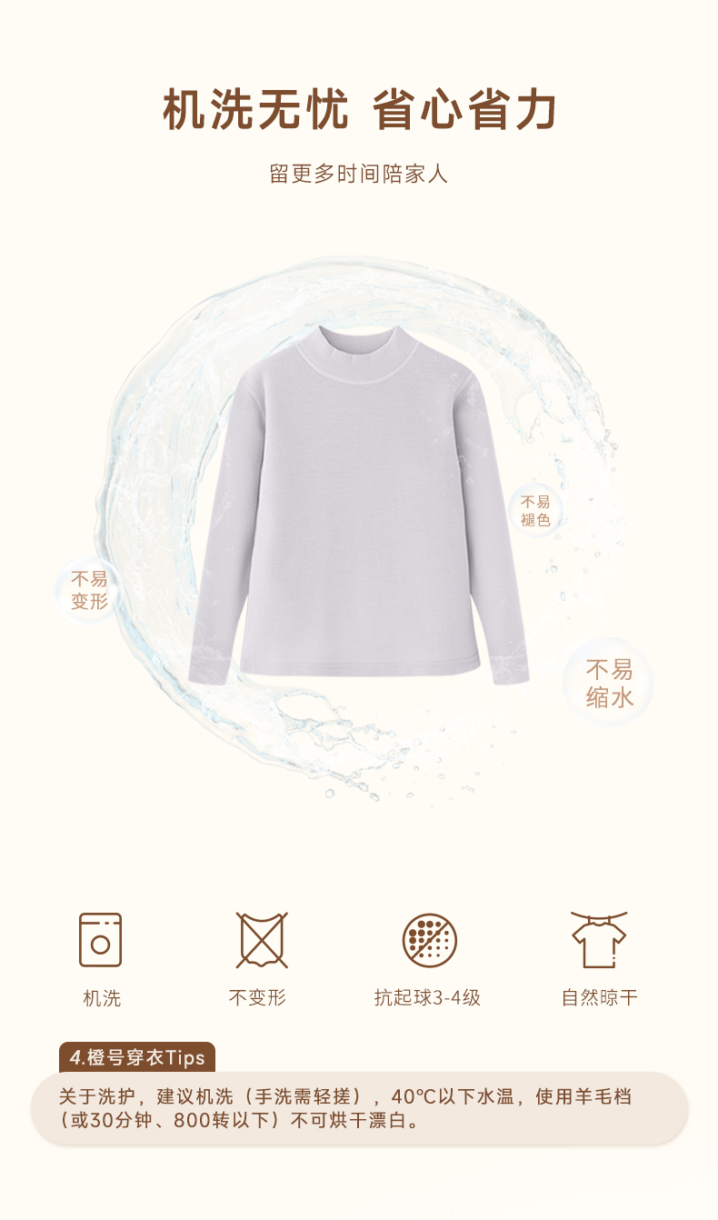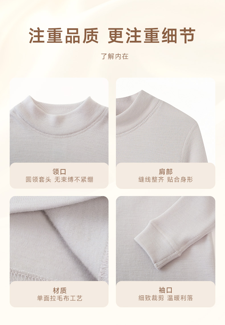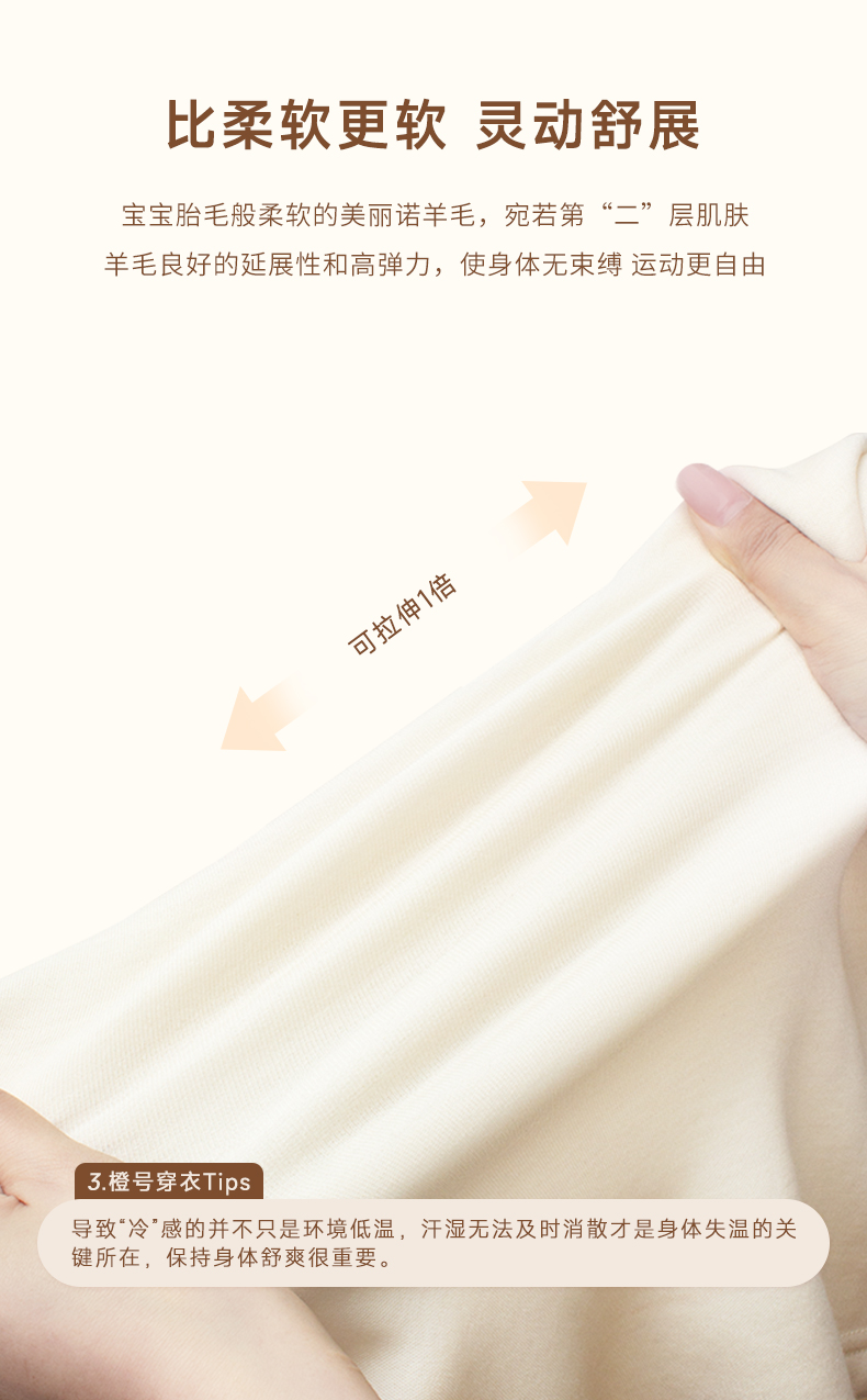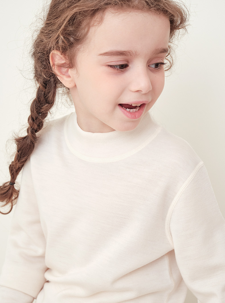低于双12【90-170】橙号100%美丽诺羊毛儿童小高领内拉绒加厚秋衣打底衫2025年 克重225g/㎡