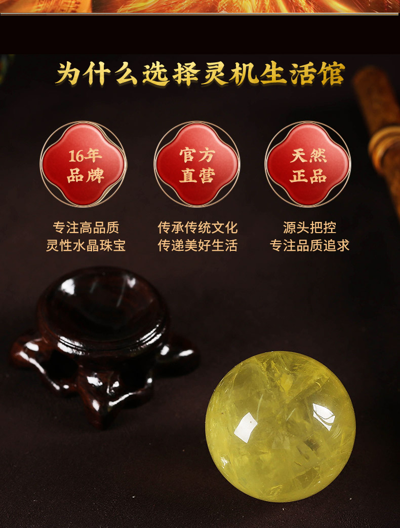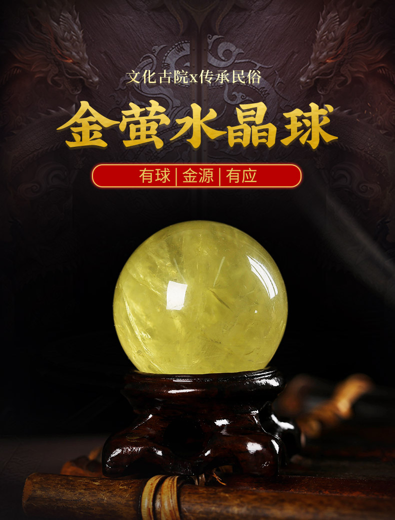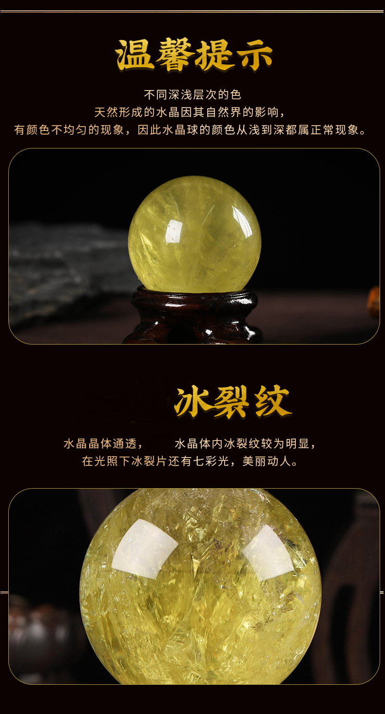 【经商之石】灵机生活馆金萤黄水晶球摆件 开业送礼