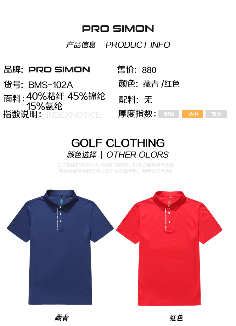BMS-102A(PROSIMON高尔夫男款春夏短袖简约风翻领Polo衫)