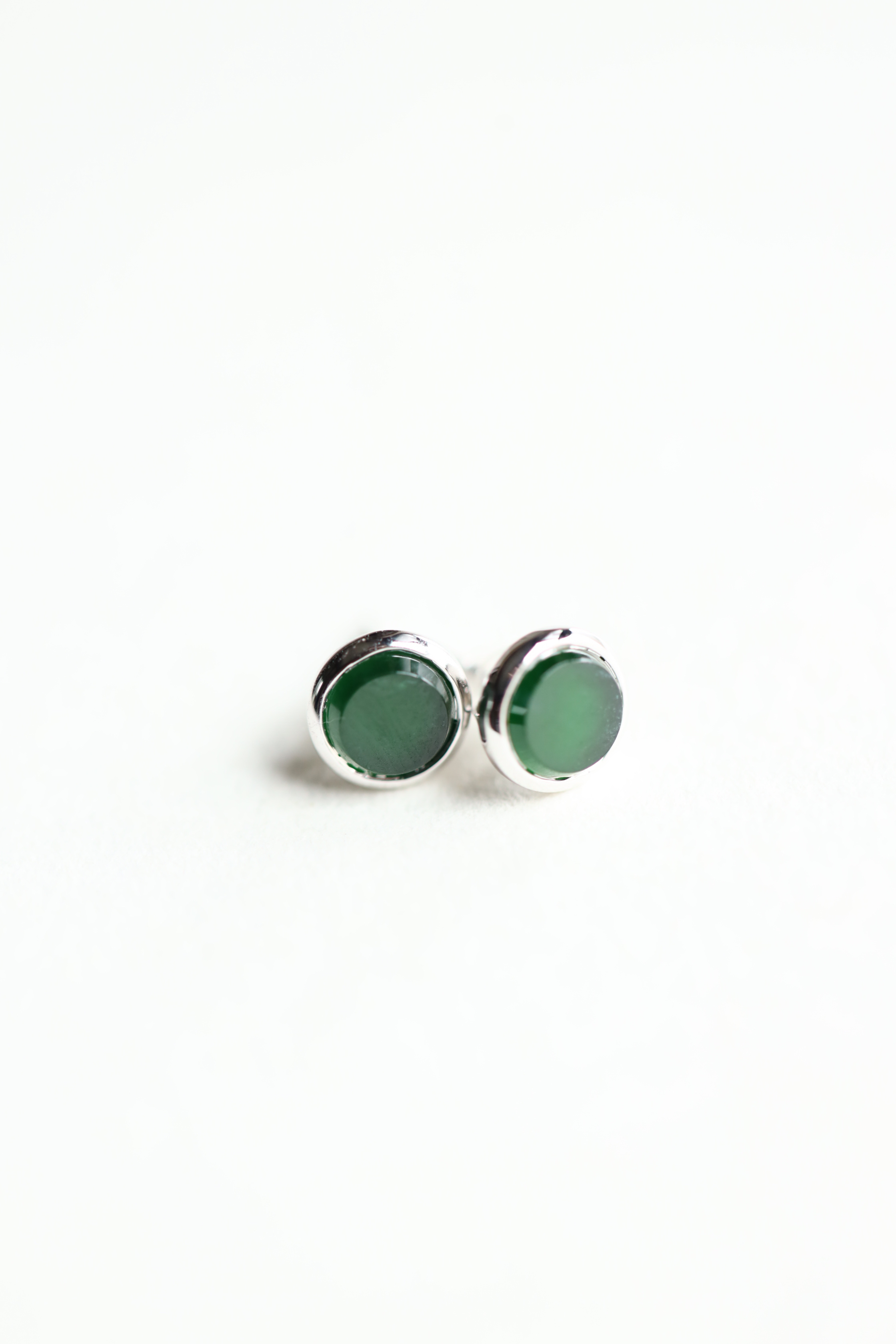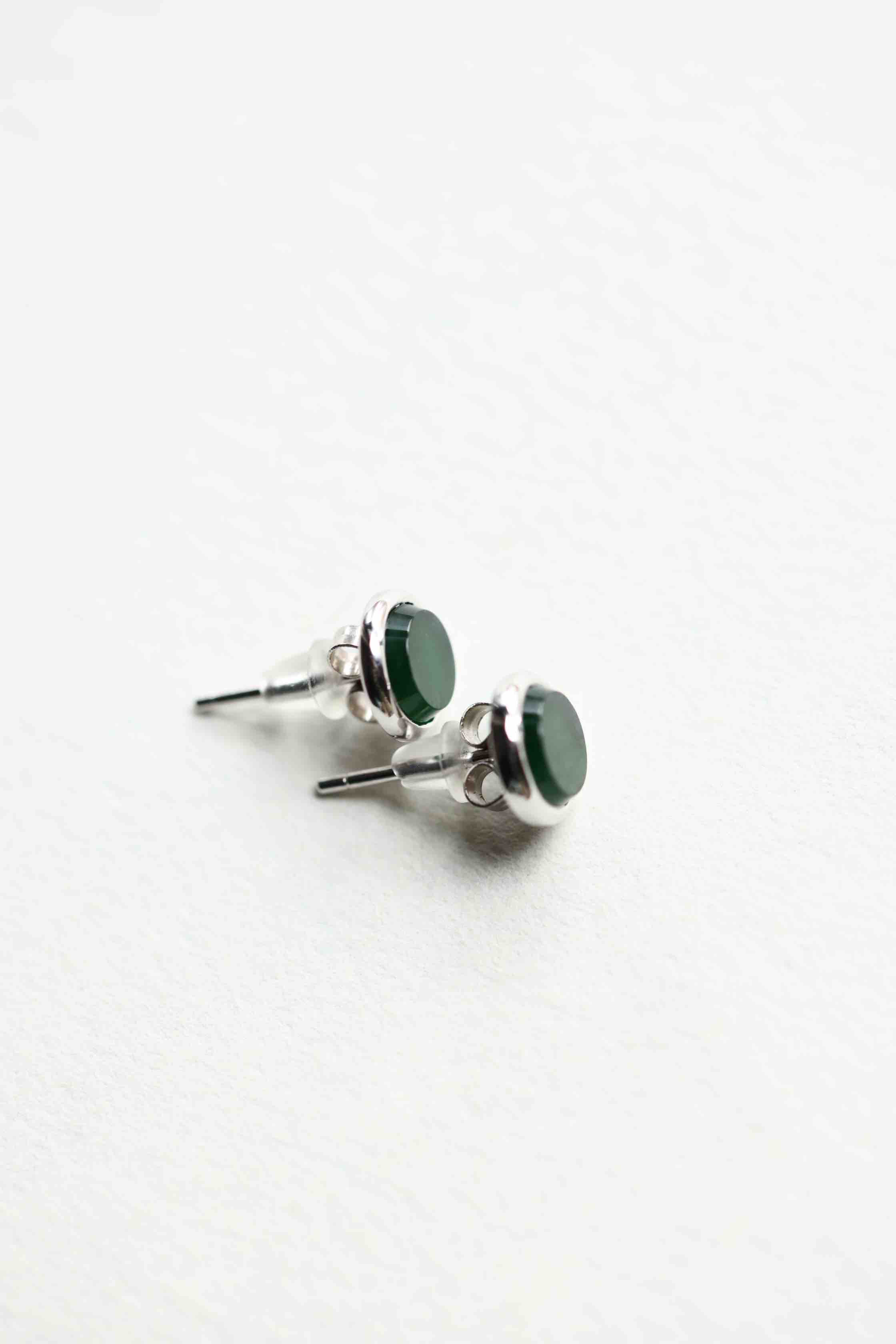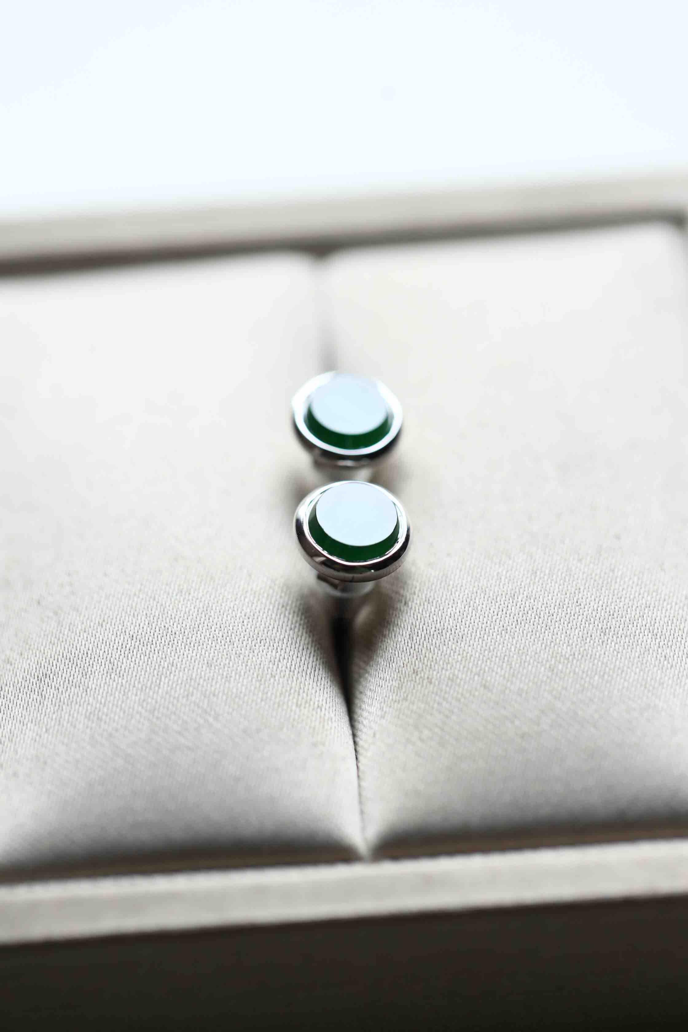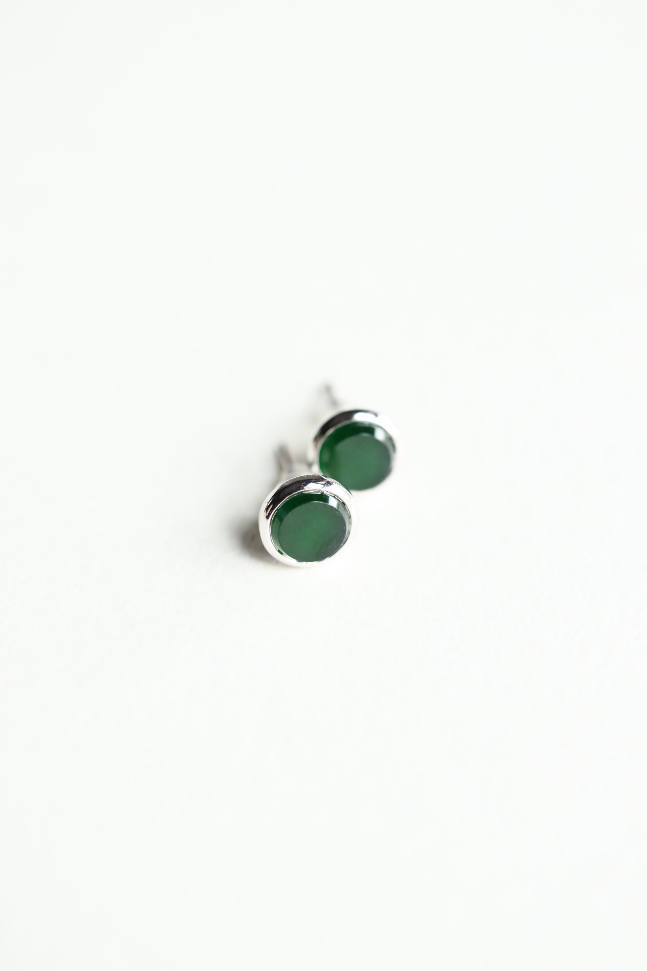 高冰种湖水绿翡翠圆盘耳钉18k白金镶嵌