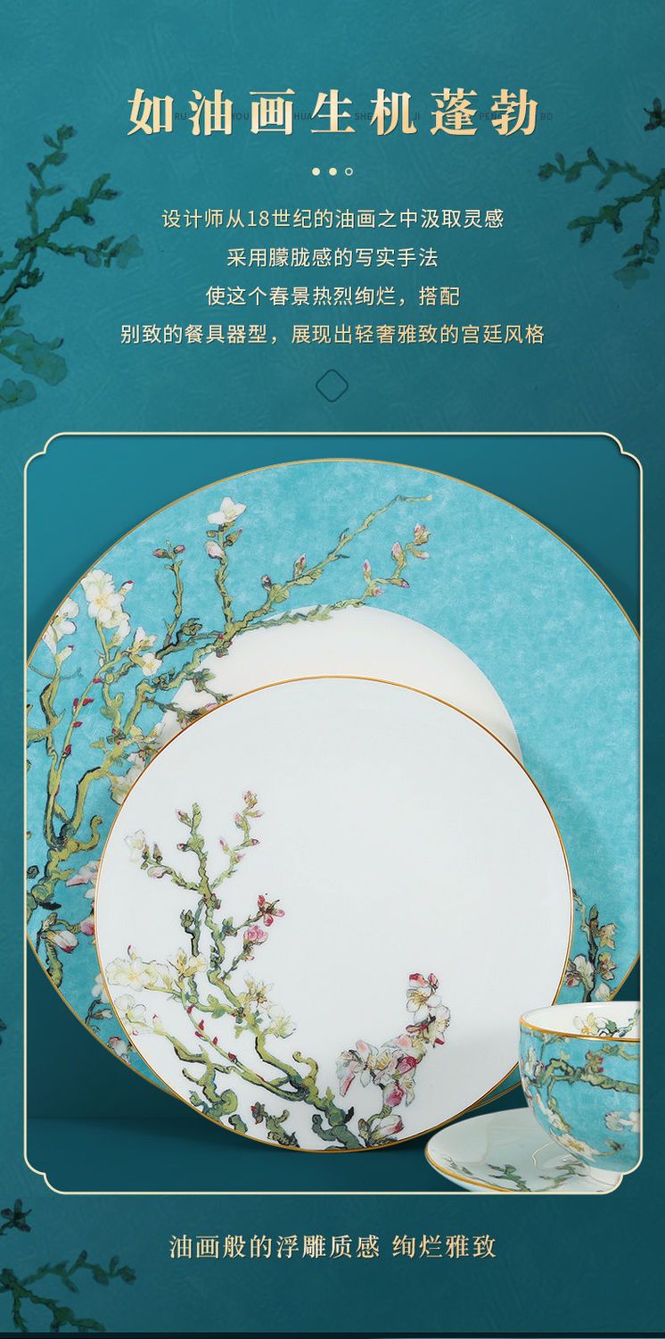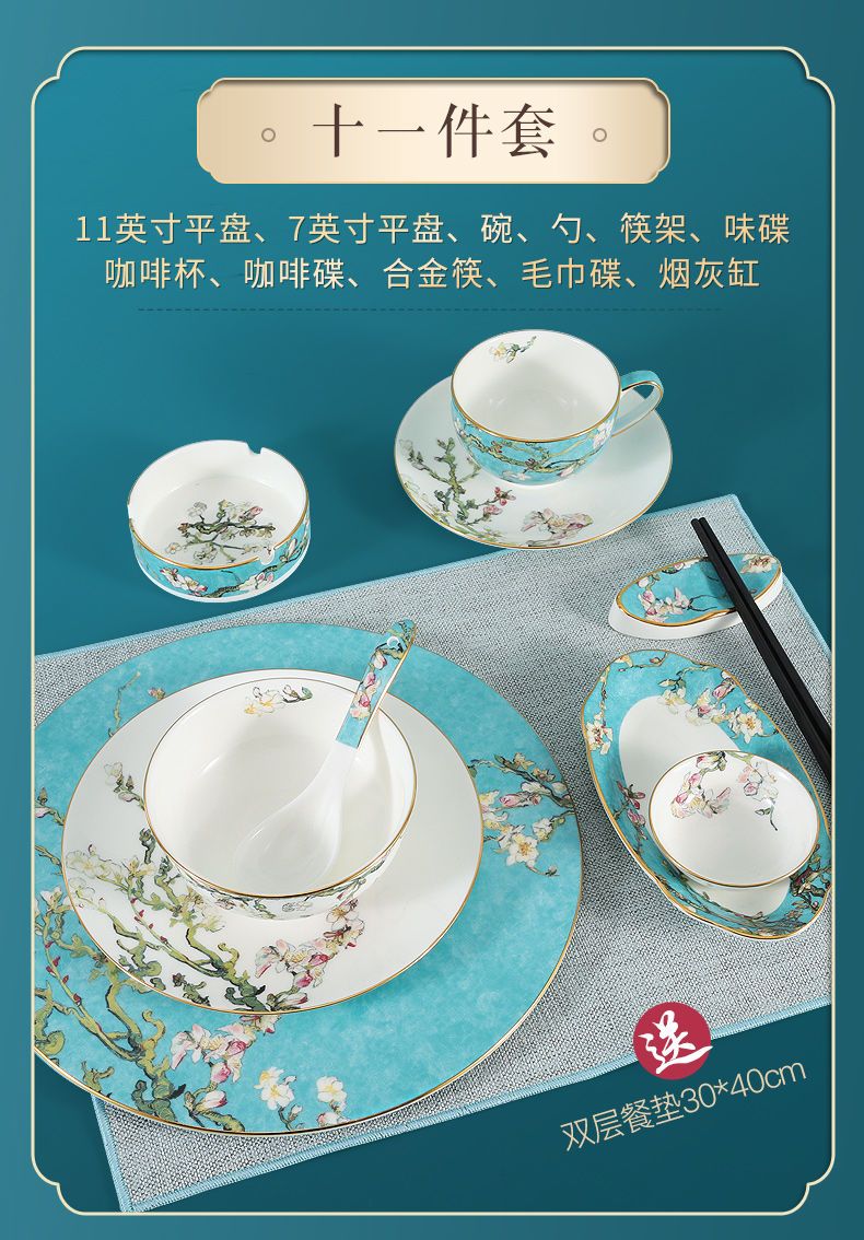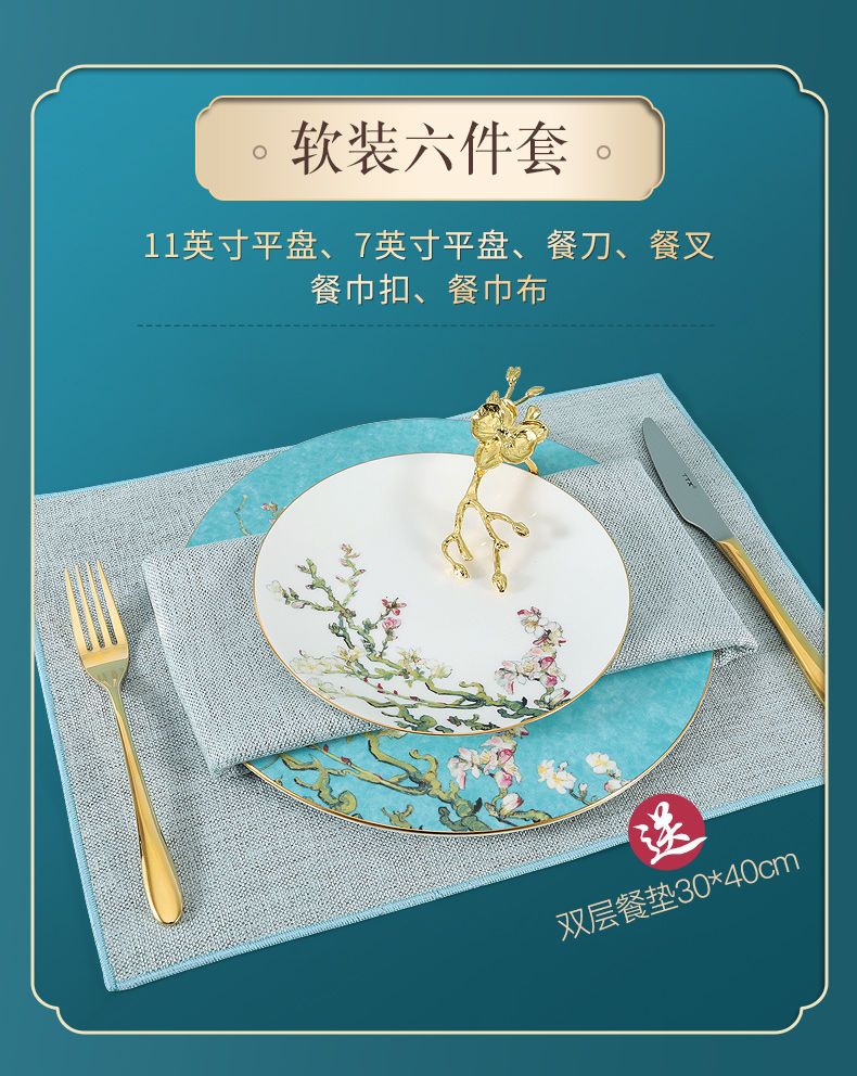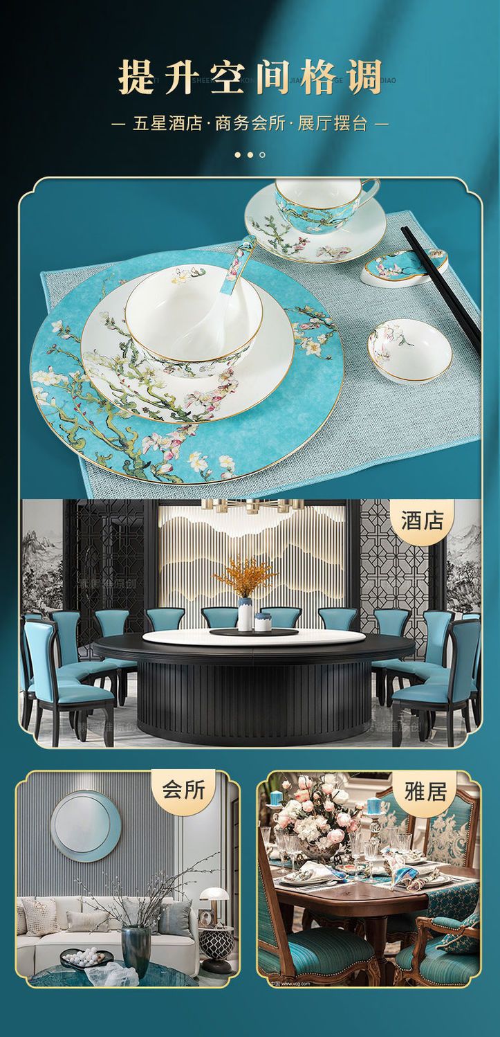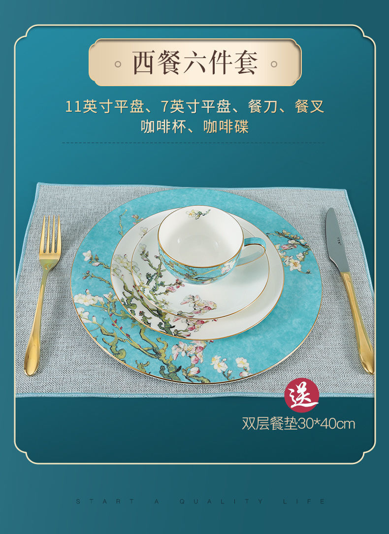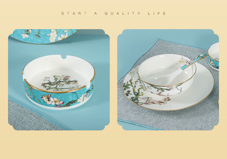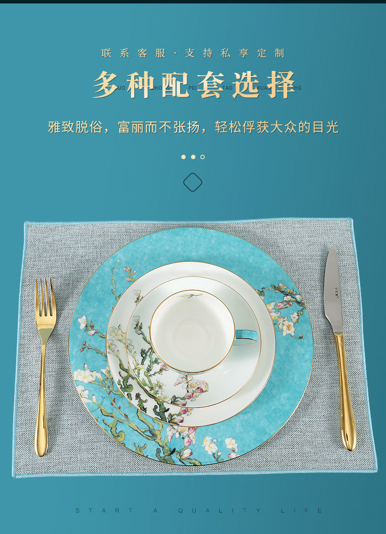 轻奢餐具摆台套装骨瓷碗碟盘勺定制餐厅会所欧式酒店陶瓷盘子
