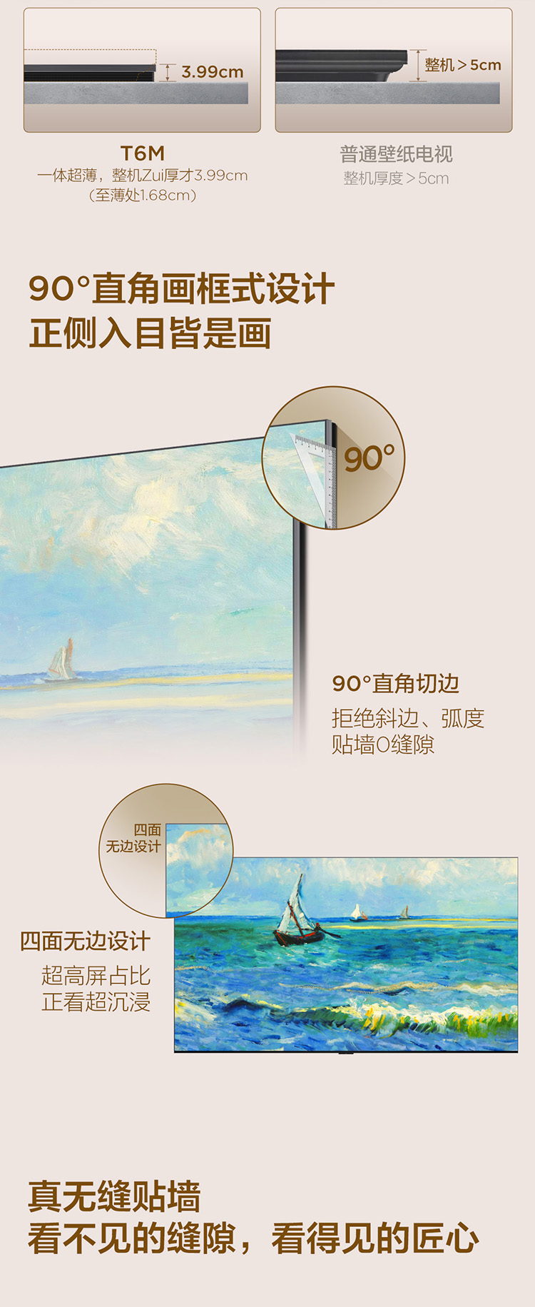 【新品上市】TCL艺术壁纸电视 65T6M 65英寸 3.99cm平板薄 轻盈家居美学 QD-Mini LED 全通道360Hz超高刷