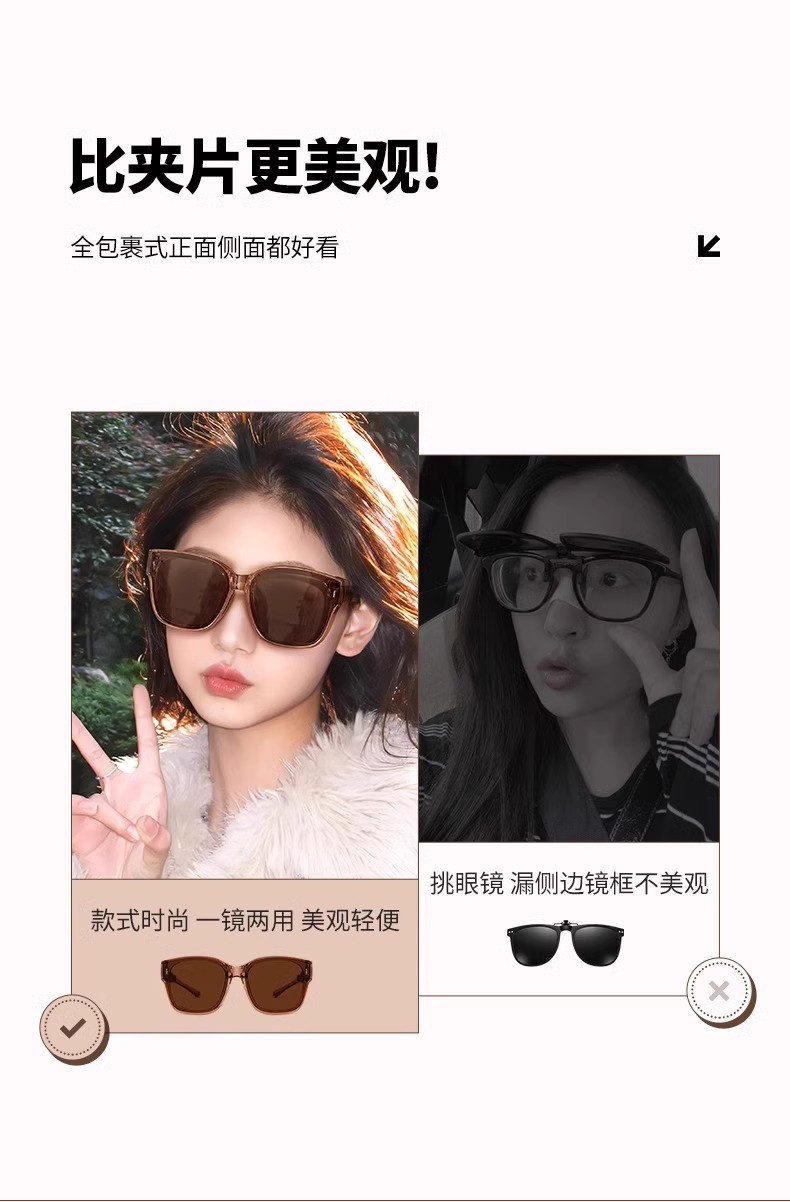 GUMUMA可折叠近视套镜墨镜,升级TAC偏光镜片,高清防眩光护眼,便携折叠款。兼容多种近视眼镜