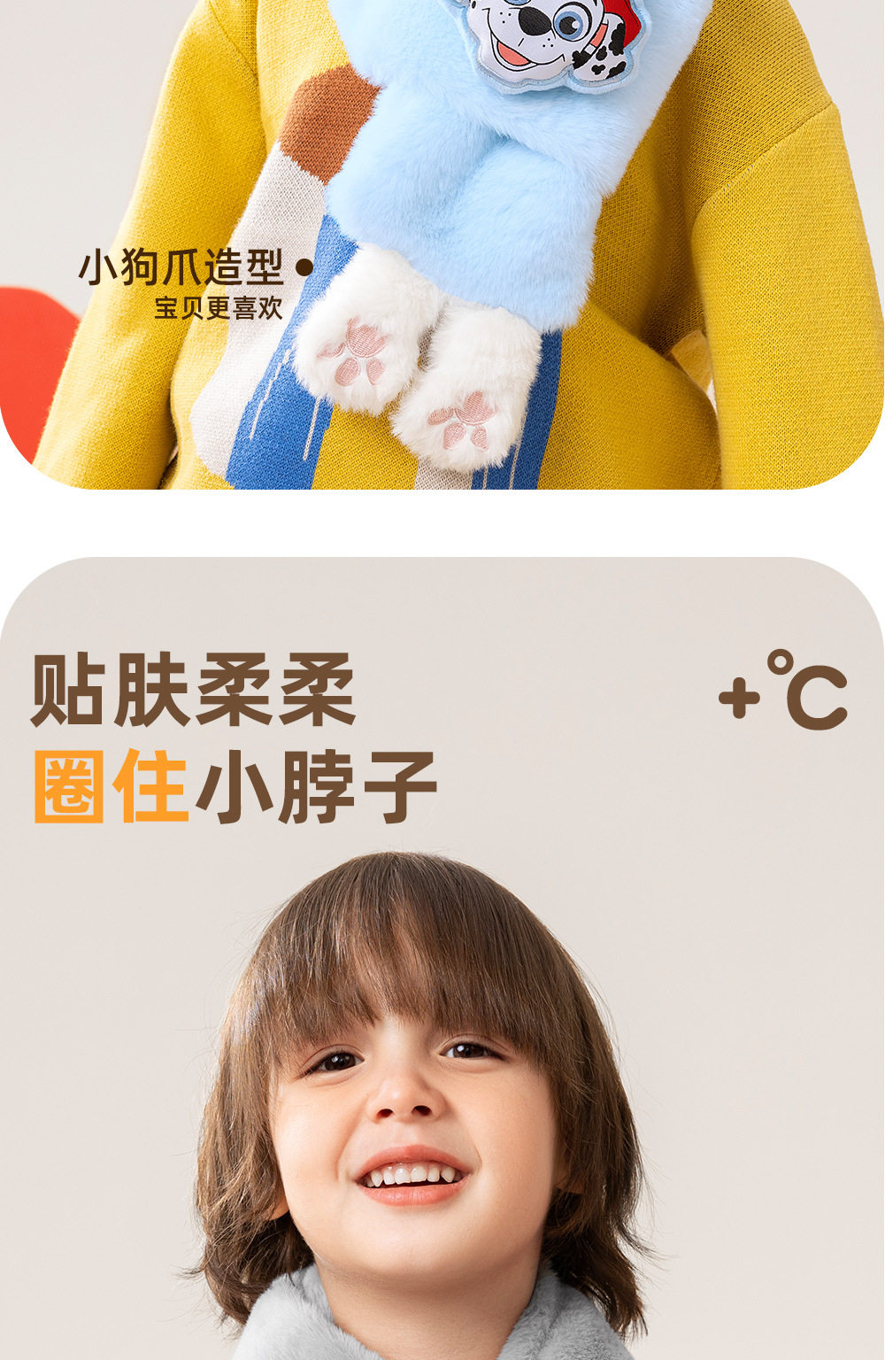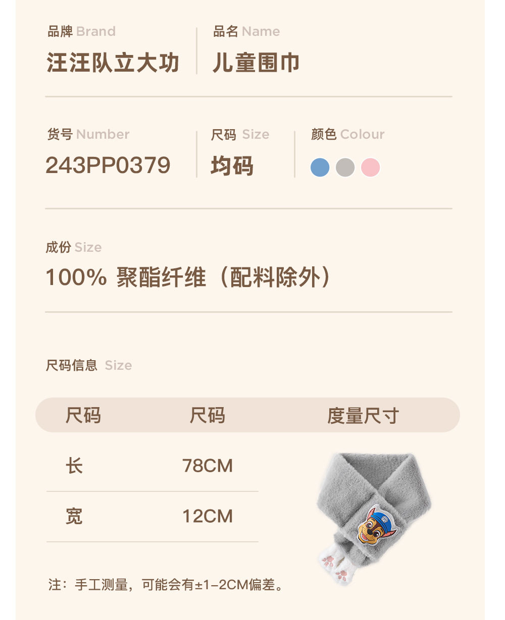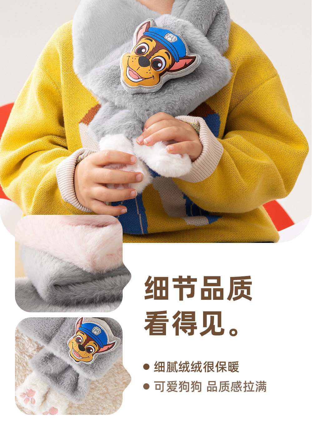 汪汪队儿童围脖毛绒可爱加厚男女宝宝毛绒围巾百搭学生护颈领子