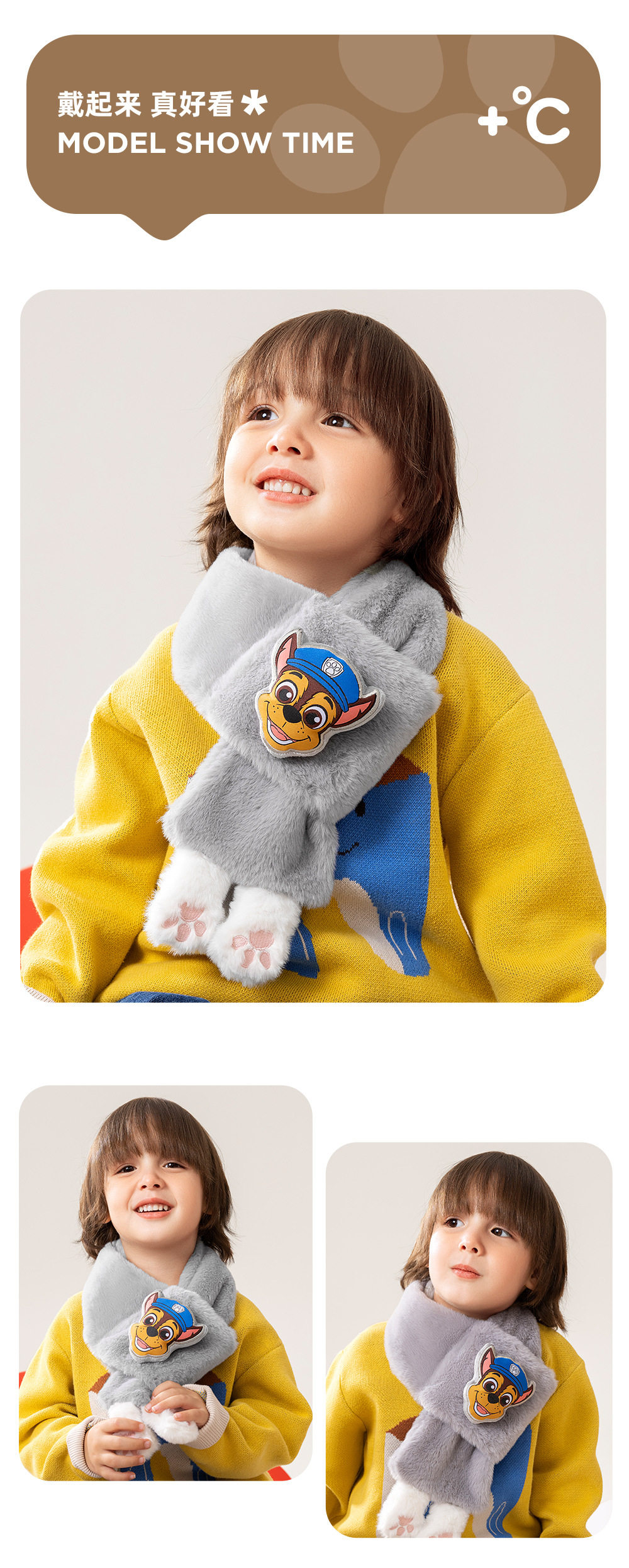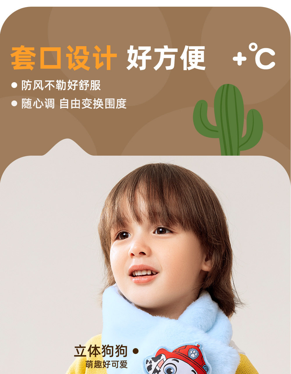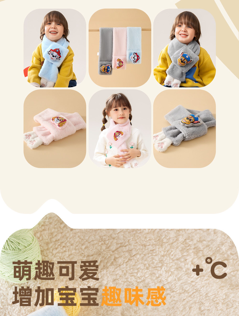 汪汪队儿童围脖毛绒可爱加厚男女宝宝毛绒围巾百搭学生护颈领子