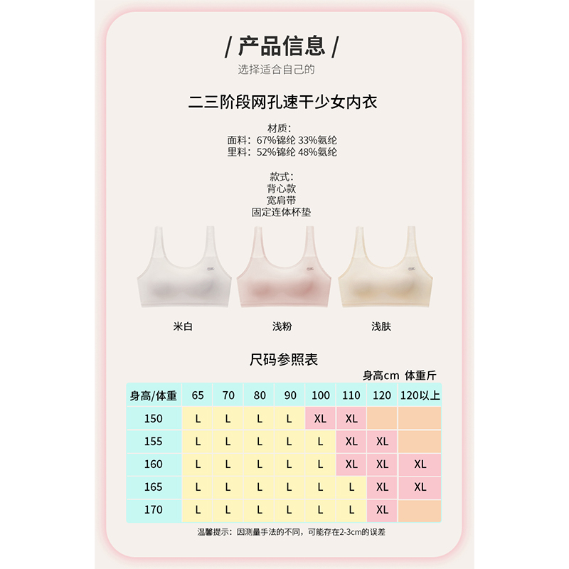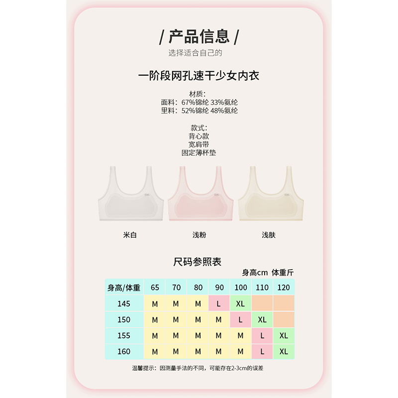 【舒服法则】超薄网纱速干少女背心 8522/8523
