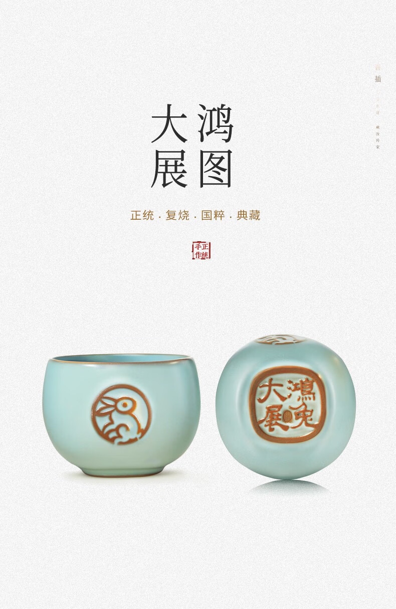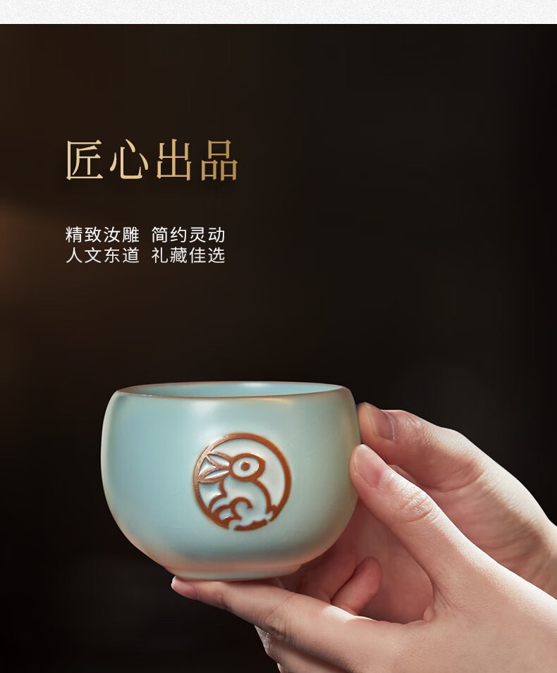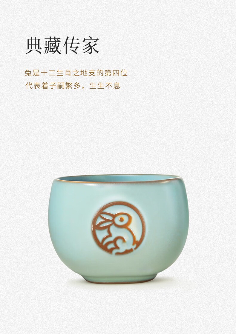 东道汝窑|鸿兔大展兔A杯(天青)癸卯兔年生肖杯兔A杯