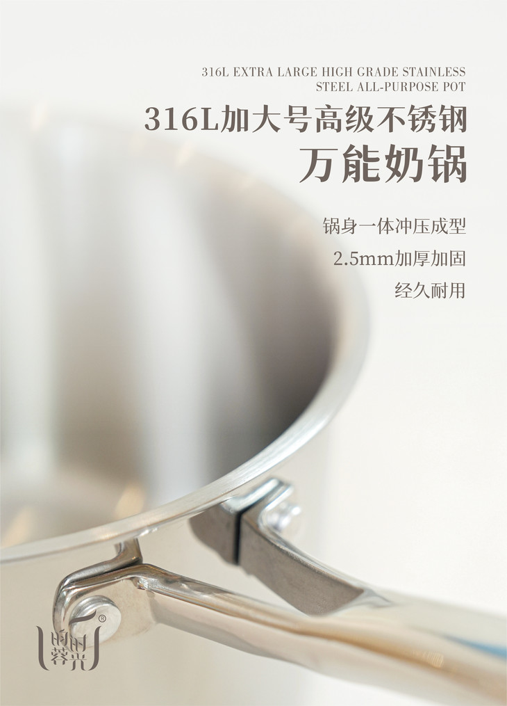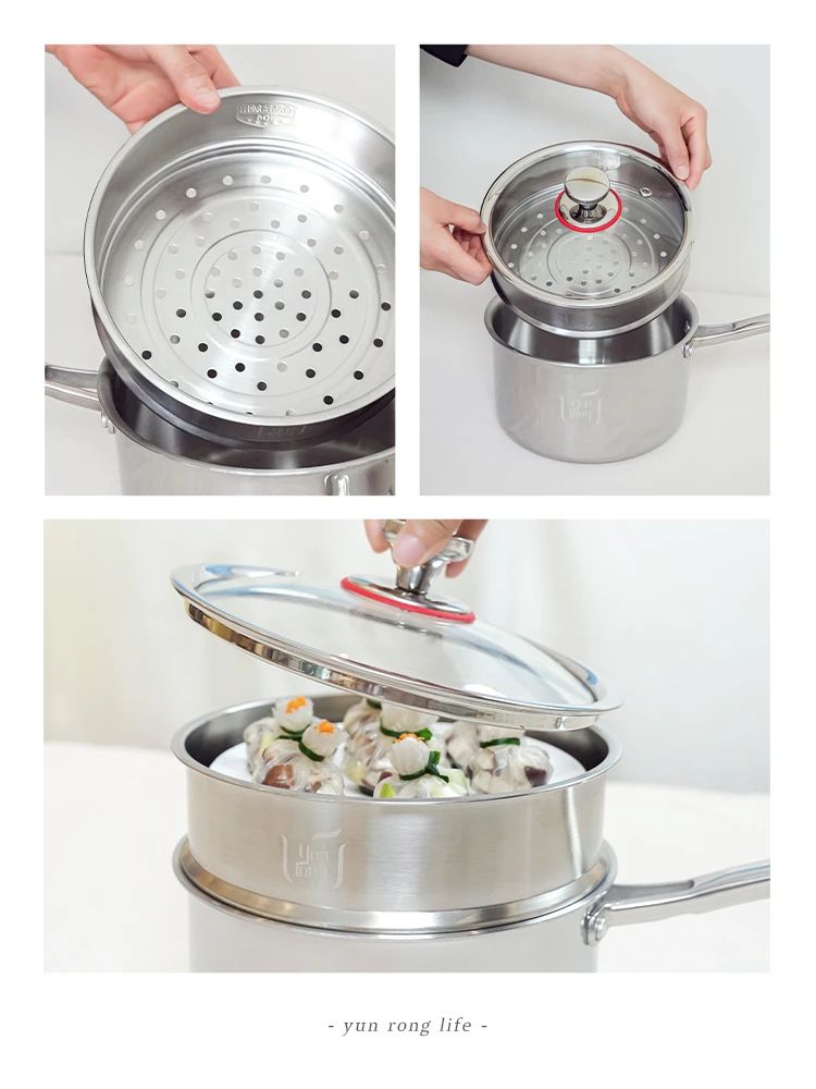 【昀蓉·定制周边】316L不锈钢奶锅+蒸笼套组,五层钢加厚2.5mm,导热迅速,受热均匀,坚固不易变形
