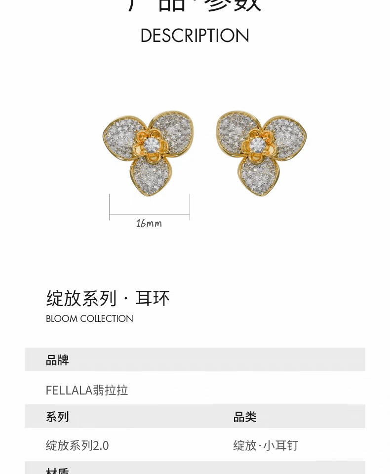 2楼Fellala/翡拉拉「绽放2.0」系列优雅气质耳钉花瓣潮流设计感耳饰货号925417101吊牌价629现价566