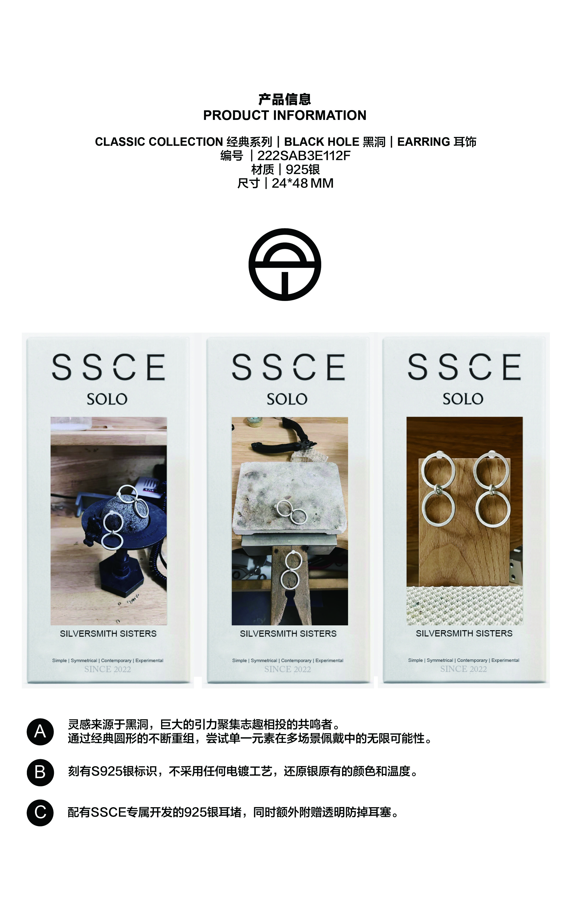 SSCE|222SAB3E112F Earrings黑洞耳环24x48mm 【BLACK HOLE】