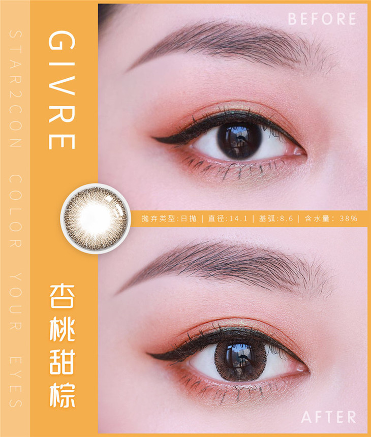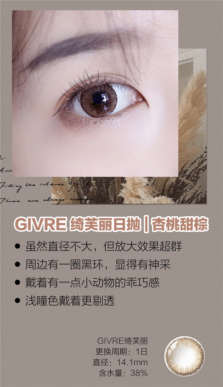 绮芙莉GIVRE | 杏桃甜棕 日抛10片装(无售后) | 14.1mm | 微小扩瞳