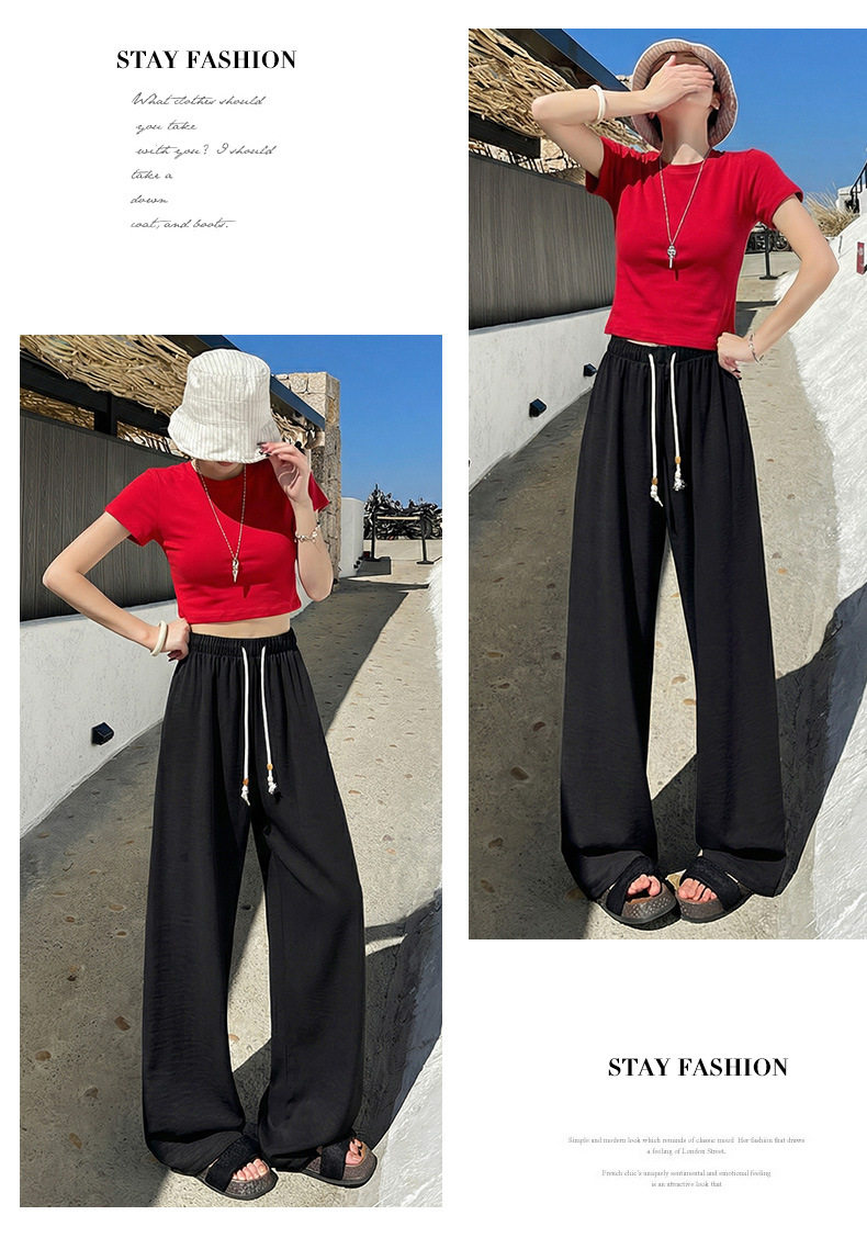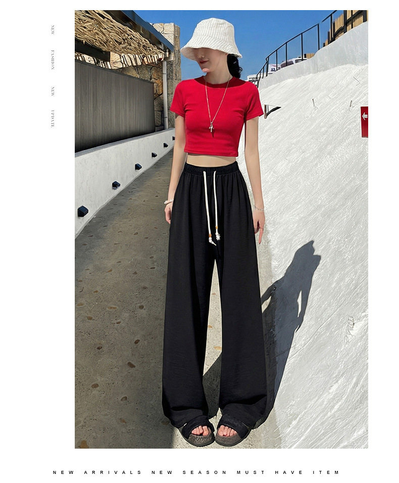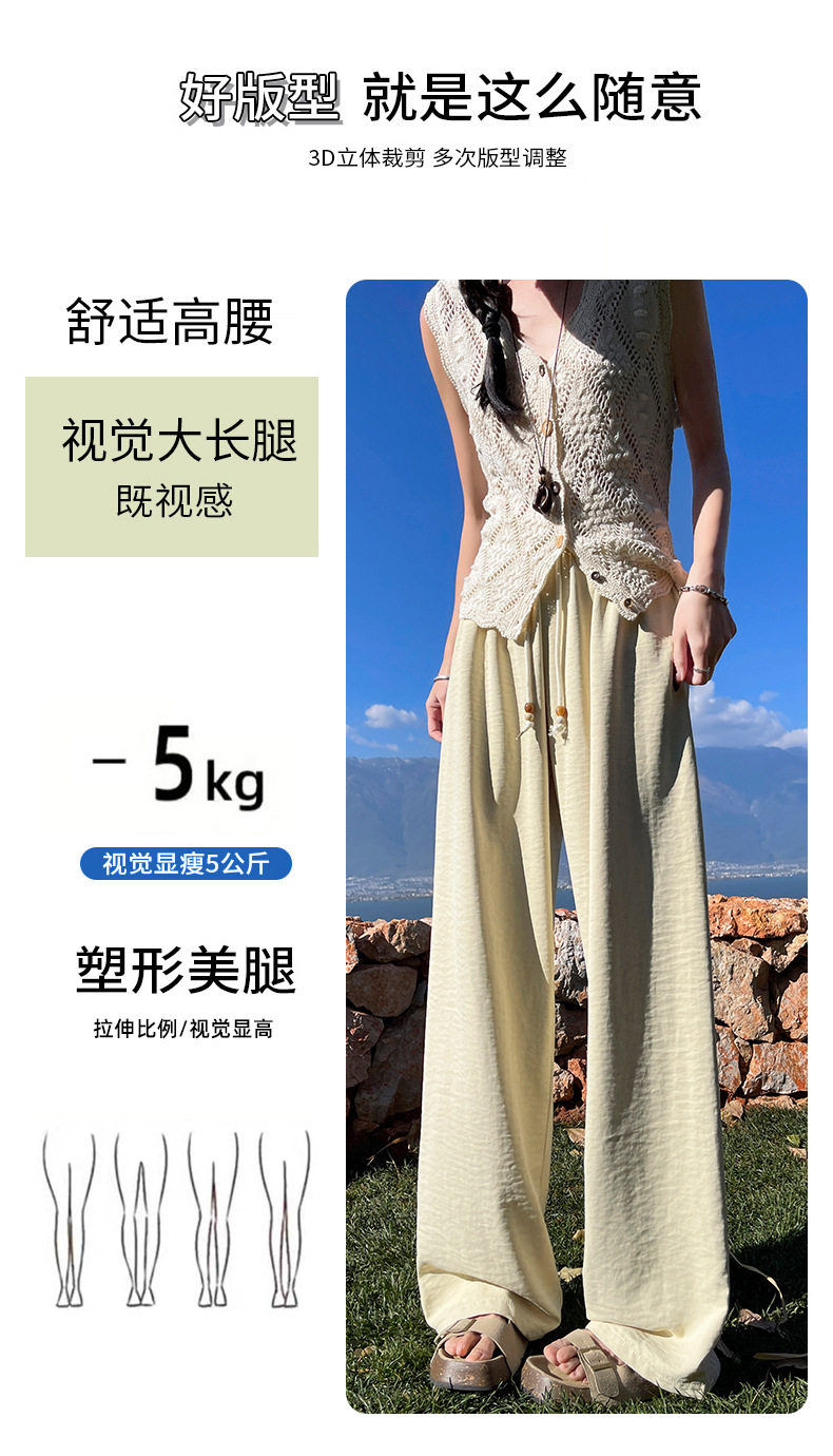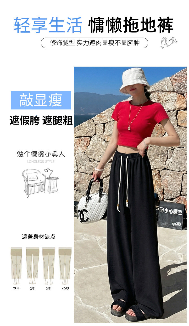 减龄多巴胺阔腿裤女春季新款抽绳高腰休闲裤2026小个子拖地长裤子 NDK-J2558