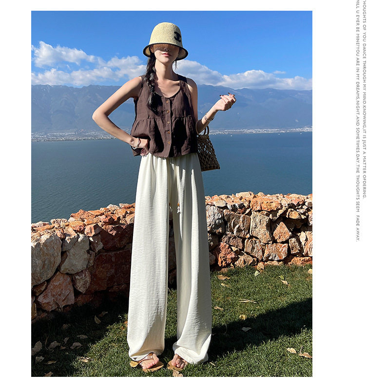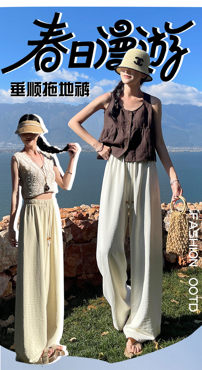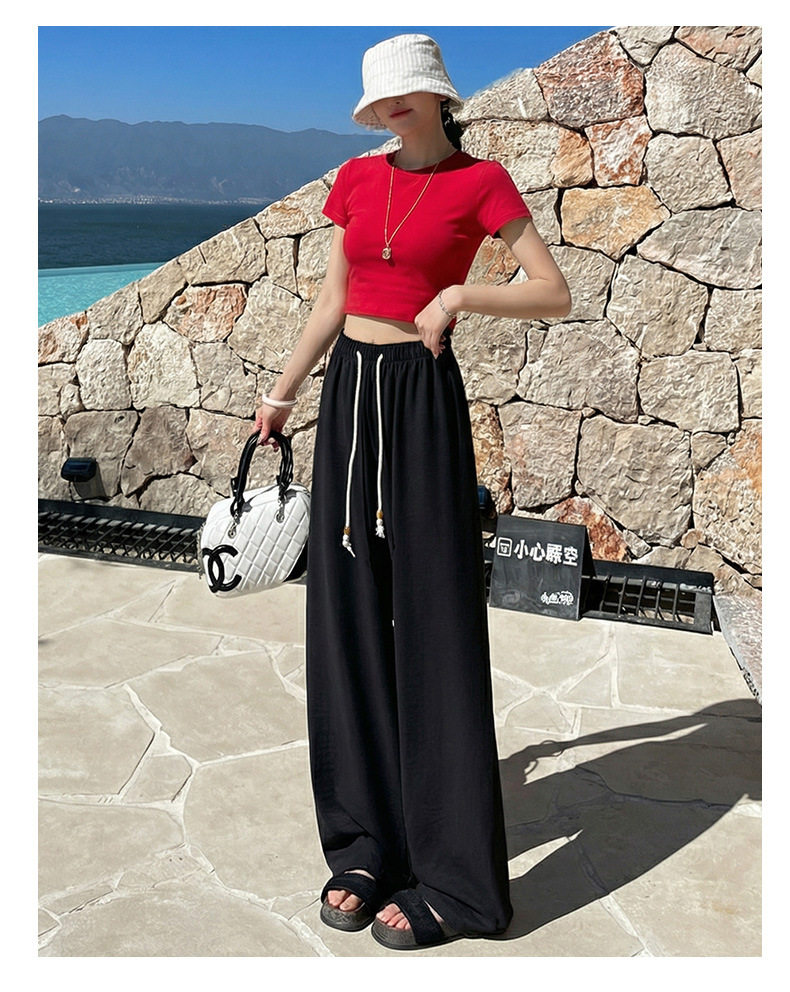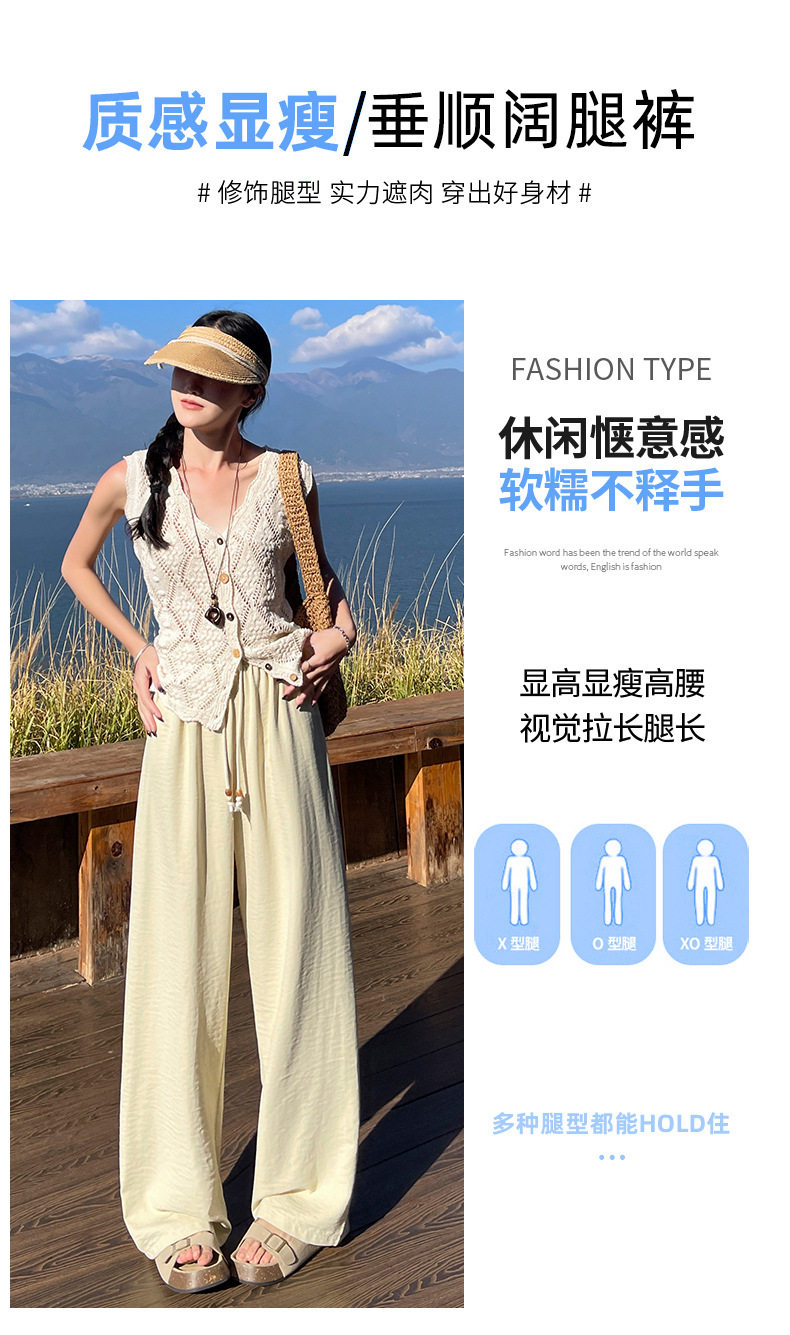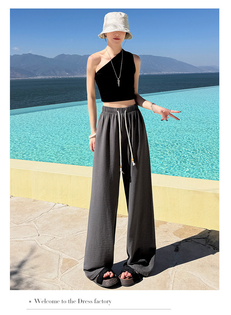 减龄多巴胺阔腿裤女春季新款抽绳高腰休闲裤2026小个子拖地长裤子 NDK-J2558