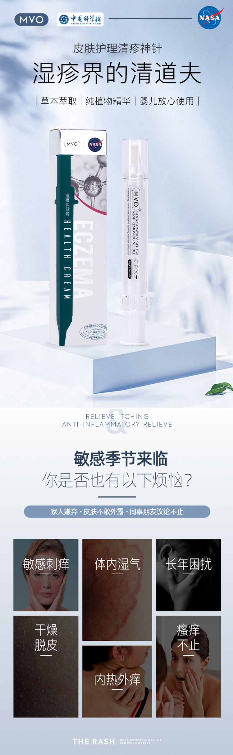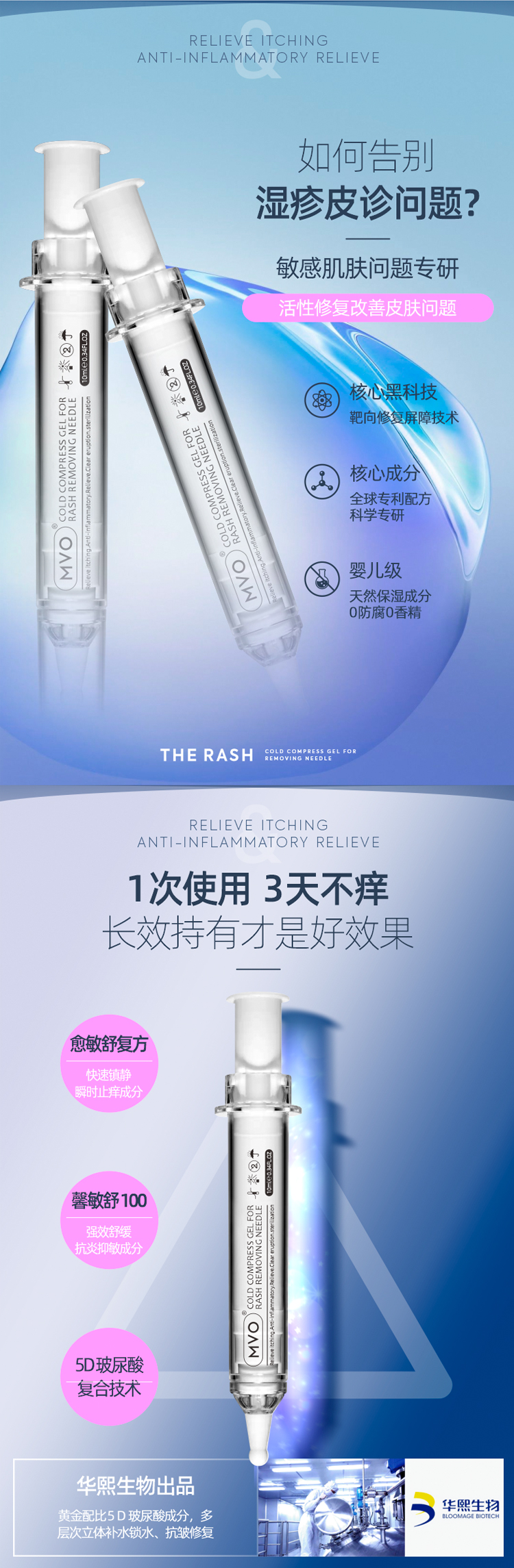 中英联名研发MVO湿疹膏华熙生物玻尿酸成分成人热痒皮肤瘙痒皮炎无ji素医用冷敷理疗止痒凝胶