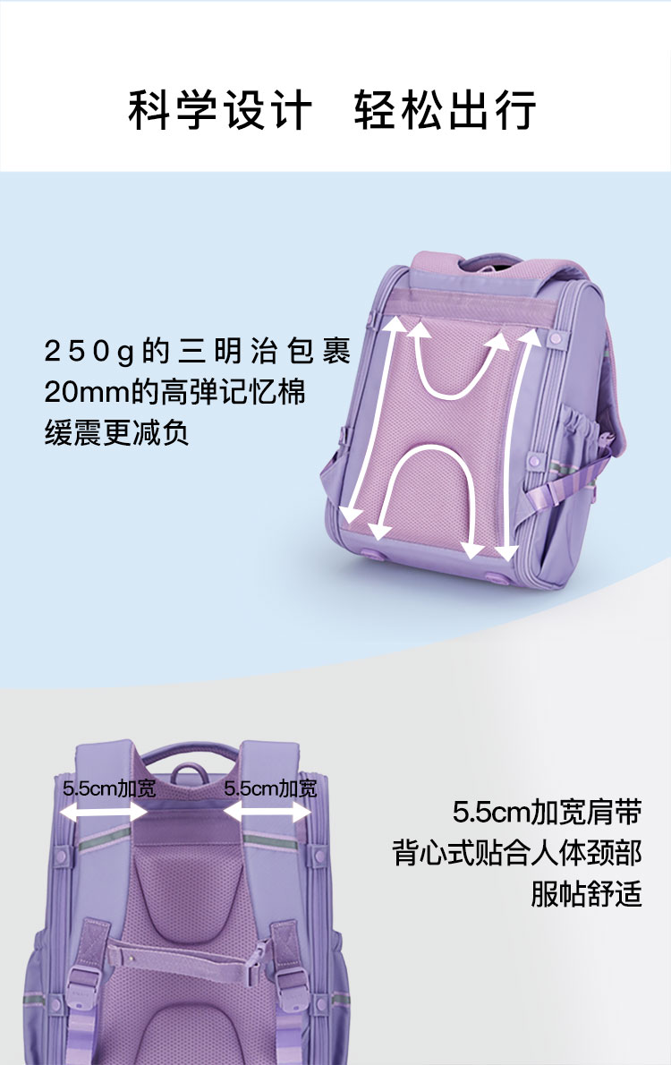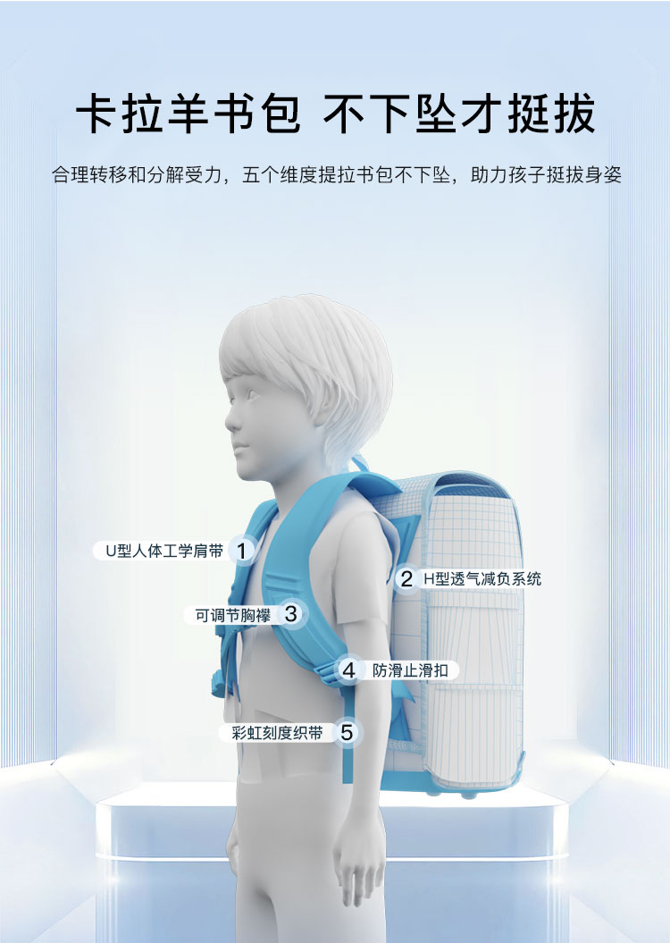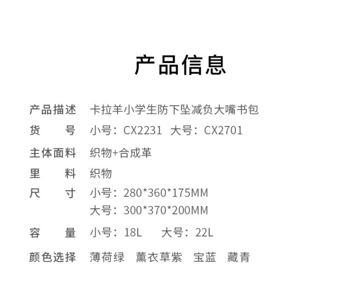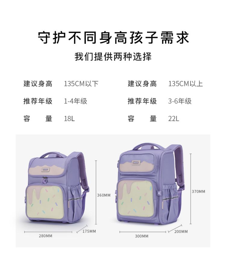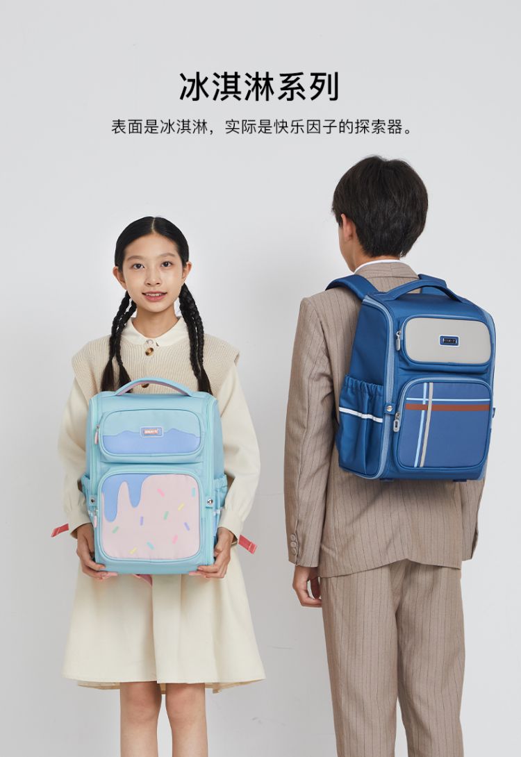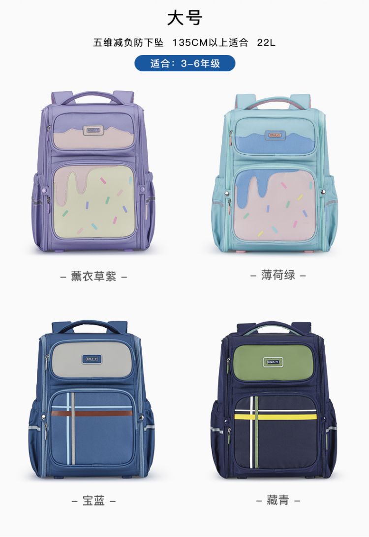 卡拉羊1-6年级18L/22L五维减负防下坠大嘴书包 冰淇淋 CX2231+CX2701