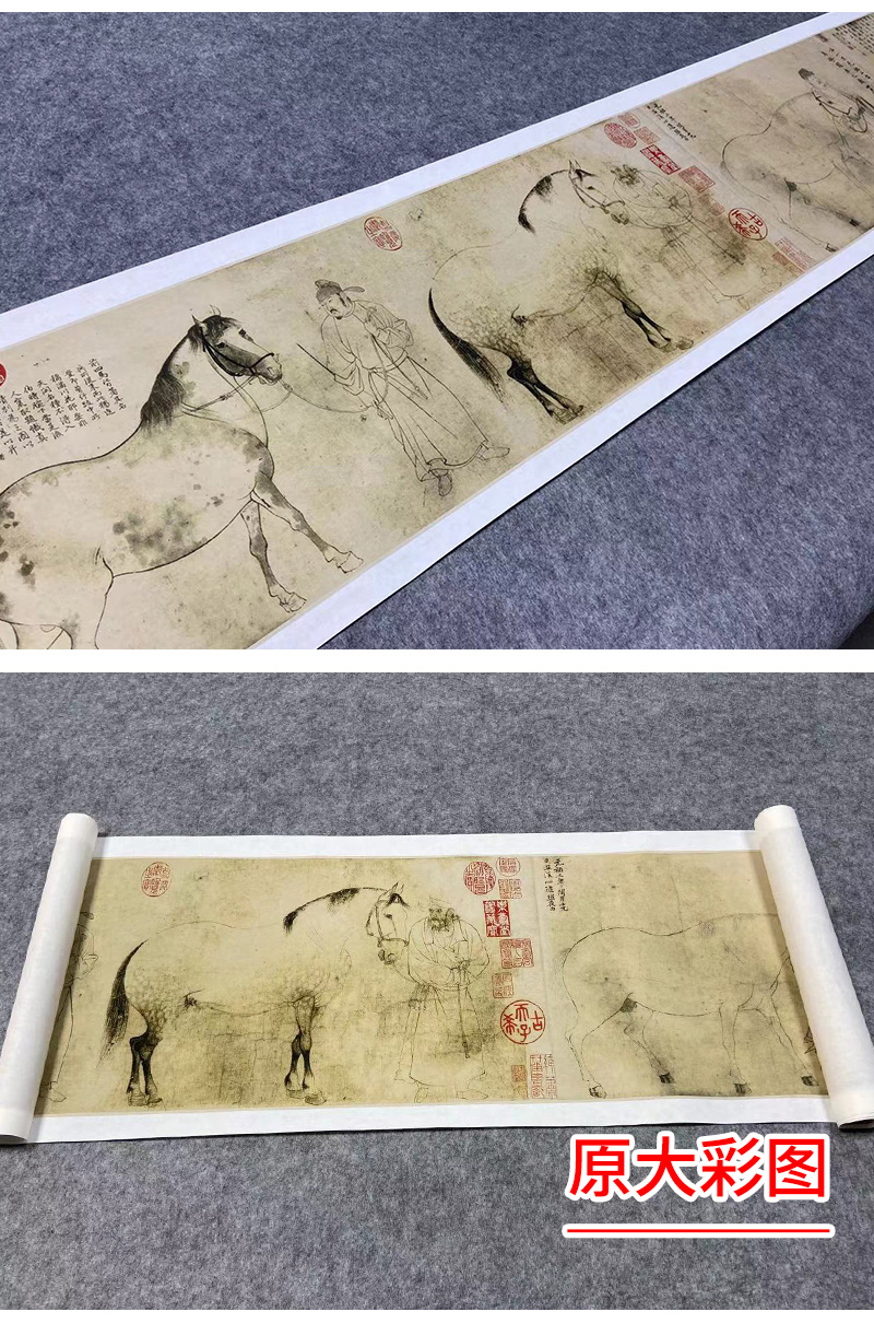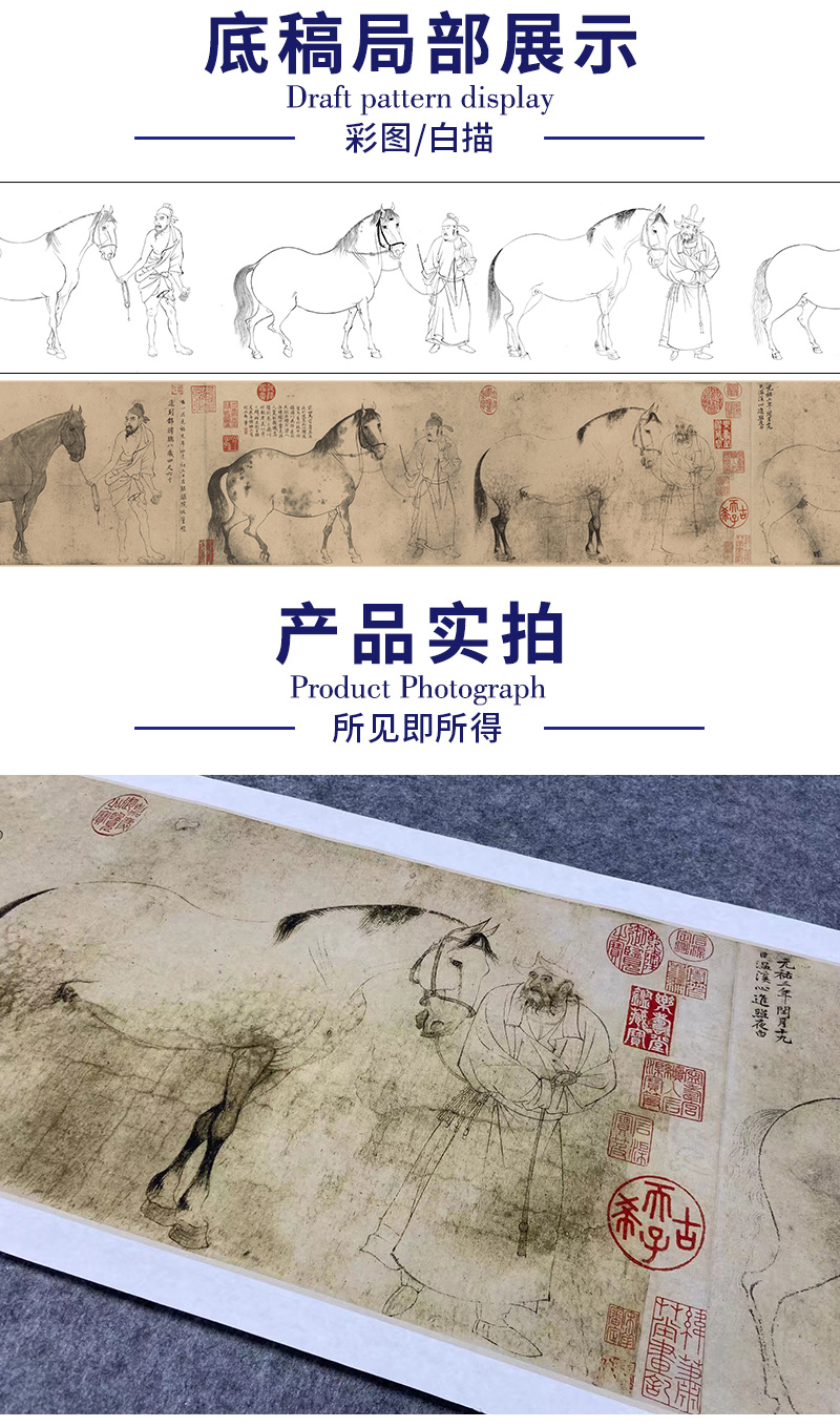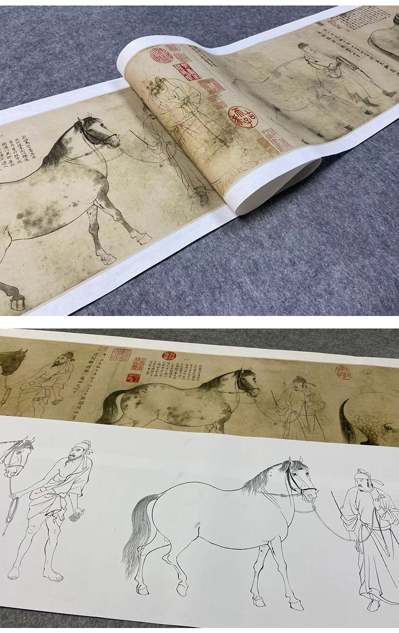 【长卷】工笔动物画白描底稿古画长卷李公麟《五马图》多种白描尺寸可选G020