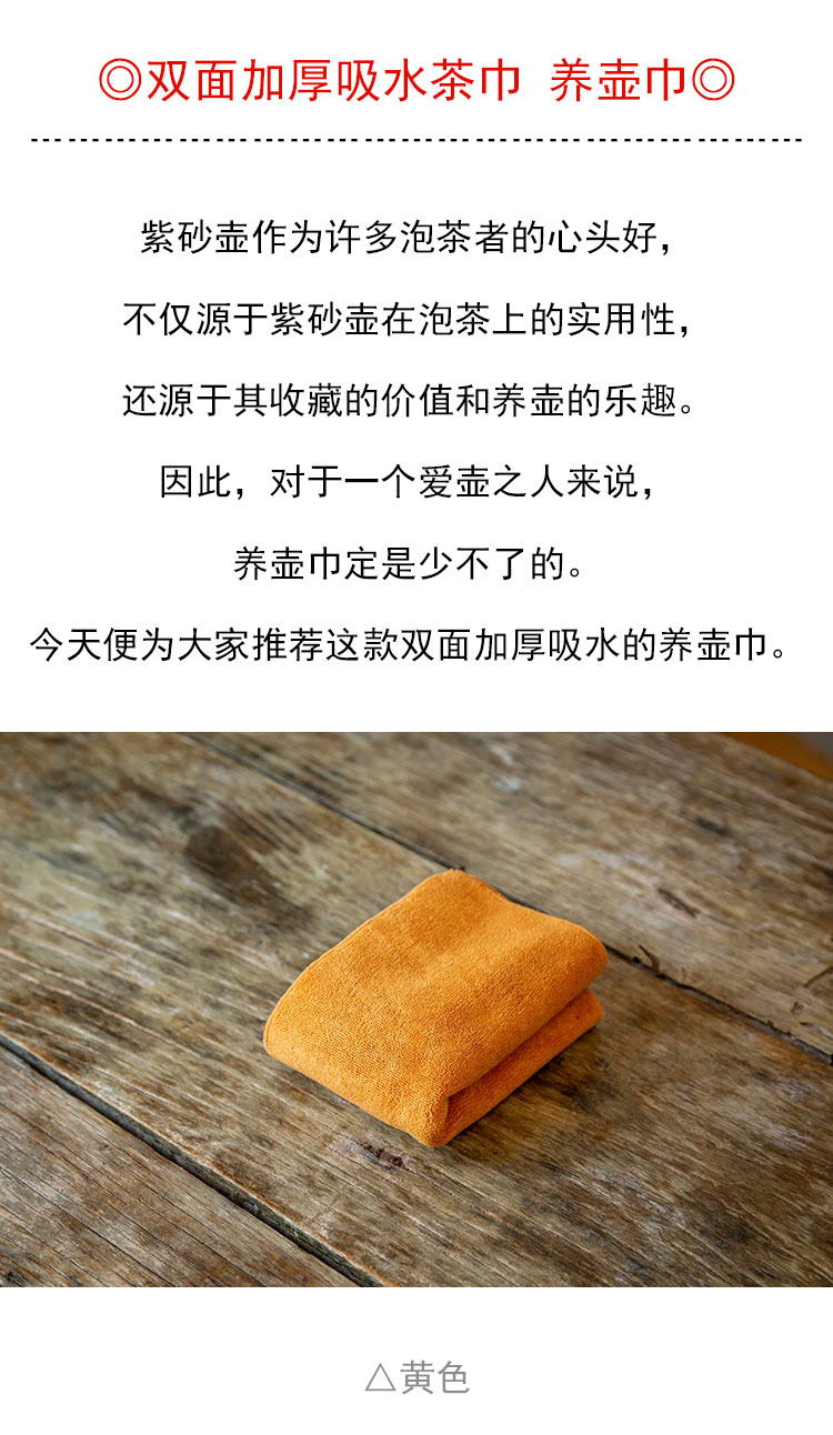 茶香记 双面加厚吸水茶巾 养壶巾 30*30cm 黄色 红色 柔软亲肤